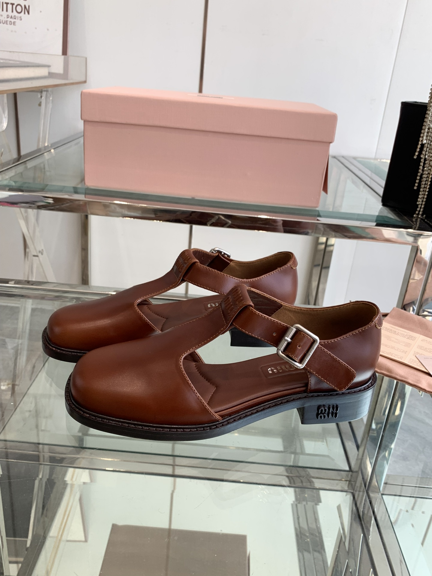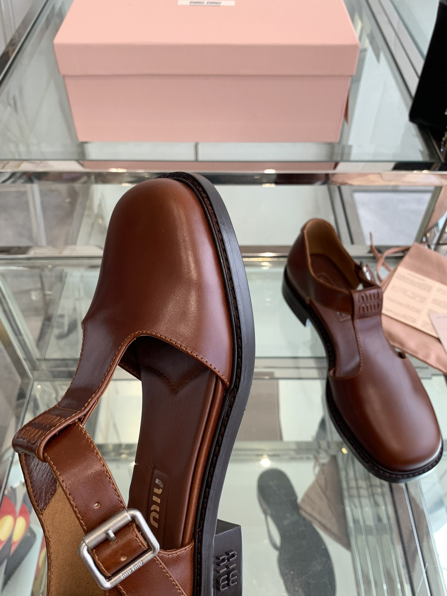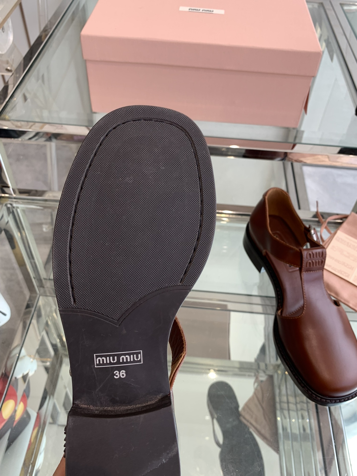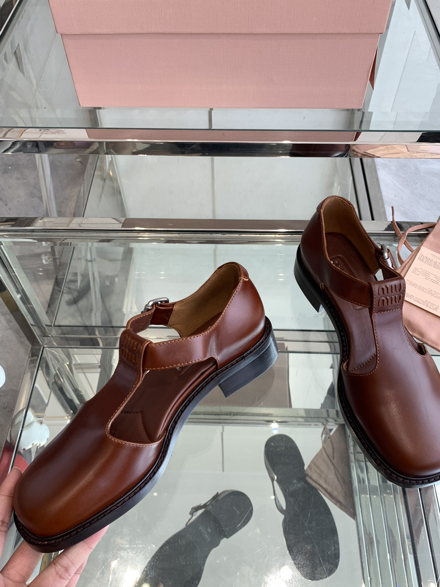 這款鞋子是AAAAA 1:1 質量(非常棒). 使用了和原版一模一樣的材料. 商標部分也保持了和繆繆/Miu Miu一樣. 圖片拍攝是實物鞋子拍攝, 您所收到的實物保證和我們圖片一模一樣.