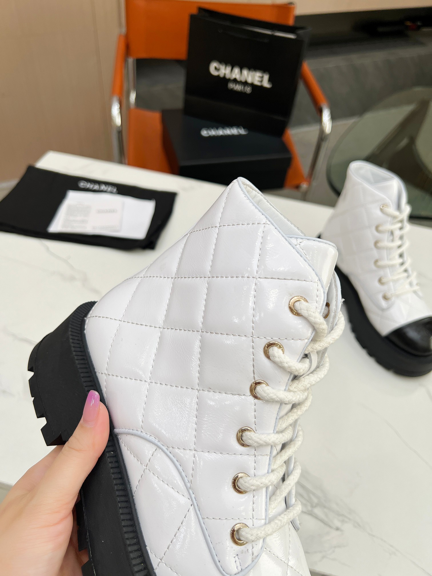 這款鞋子是AAAAA 1:1 質量(非常棒). 使用了和原版一模一樣的材料. 商標部分也保持了和香奈兒/Chanel一樣. 圖片拍攝是實物鞋子拍攝, 您所收到的實物保證和我們圖片一模一樣.