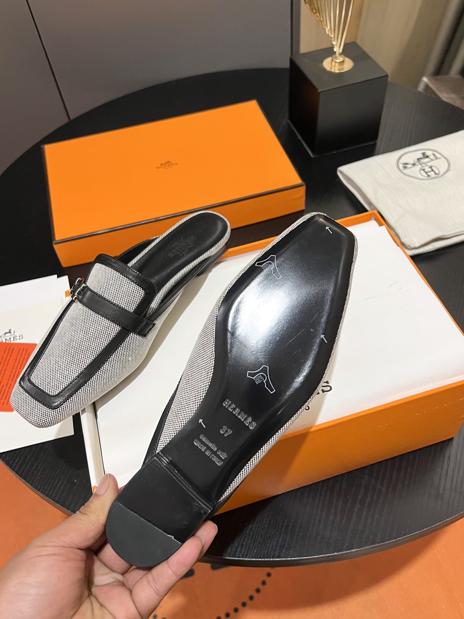 這款鞋子是AAAAA 1:1 質量(非常棒). 使用了和原版一模一樣的材料. 商標部分也保持了和愛馬仕/Hermes一樣. 圖片拍攝是實物鞋子拍攝, 您所收到的實物保證和我們圖片一模一樣.