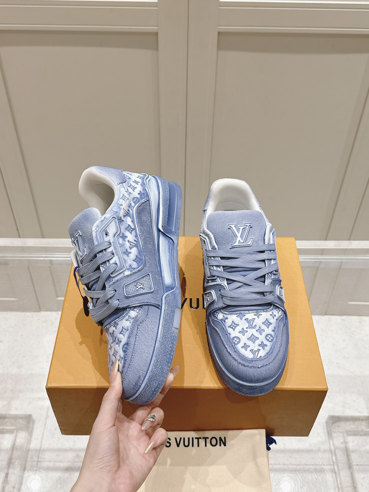 這款鞋子是AAAAA 1:1 質量(非常棒). 使用了和原版一模一樣的材料. 商標部分也保持了和路易威登/Louis Vuitton一樣. 圖片拍攝是實物鞋子拍攝, 您所收到的實物保證和我們圖片一模一樣.