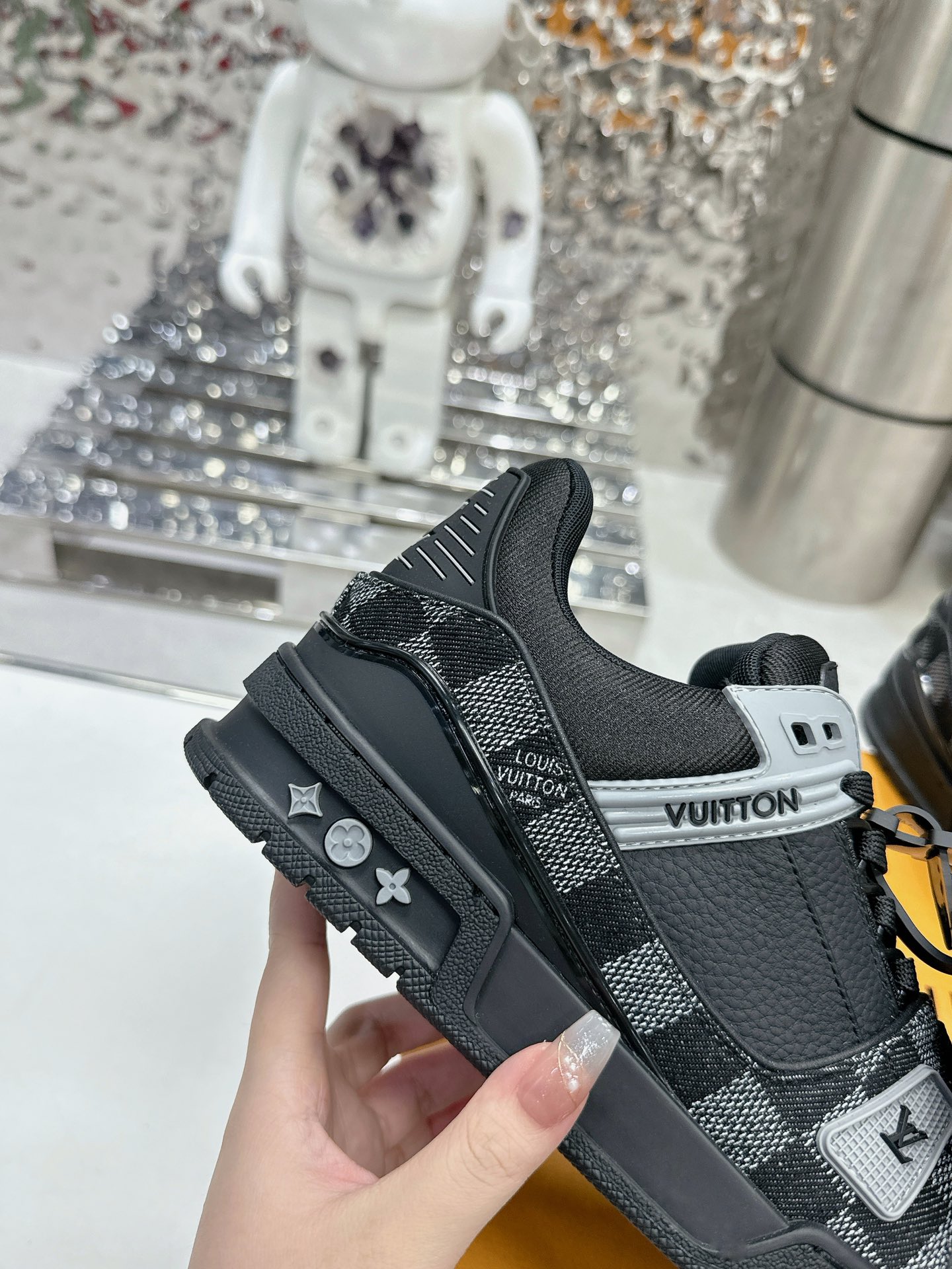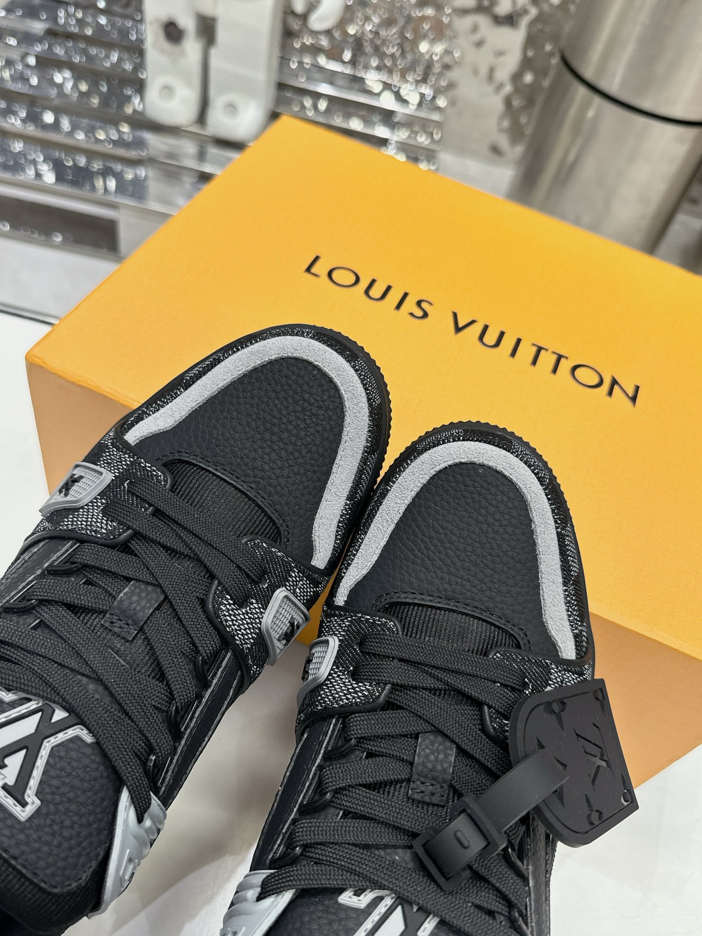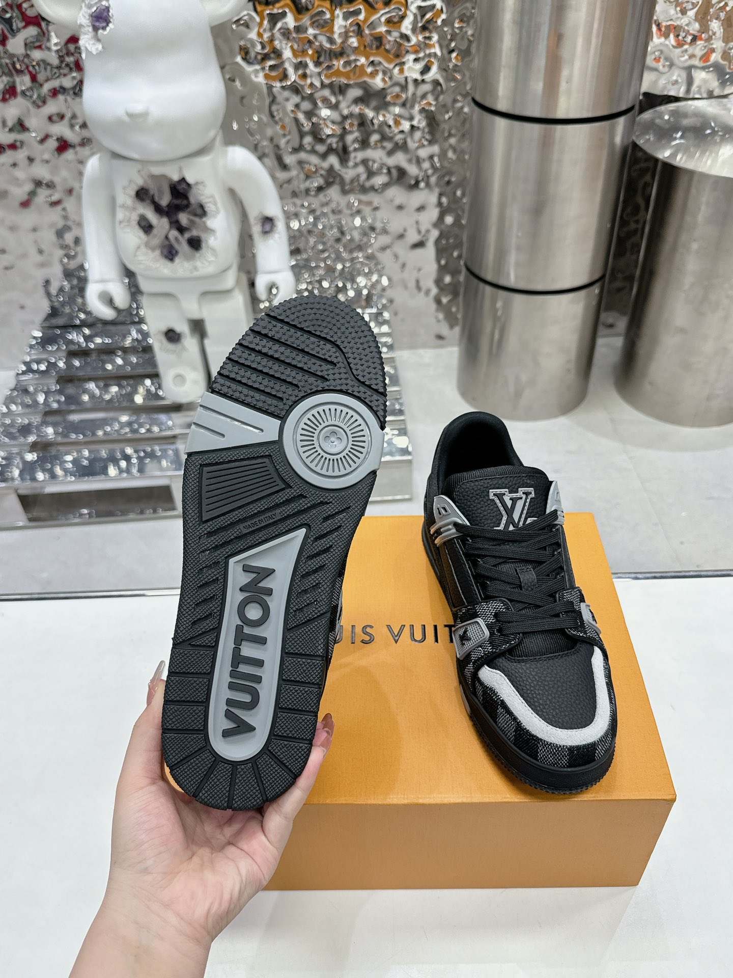 這款鞋子是AAAAA 1:1 質量(非常棒). 使用了和原版一模一樣的材料. 商標部分也保持了和路易威登/Louis Vuitton一樣. 圖片拍攝是實物鞋子拍攝, 您所收到的實物保證和我們圖片一模一樣.
