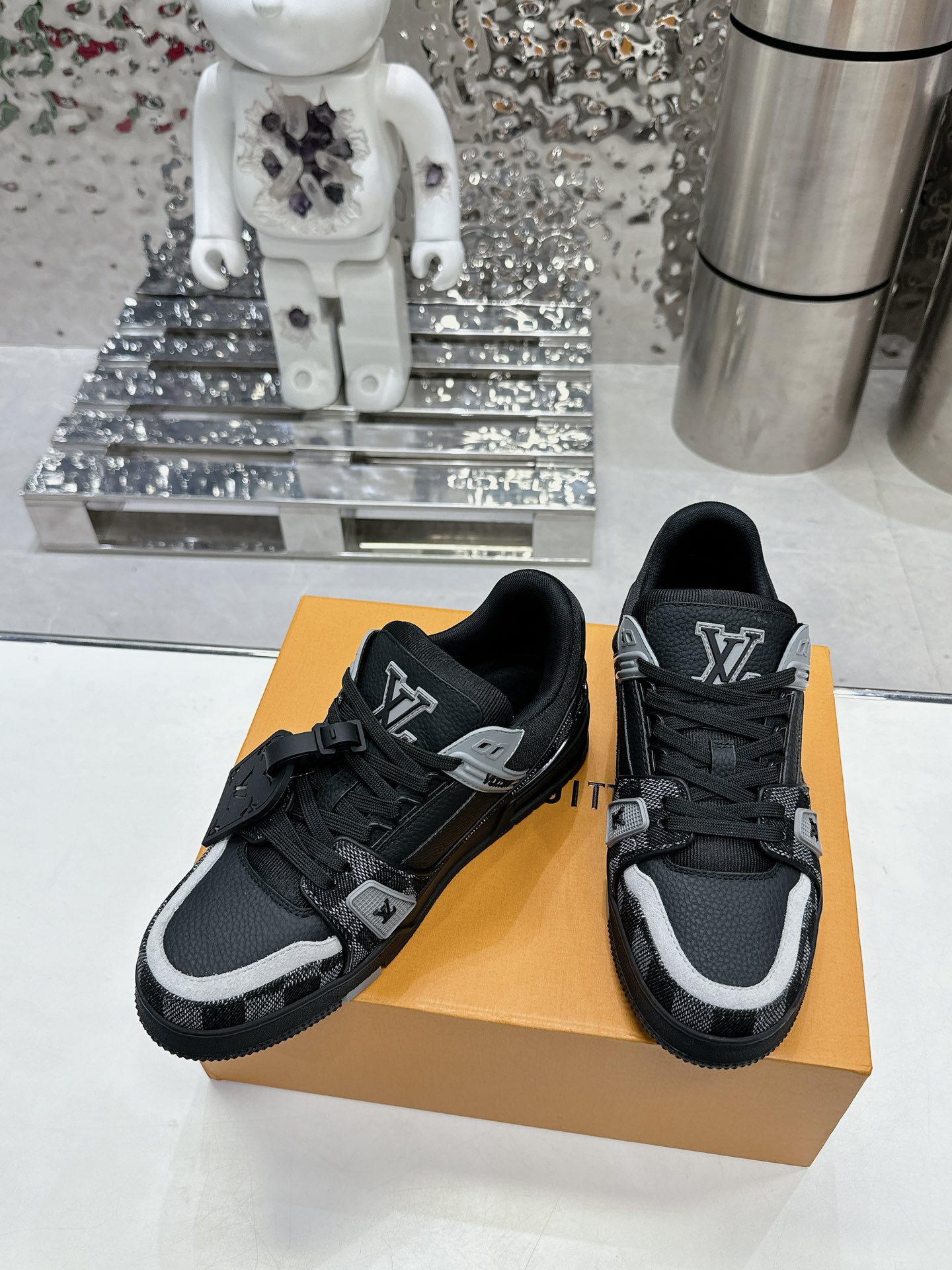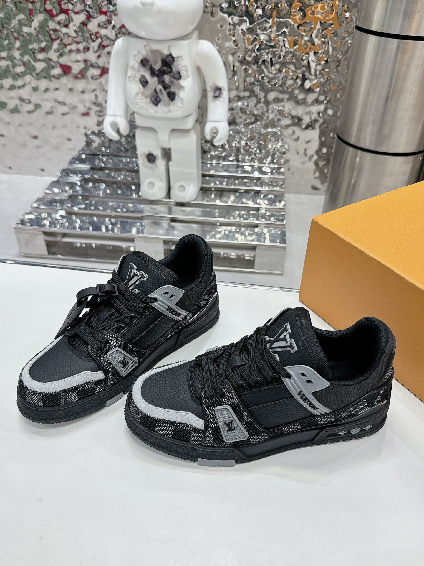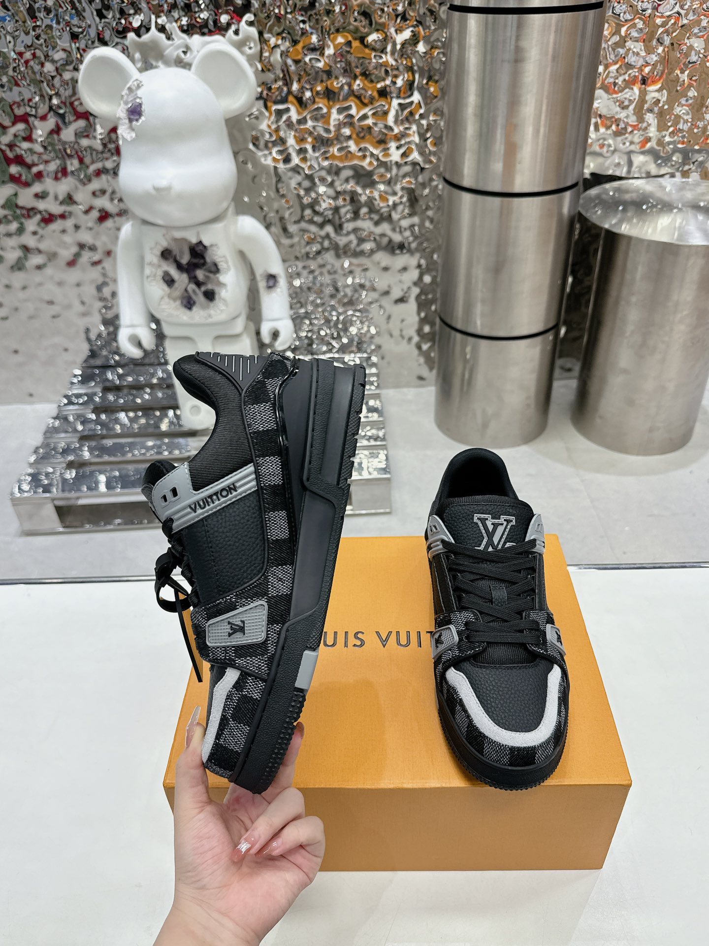 這款鞋子是AAAAA 1:1 質量(非常棒). 使用了和原版一模一樣的材料. 商標部分也保持了和路易威登/Louis Vuitton一樣. 圖片拍攝是實物鞋子拍攝, 您所收到的實物保證和我們圖片一模一樣.