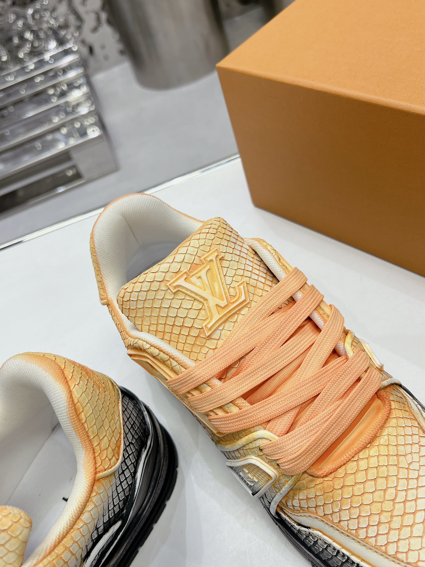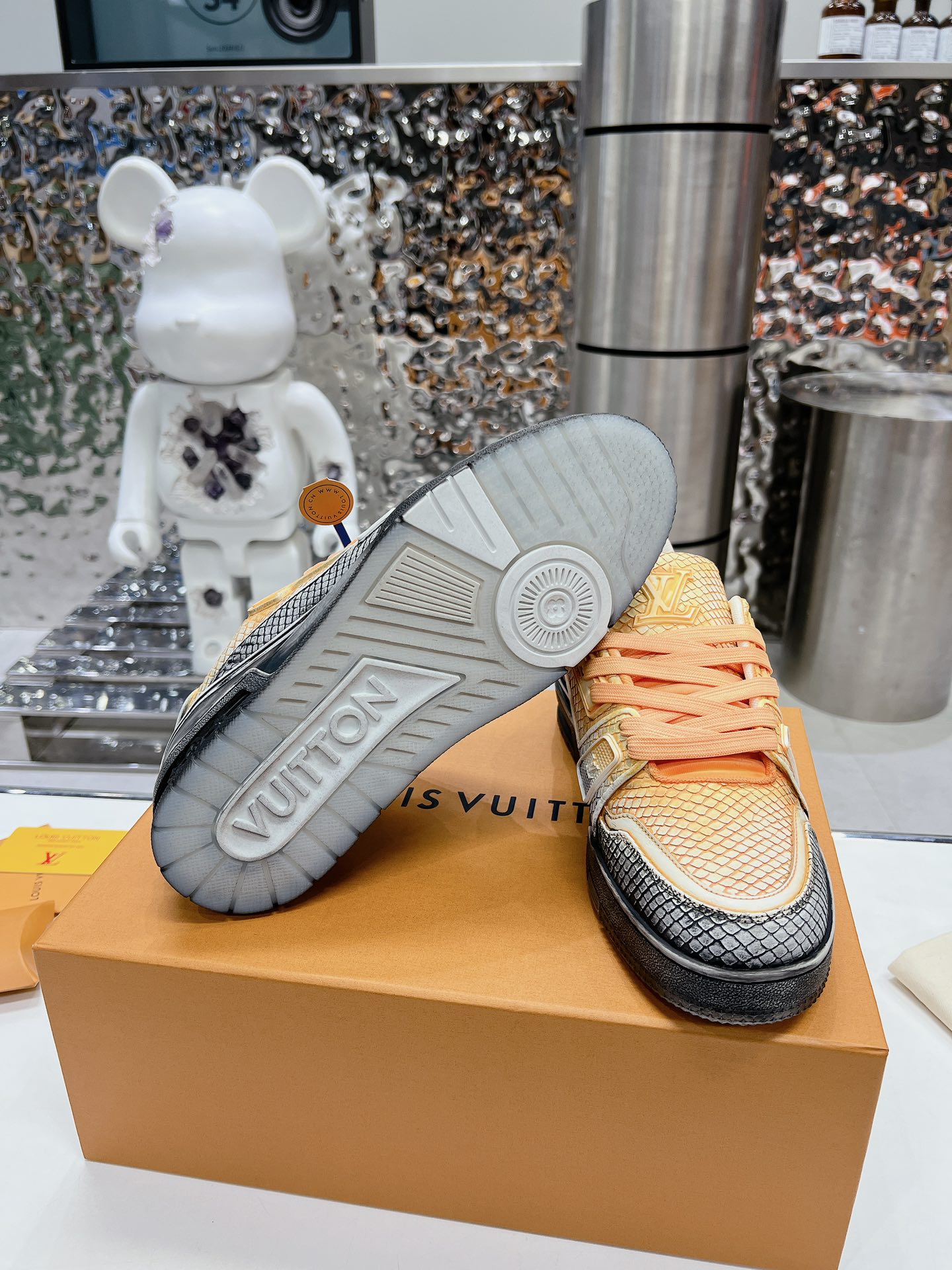 這款鞋子是AAAAA 1:1 質量(非常棒). 使用了和原版一模一樣的材料. 商標部分也保持了和路易威登/Louis Vuitton一樣. 圖片拍攝是實物鞋子拍攝, 您所收到的實物保證和我們圖片一模一樣.