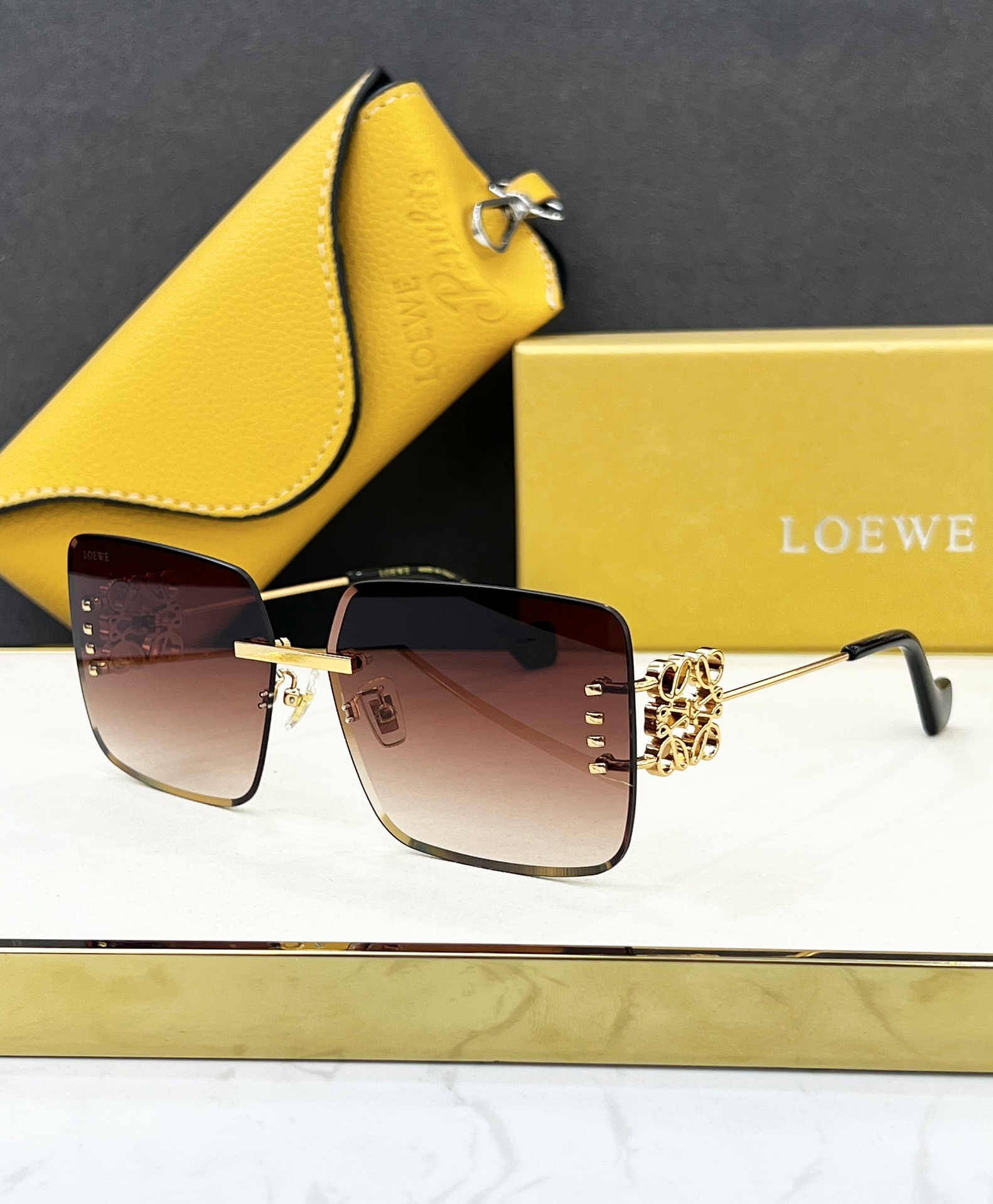 這款太陽眼鏡是AAAAA 1:1 質量(非常棒). 使用了和原版一模一樣的材料. 商標部分也保持了和Loewe一樣. 圖片拍攝是實物太陽眼鏡拍攝, 您所收到的實物保證和我們圖片一模一樣.