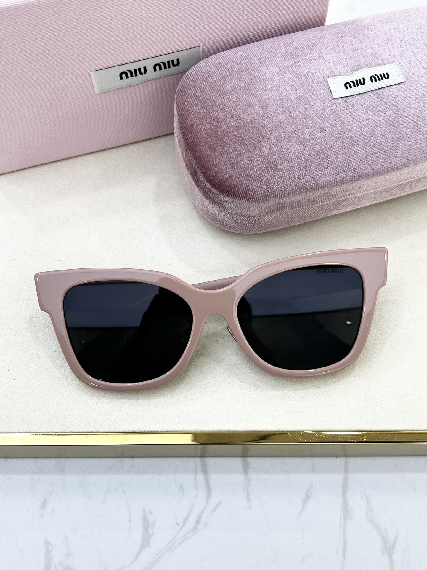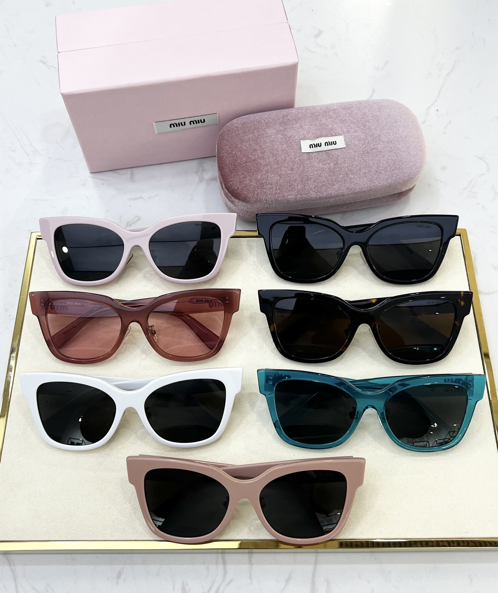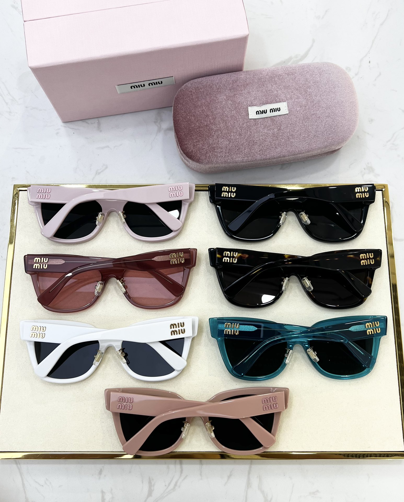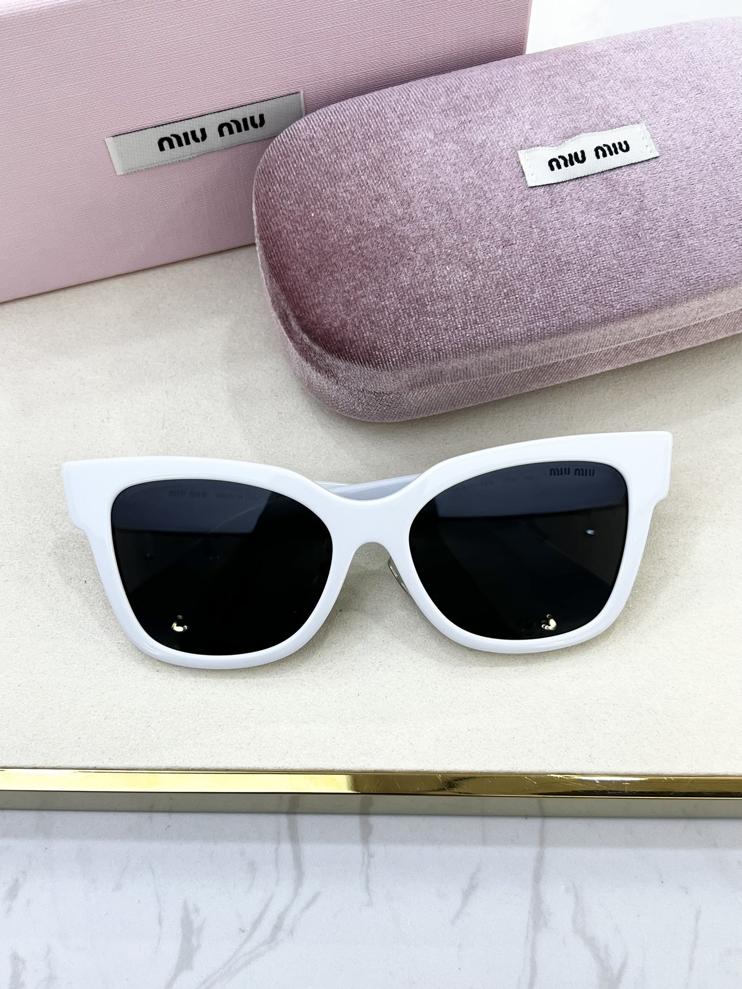 這款太陽眼鏡是AAAAA 1:1 質量(非常棒). 使用了和原版一模一樣的材料. 商標部分也保持了和繆繆/Miu Miu一樣. 圖片拍攝是實物太陽眼鏡拍攝, 您所收到的實物保證和我們圖片一模一樣.
