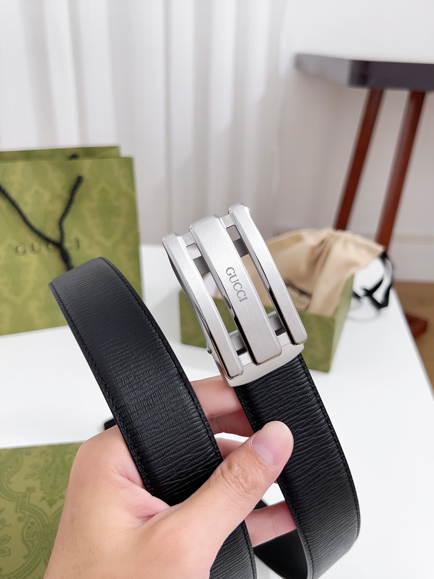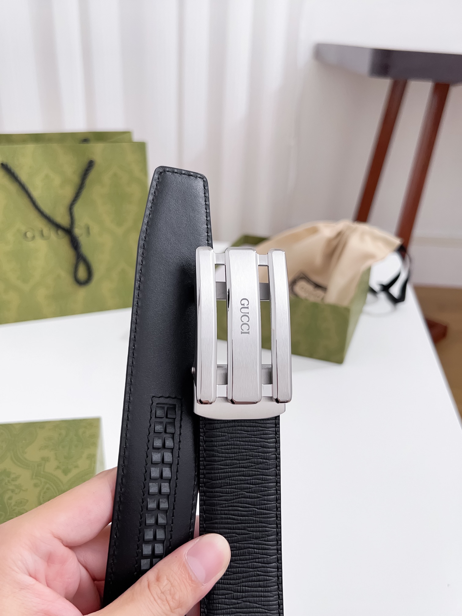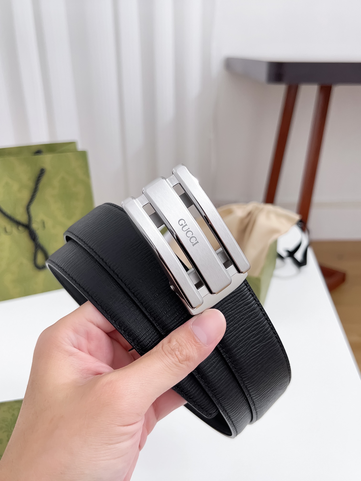 這款皮帶是AAAAA 1:1 質量(非常棒). 使用了和原版一模一樣的材料. 商標部分也保持了和一樣. 圖片拍攝是實物皮帶拍攝, 您所收到的實物保證和我們圖片一模一樣.