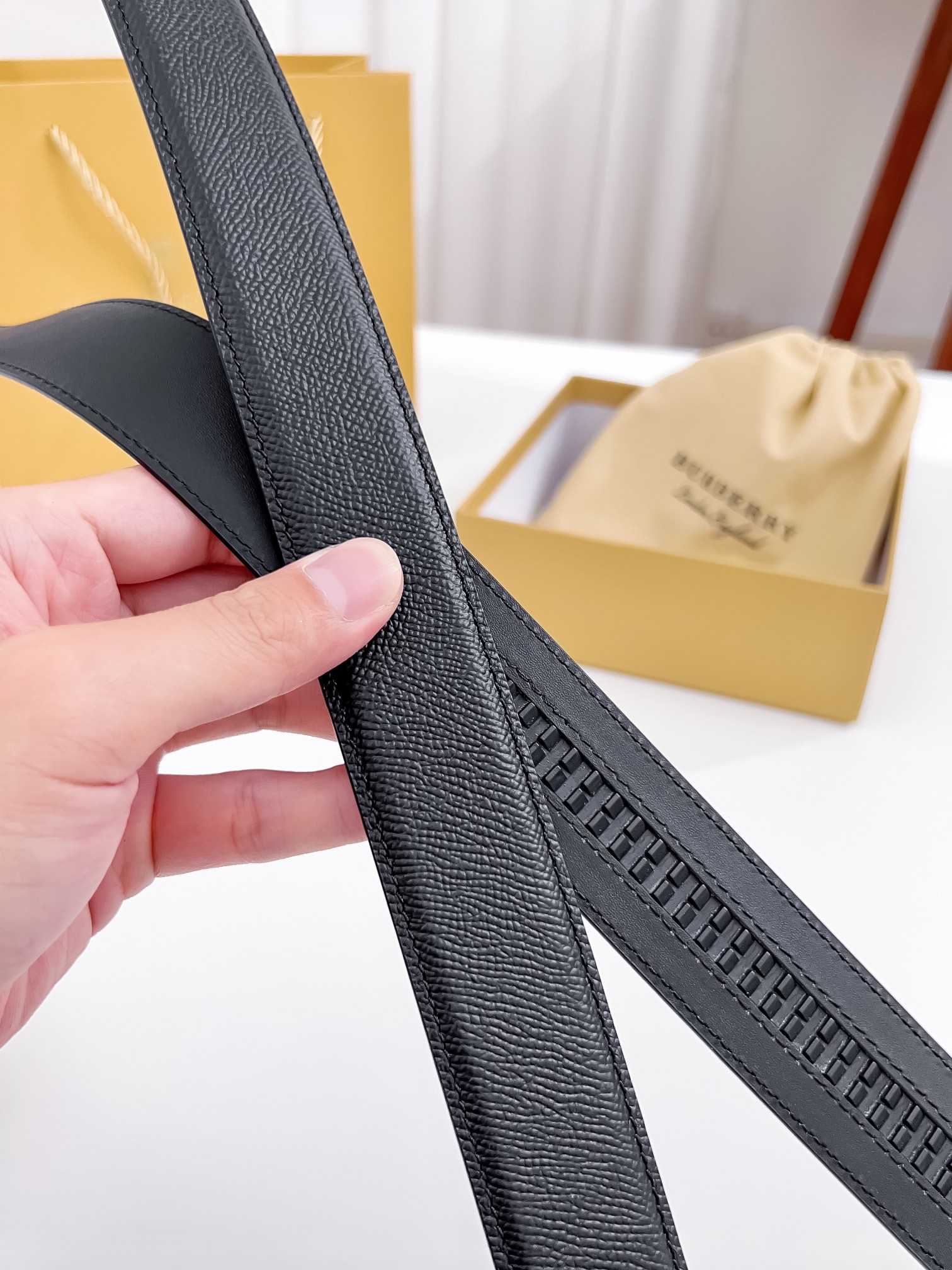 這款皮帶是AAAAA 1:1 質量(非常棒). 使用了和原版一模一樣的材料. 商標部分也保持了和巴寶莉/Burberry一樣. 圖片拍攝是實物皮帶拍攝, 您所收到的實物保證和我們圖片一模一樣.
