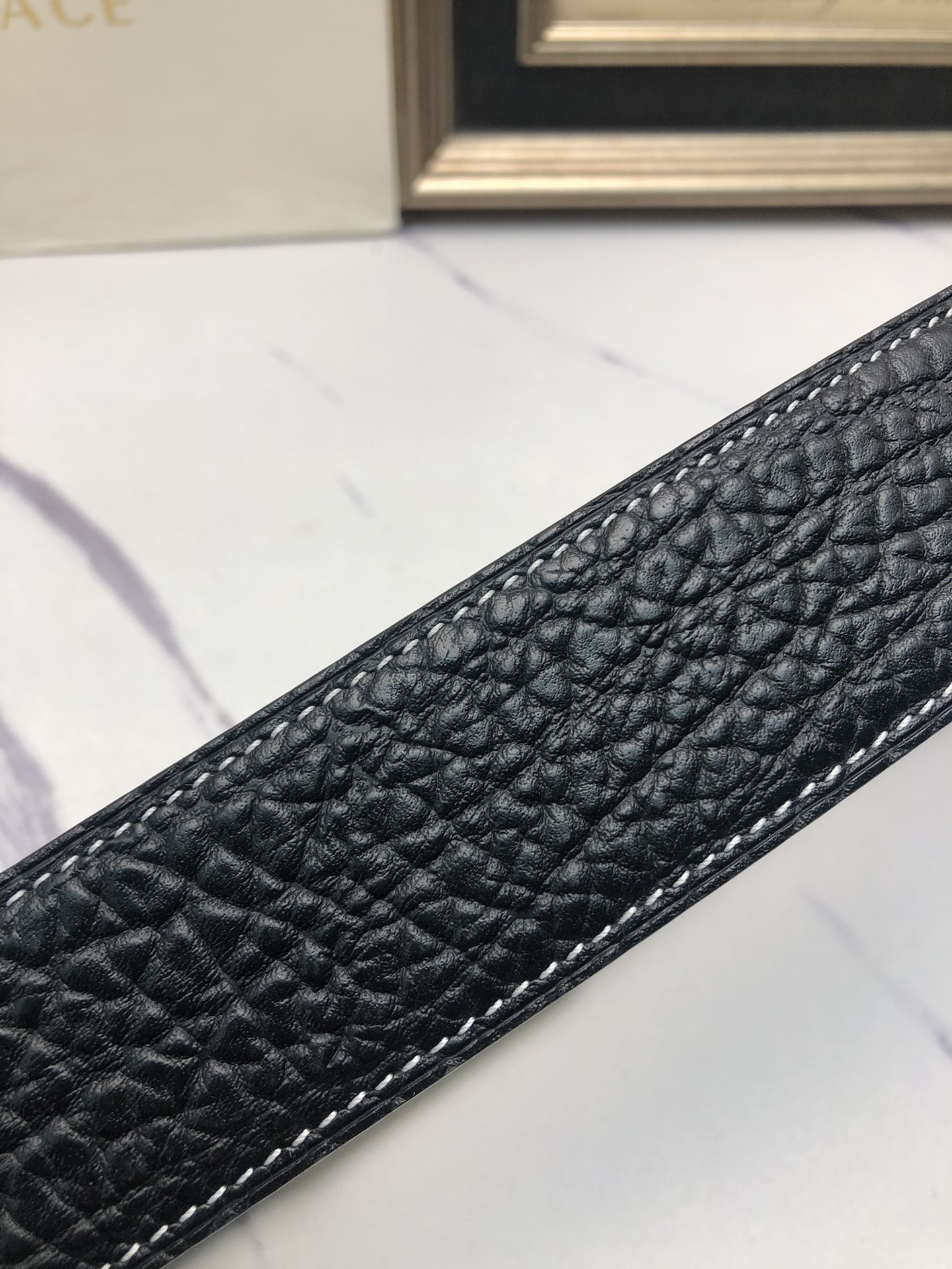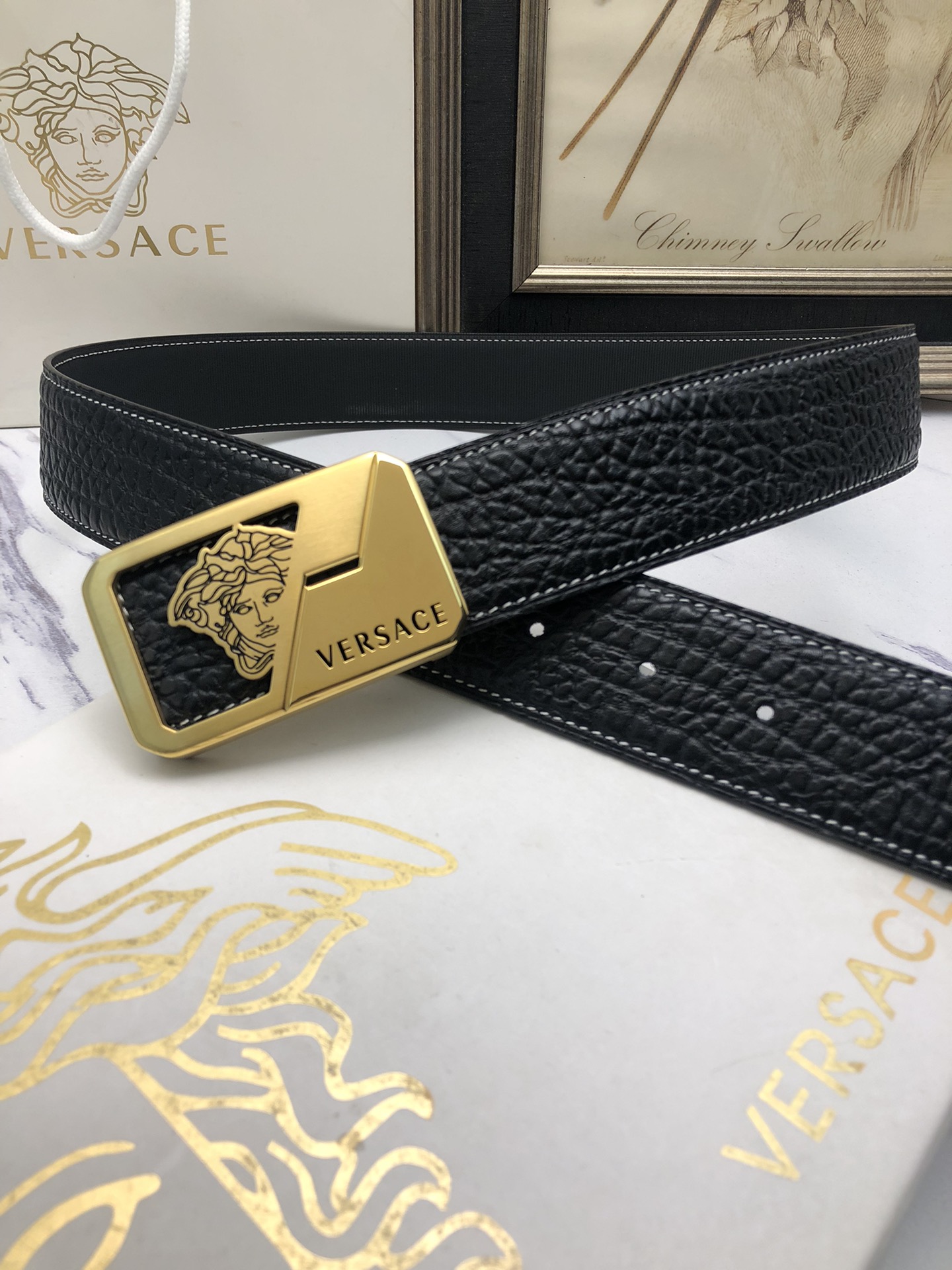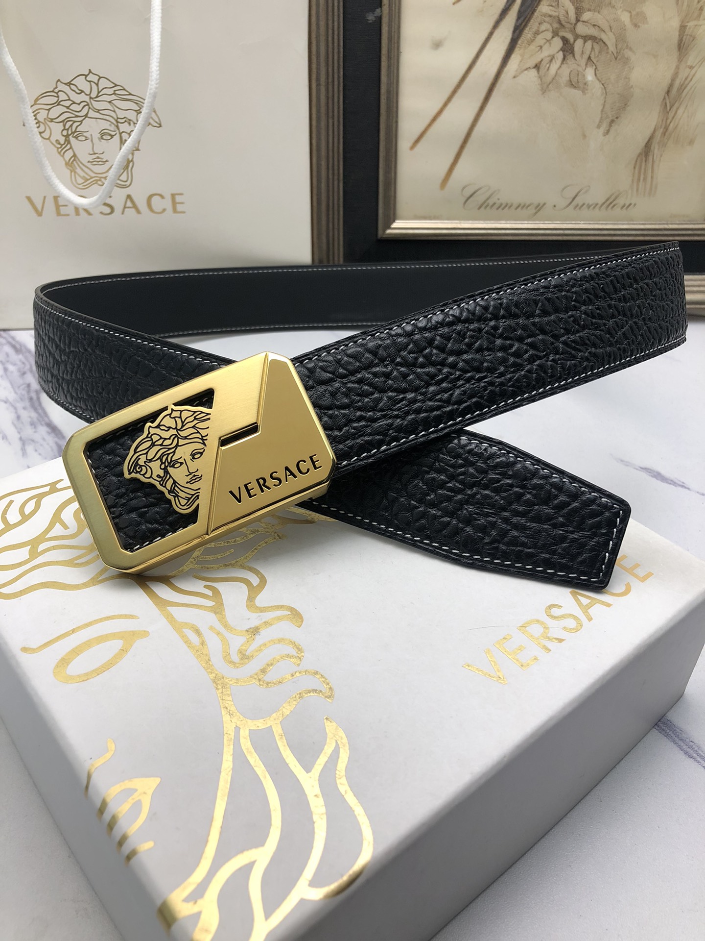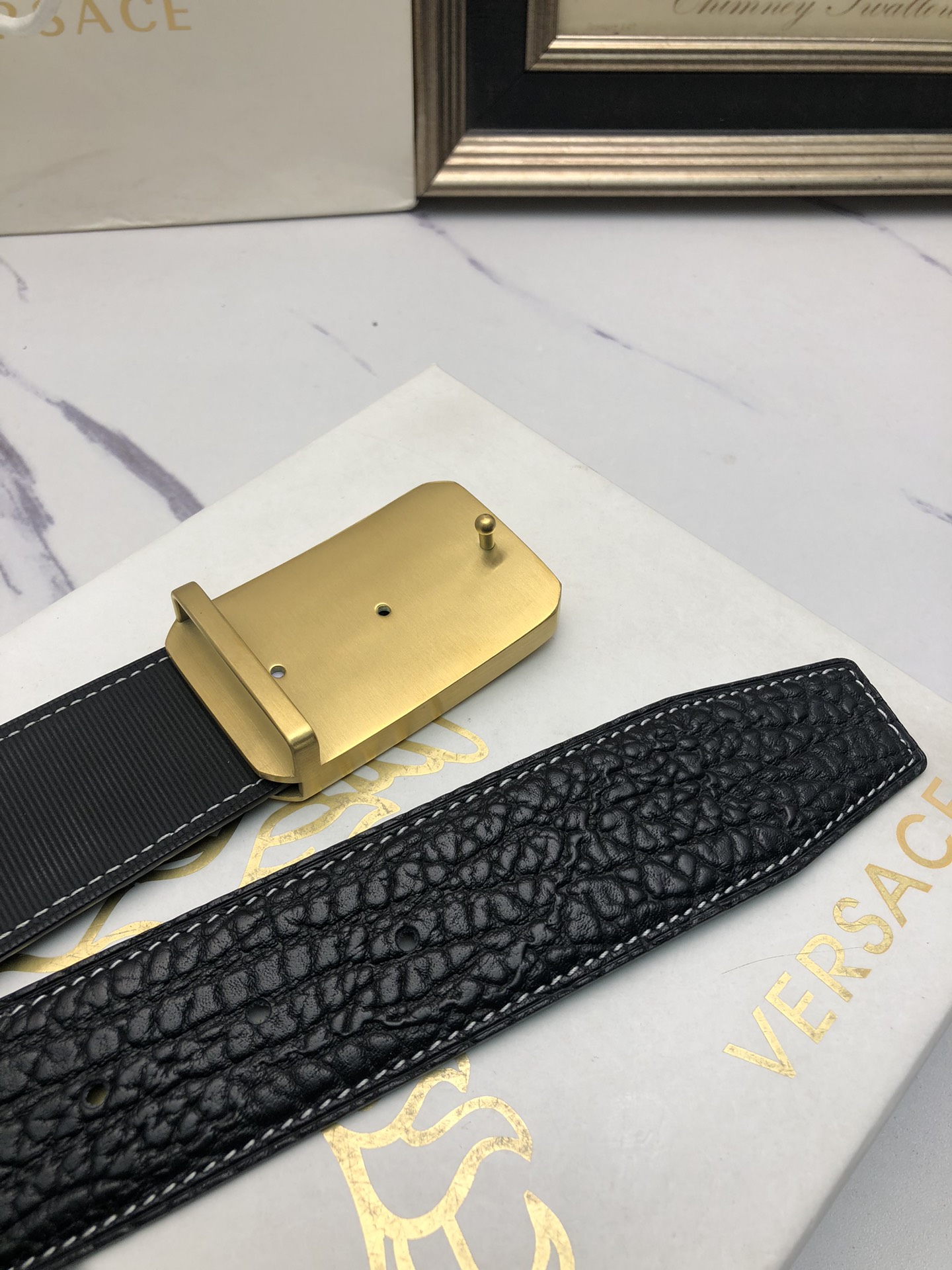 這款皮帶是AAAAA 1:1 質量(非常棒). 使用了和原版一模一樣的材料. 商標部分也保持了和范思哲/Versace一樣. 圖片拍攝是實物皮帶拍攝, 您所收到的實物保證和我們圖片一模一樣.
