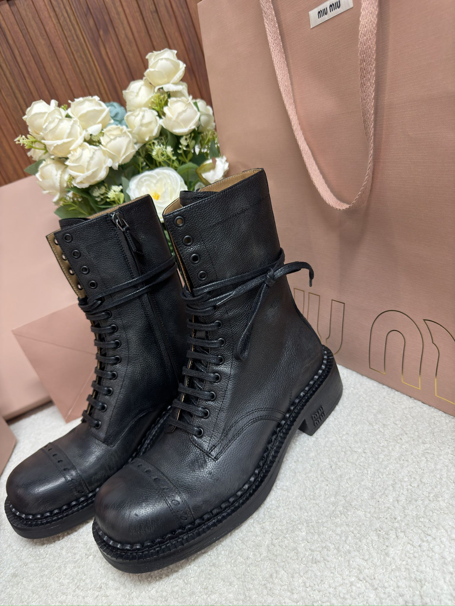 這款鞋子是AAAAA 1:1 質量(非常棒). 使用了和原版一模一樣的材料. 商標部分也保持了和繆繆/Miu Miu一樣. 圖片拍攝是實物鞋子拍攝, 您所收到的實物保證和我們圖片一模一樣.