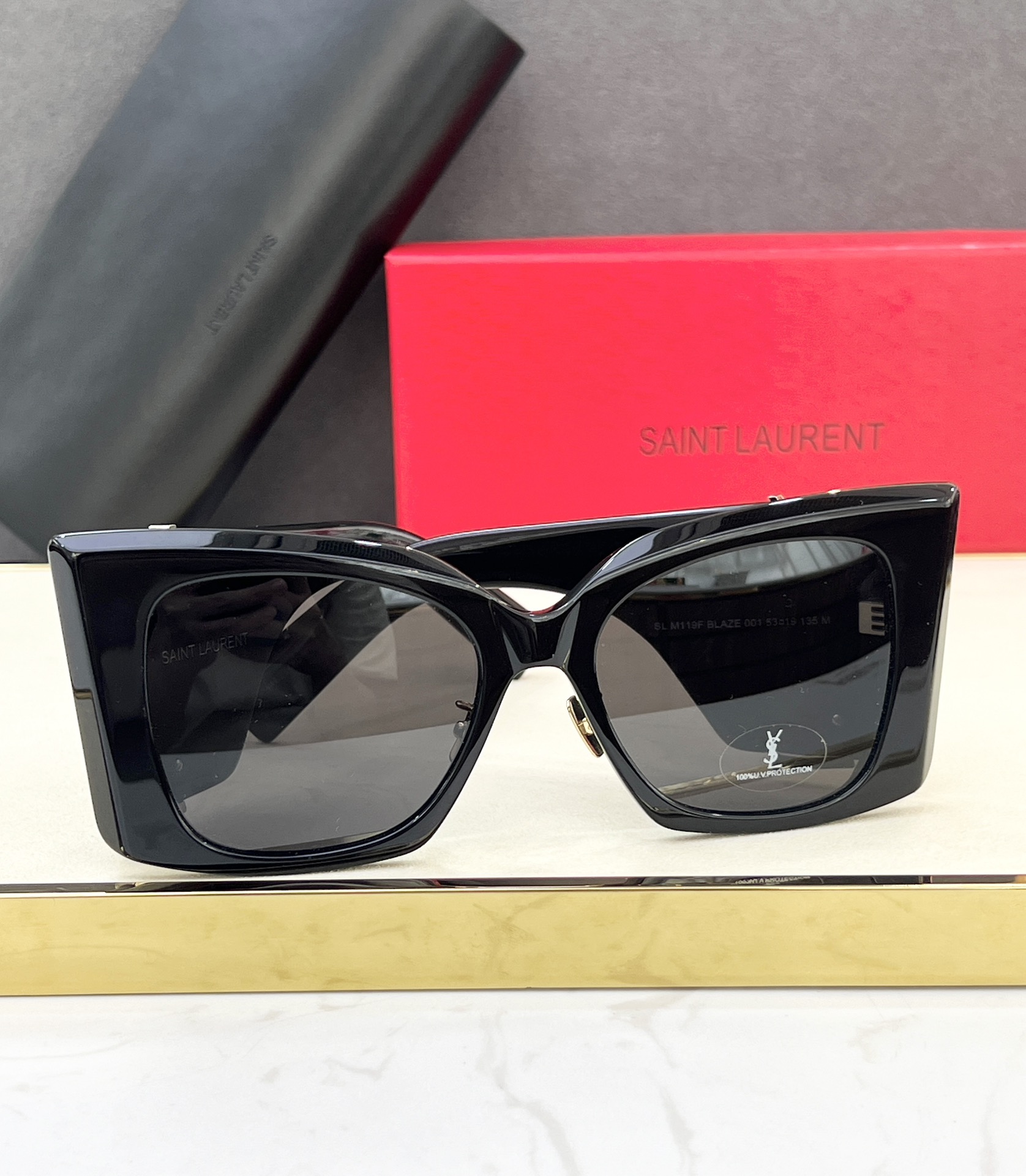 這款太陽眼鏡是AAAAA 1:1 質量(非常棒). 使用了和原版一模一樣的材料. 商標部分也保持了和聖羅蘭/Saint Laurent一樣. 圖片拍攝是實物太陽眼鏡拍攝, 您所收到的實物保證和我們圖片一模一樣.