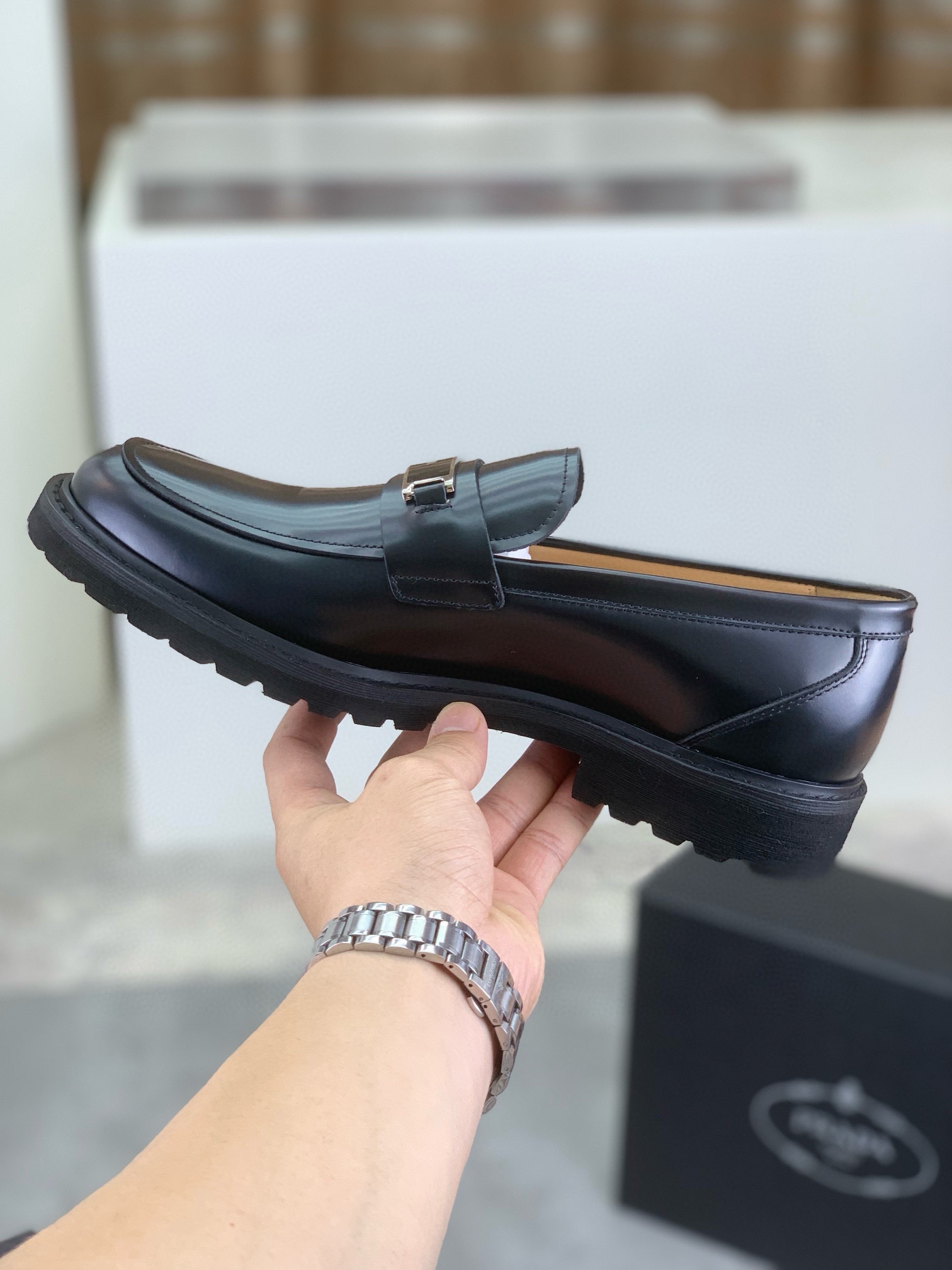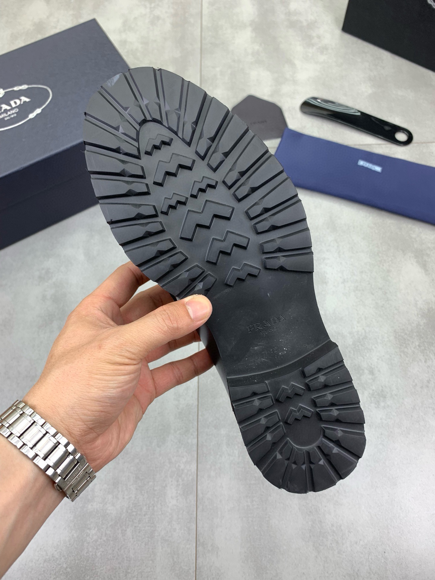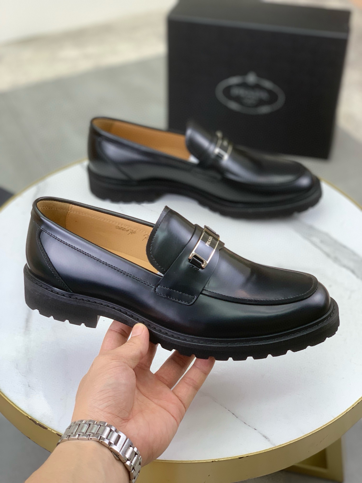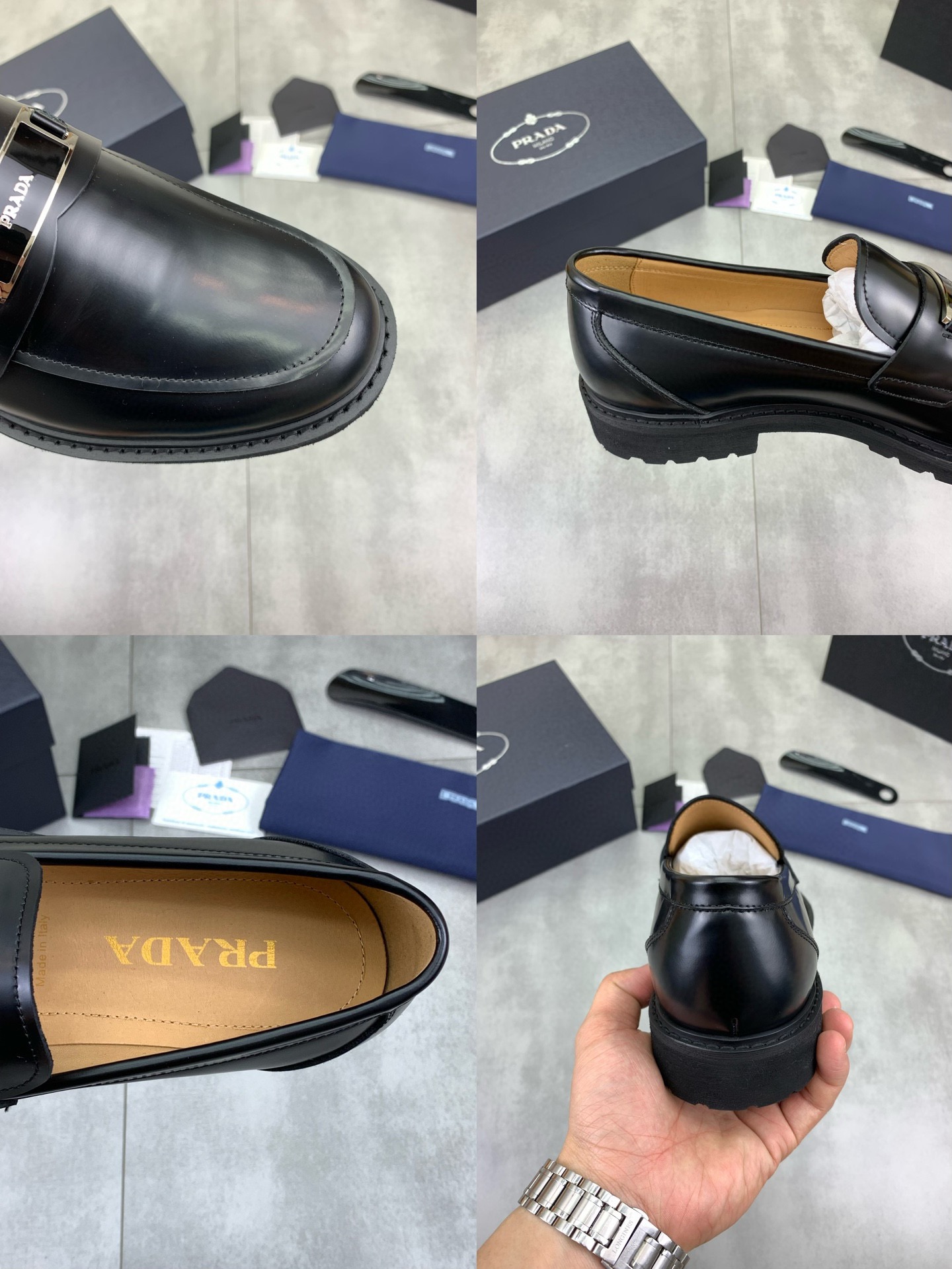 這款鞋子是AAAAA 1:1 質量(非常棒). 使用了和原版一模一樣的材料. 商標部分也保持了和普拉達/Prada一樣. 圖片拍攝是實物鞋子拍攝, 您所收到的實物保證和我們圖片一模一樣.