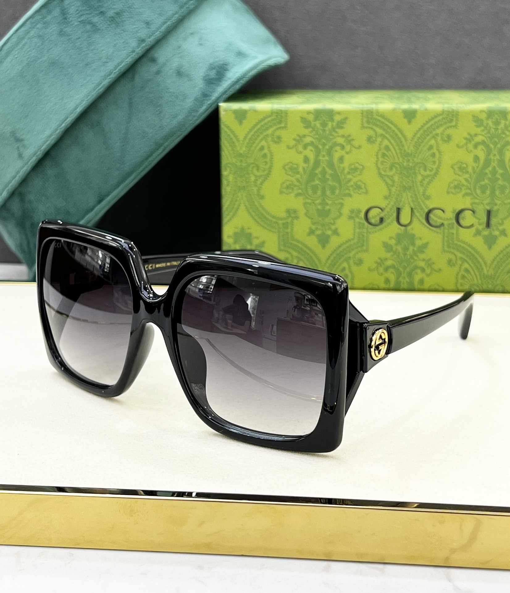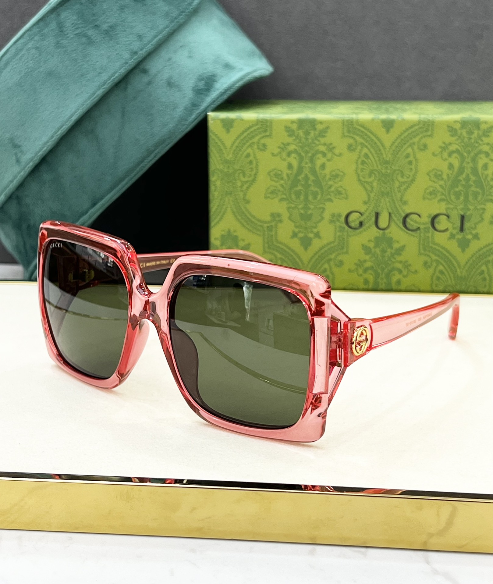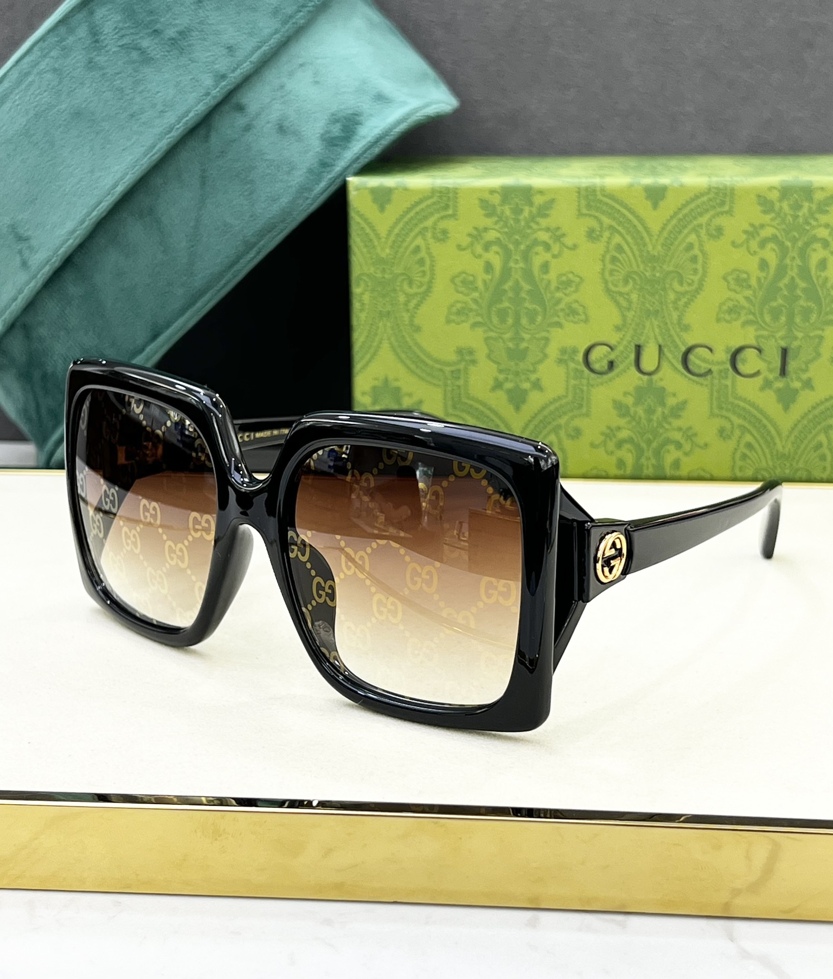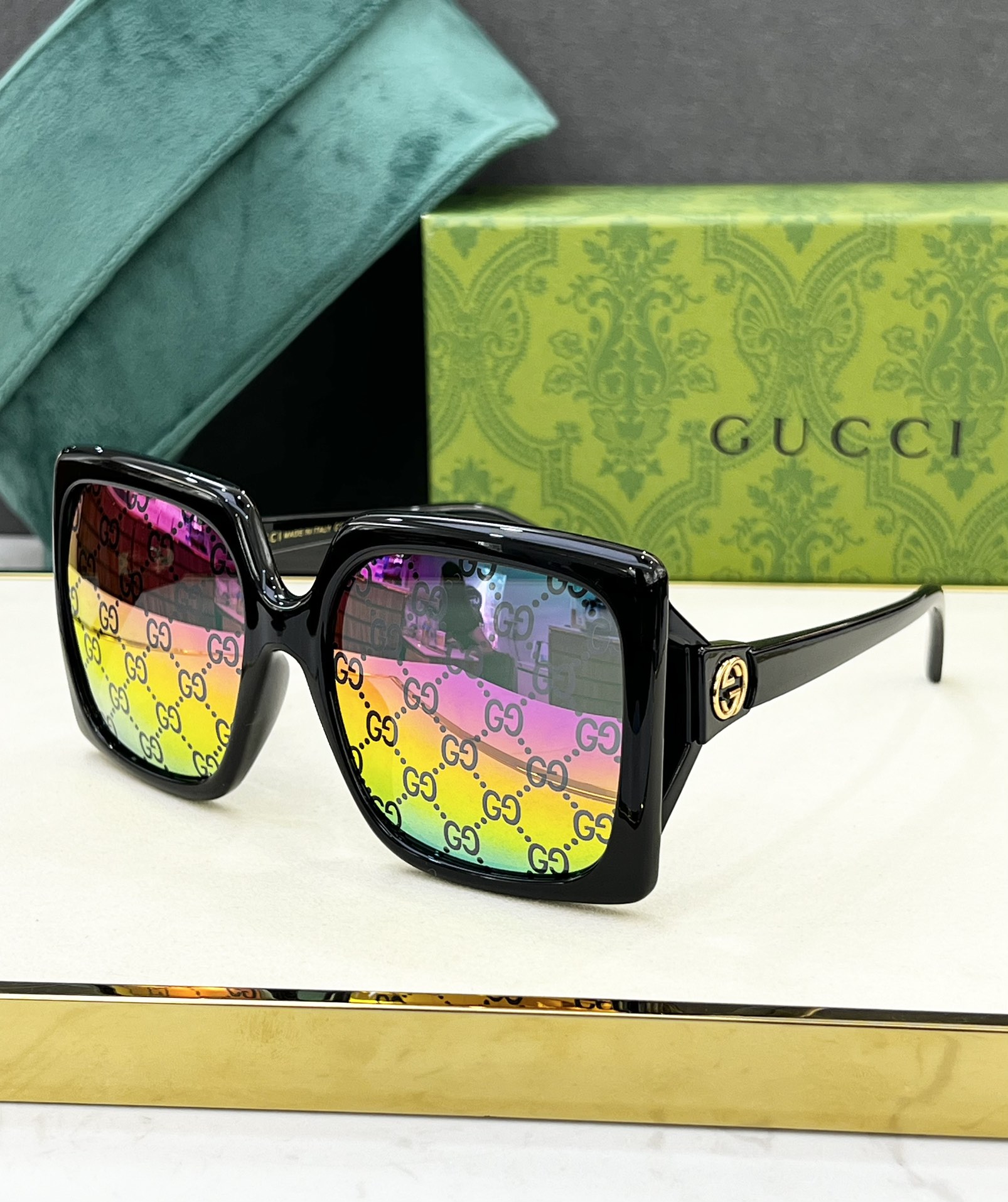 這款太陽眼鏡是AAAAA 1:1 質量(非常棒). 使用了和原版一模一樣的材料. 商標部分也保持了和古奇/Gucci一樣. 圖片拍攝是實物太陽眼鏡拍攝, 您所收到的實物保證和我們圖片一模一樣.