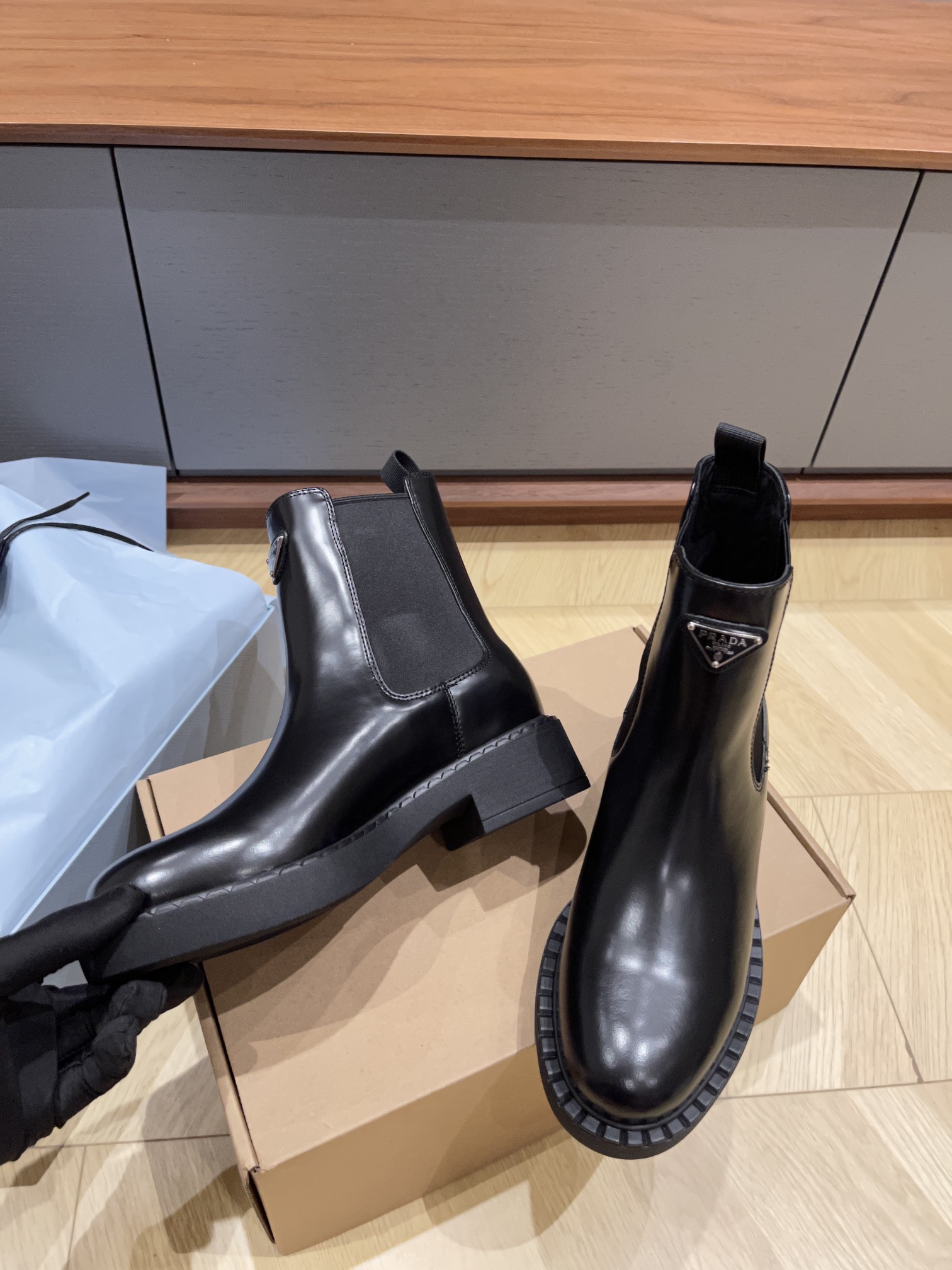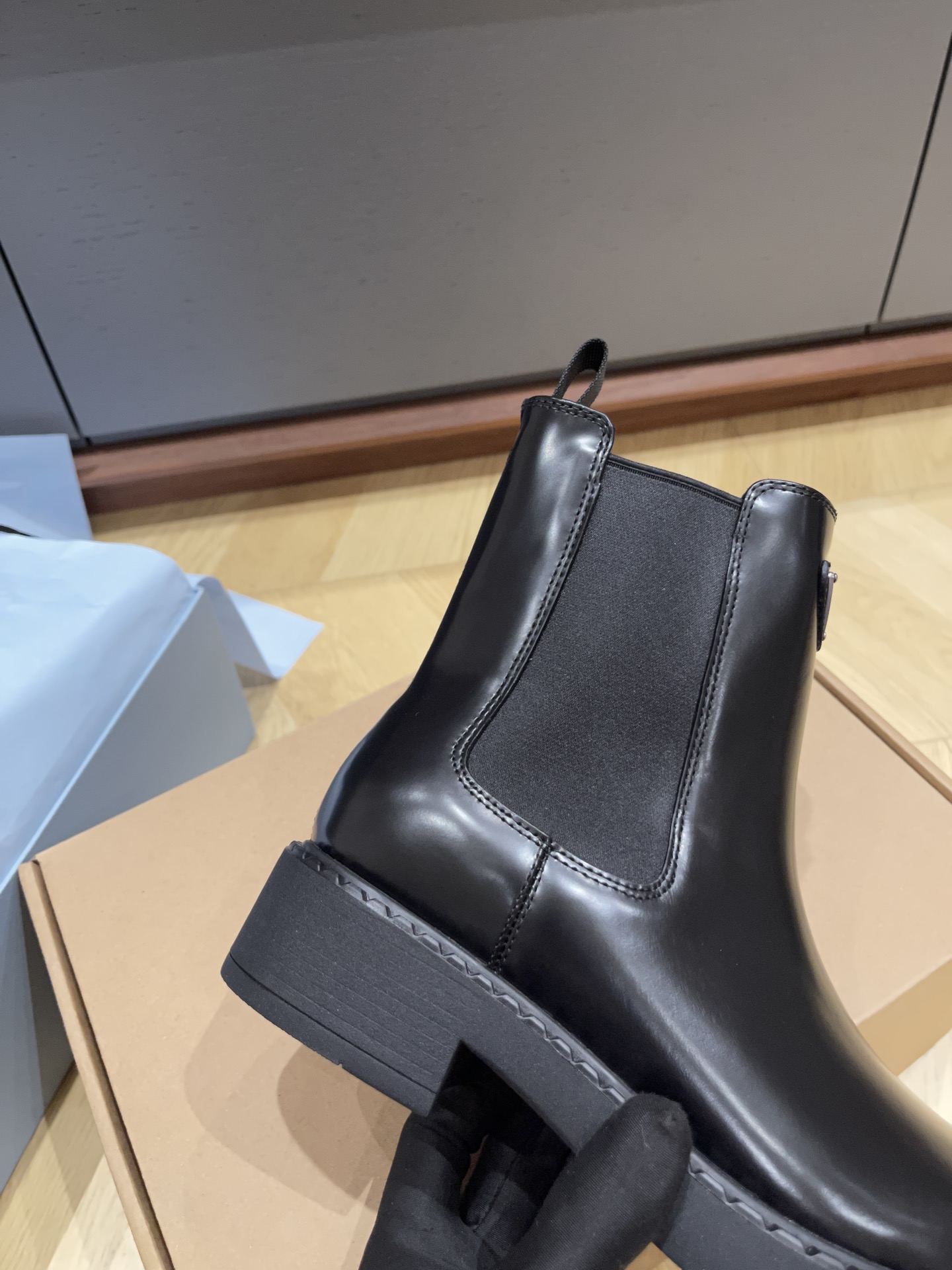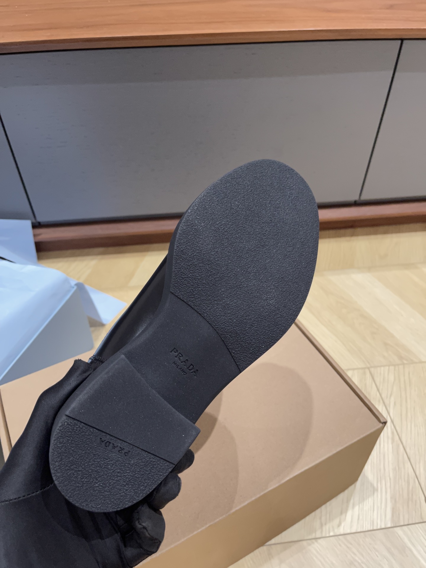 這款鞋子是AAAAA 1:1 質量(非常棒). 使用了和原版一模一樣的材料. 商標部分也保持了和普拉達/Prada一樣. 圖片拍攝是實物鞋子拍攝, 您所收到的實物保證和我們圖片一模一樣.