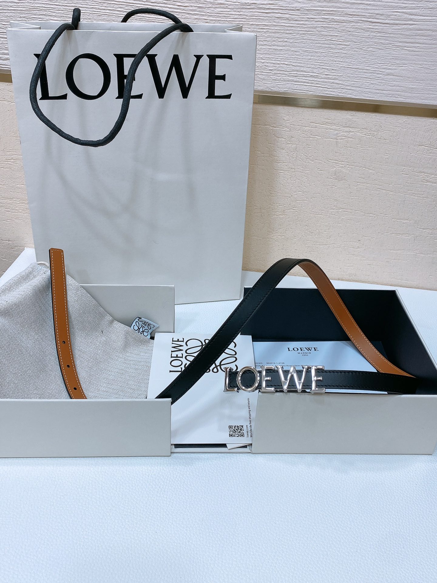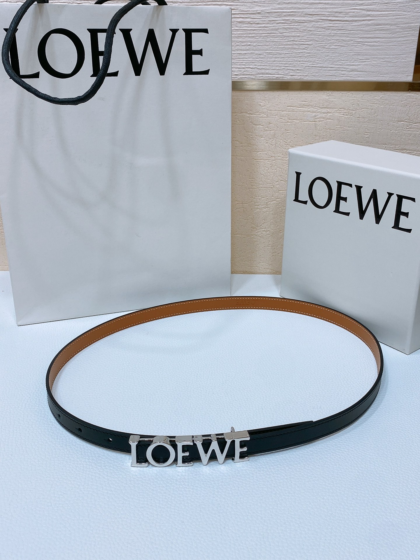這款皮帶是AAAAA 1:1 質量(非常棒). 使用了和原版一模一樣的材料. 商標部分也保持了和Loewe一樣. 圖片拍攝是實物皮帶拍攝, 您所收到的實物保證和我們圖片一模一樣.