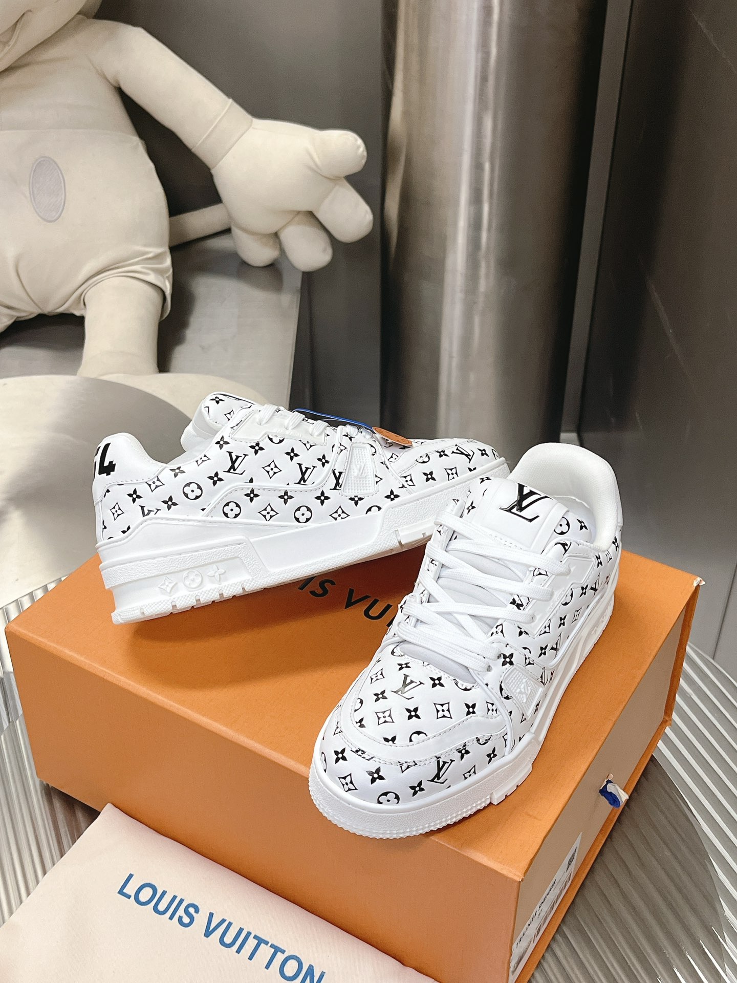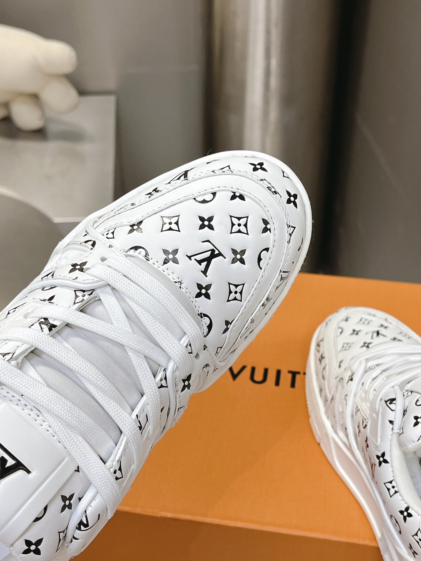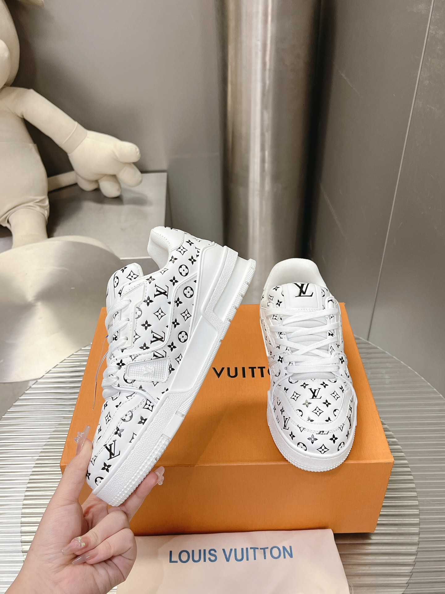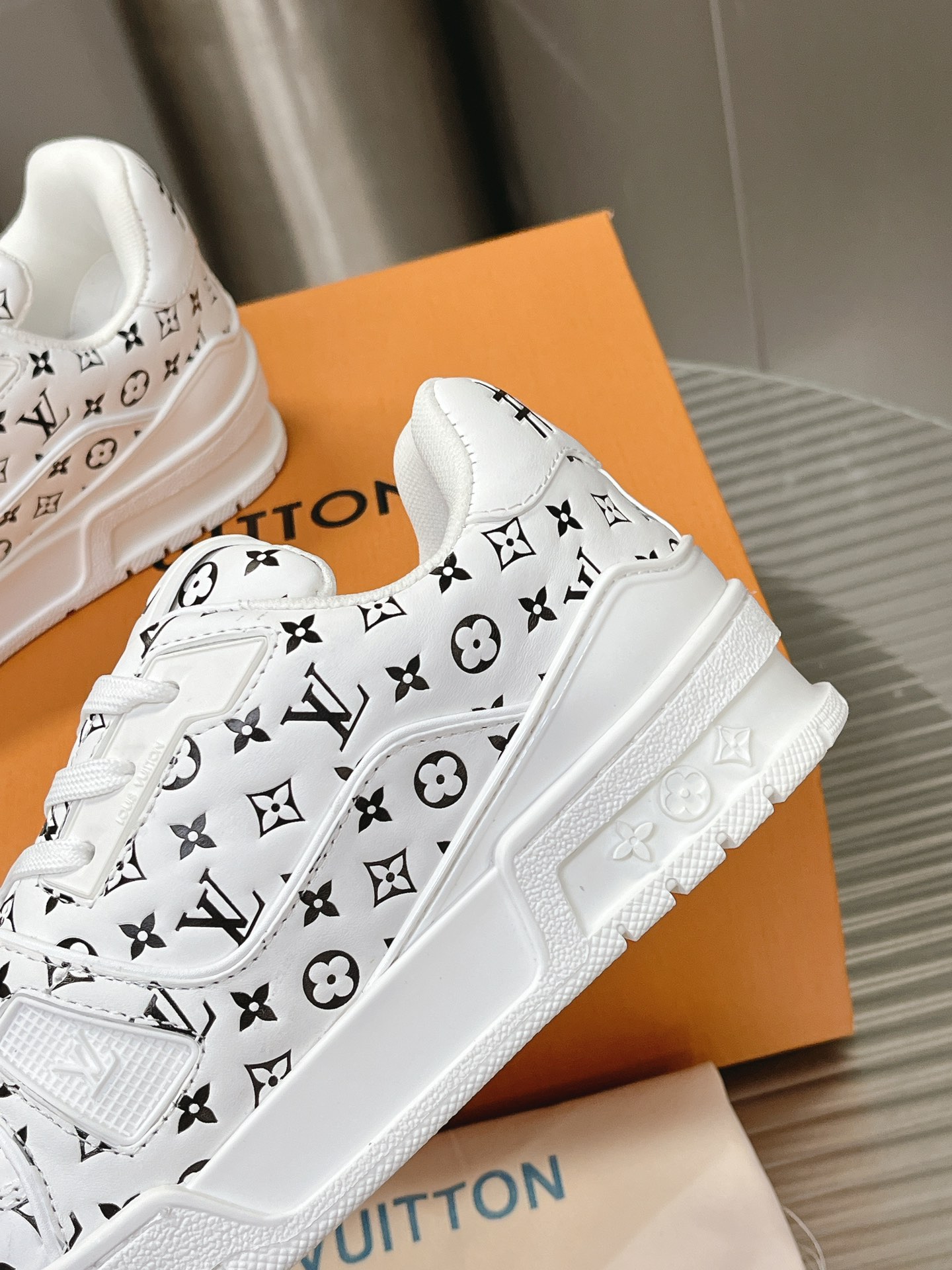 這款鞋子是AAAAA 1:1 質量(非常棒). 使用了和原版一模一樣的材料. 商標部分也保持了和路易威登/Louis Vuitton一樣. 圖片拍攝是實物鞋子拍攝, 您所收到的實物保證和我們圖片一模一樣.