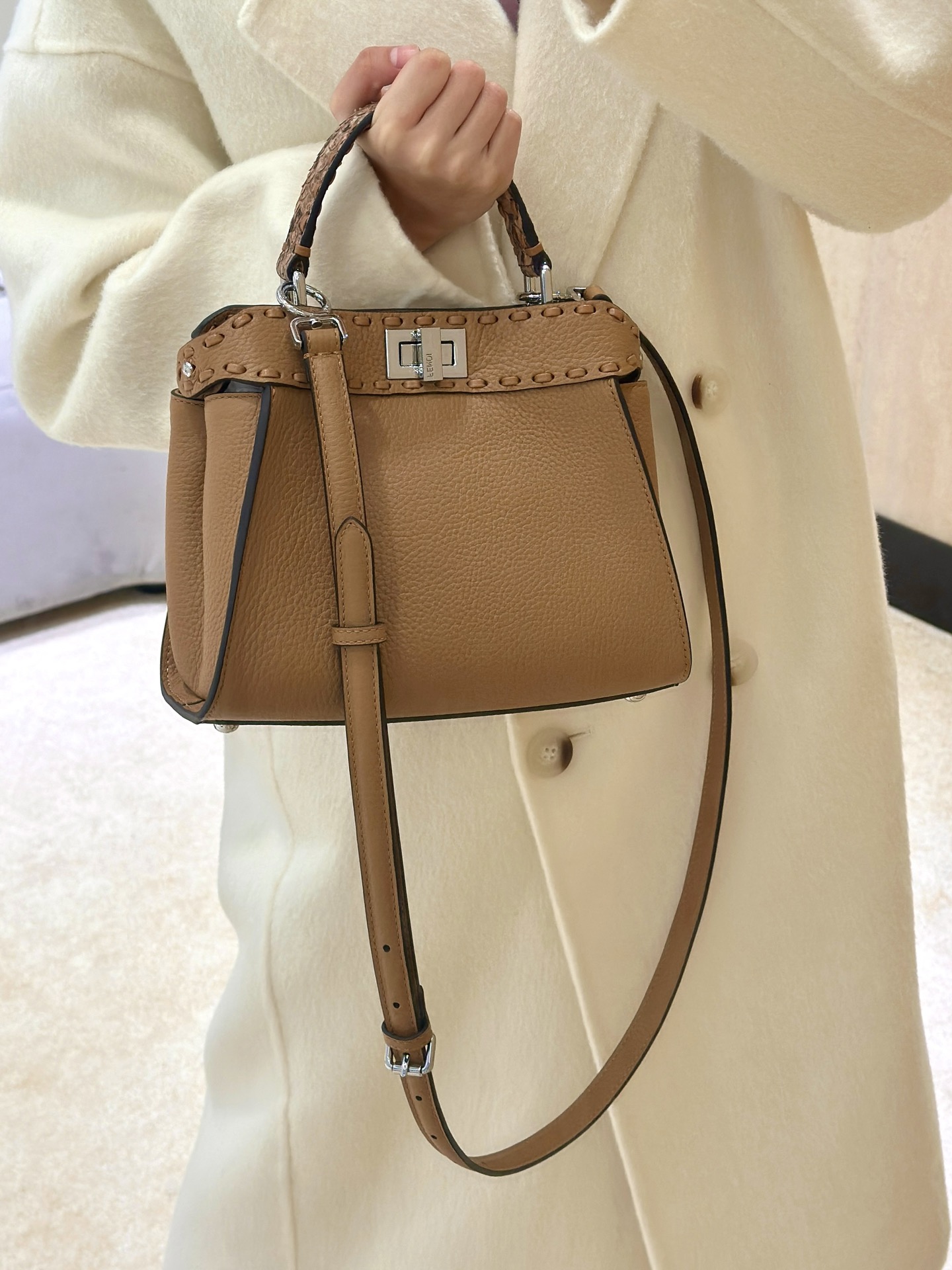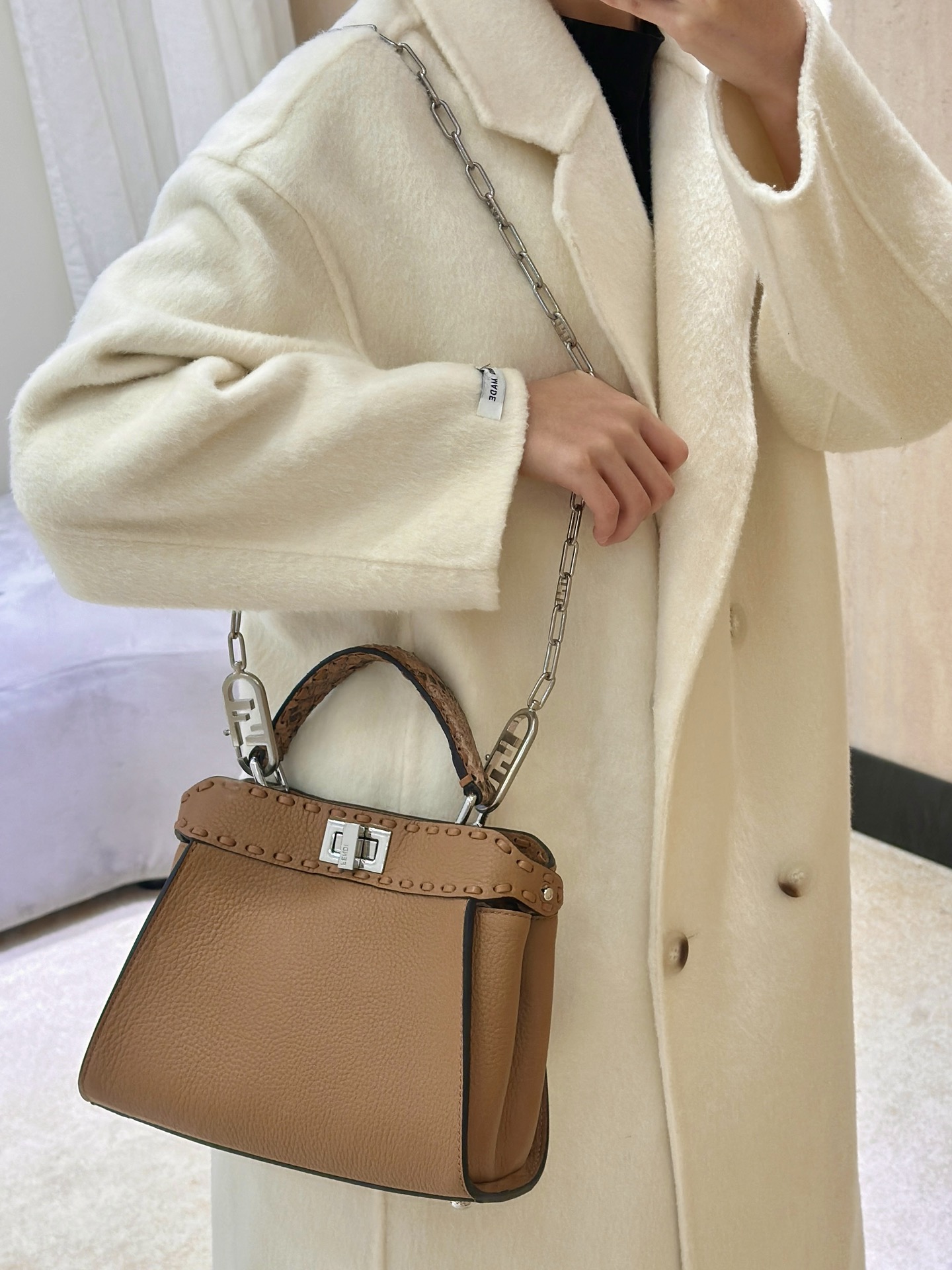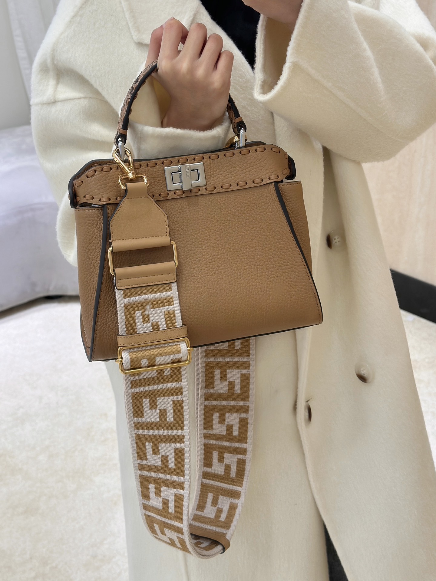這款包包是AAAAA 1:1 質量(非常棒). 使用了和原版一模一樣的材料. 商標部分也保持了和芬迪/Fendi一樣. 圖片拍攝是實物包包拍攝, 您所收到的實物保證和我們圖片一模一樣.