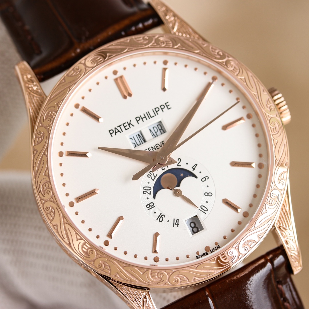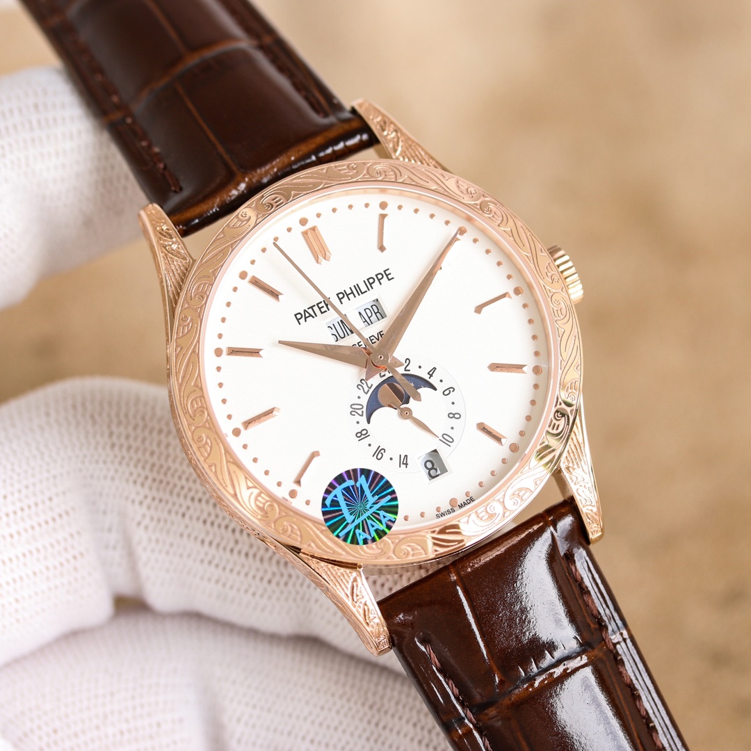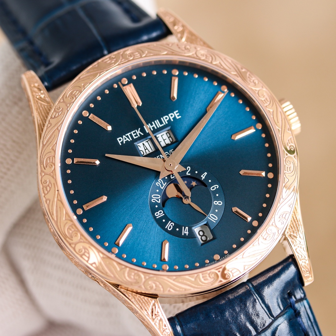 這款手錶是AAAAA 1:1 質量(非常棒). 使用了和原版一模一樣的材料. 商標部分也保持了和百達翡麗/Patek Philippe一樣. 圖片拍攝是實物手錶拍攝, 您所收到的實物保證和我們圖片一模一樣.