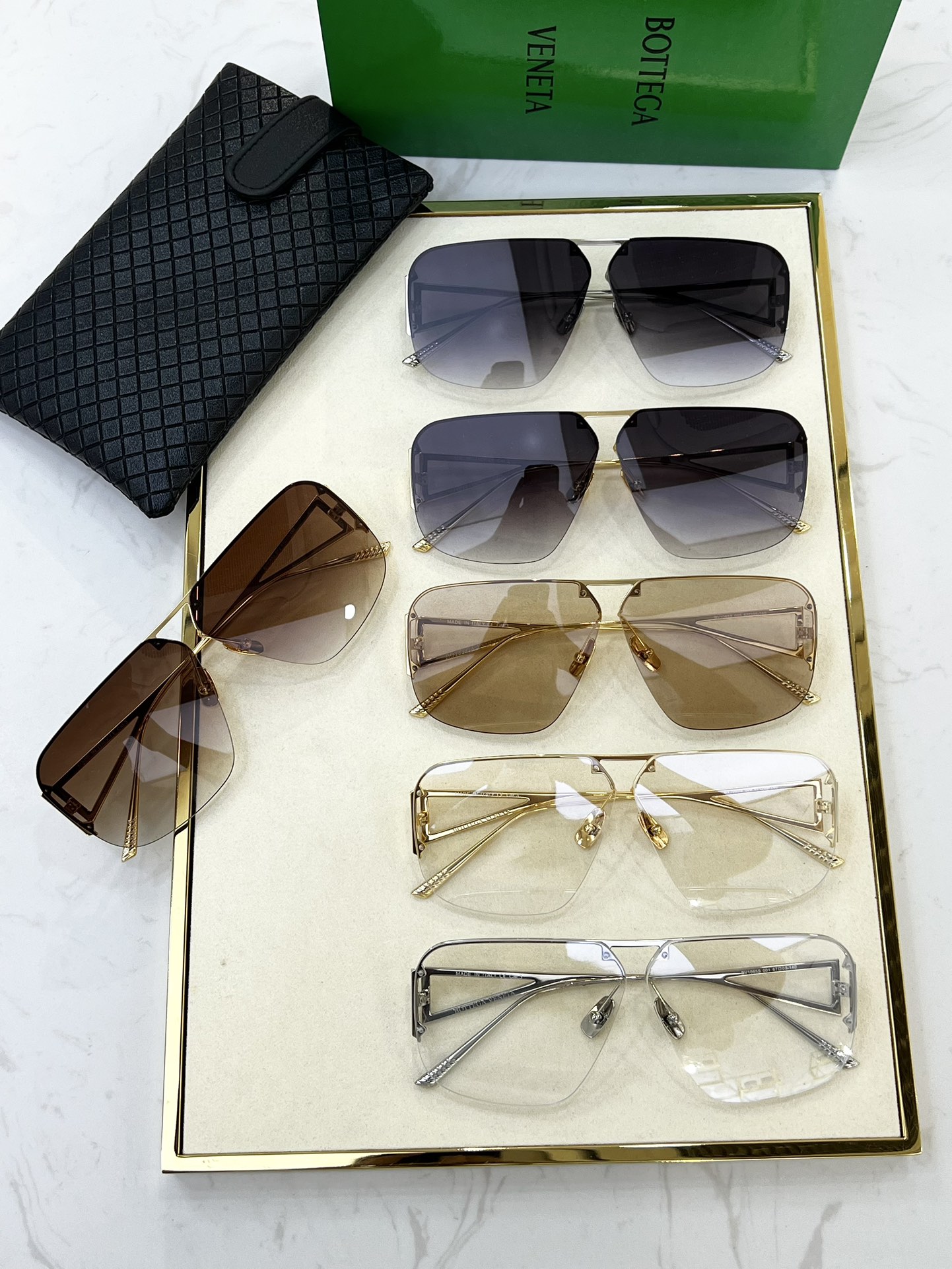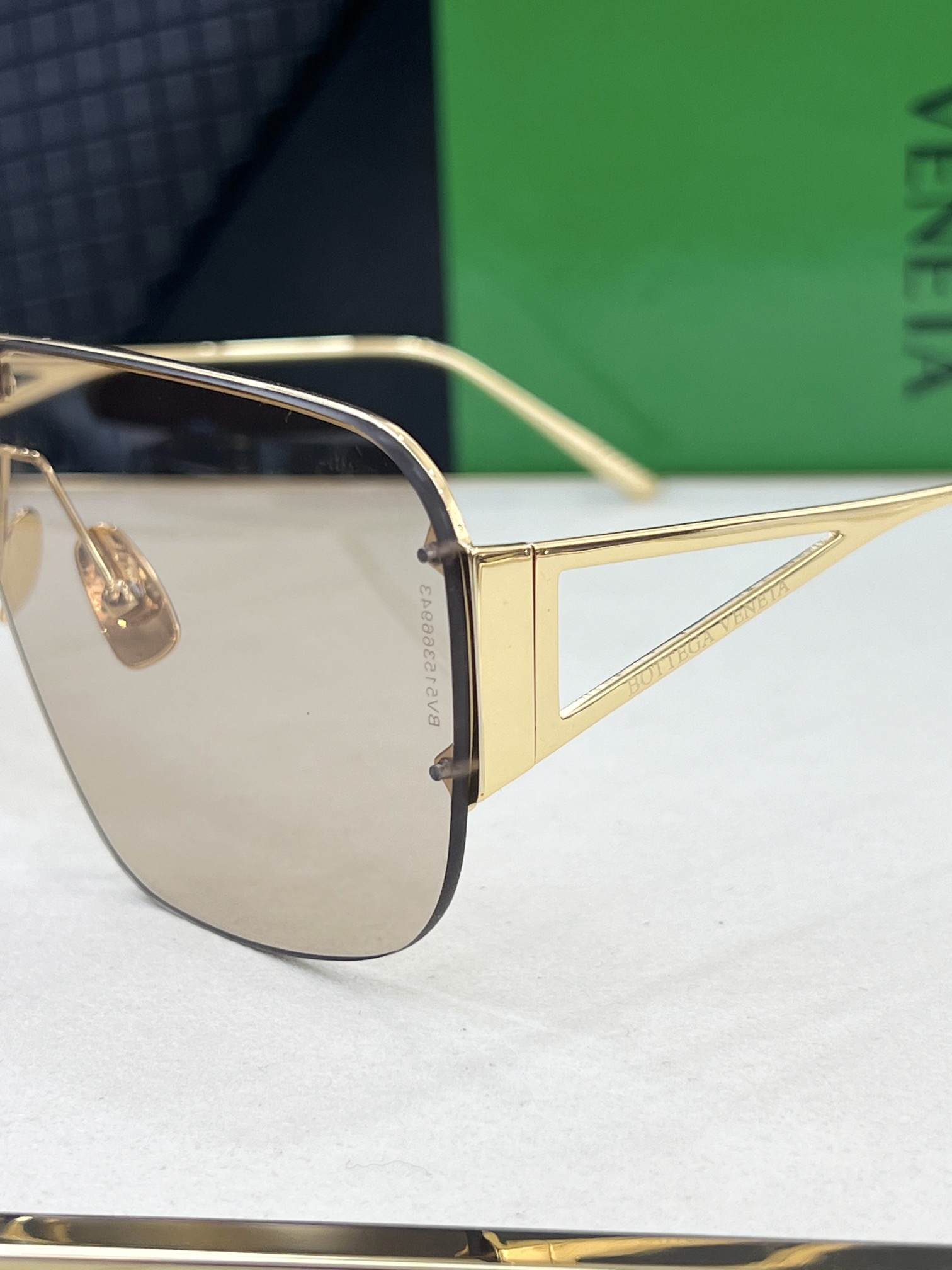 這款太陽眼鏡是AAAAA 1:1 質量(非常棒). 使用了和原版一模一樣的材料. 商標部分也保持了和葆蝶家/Bottega Veneta一樣. 圖片拍攝是實物太陽眼鏡拍攝, 您所收到的實物保證和我們圖片一模一樣.
