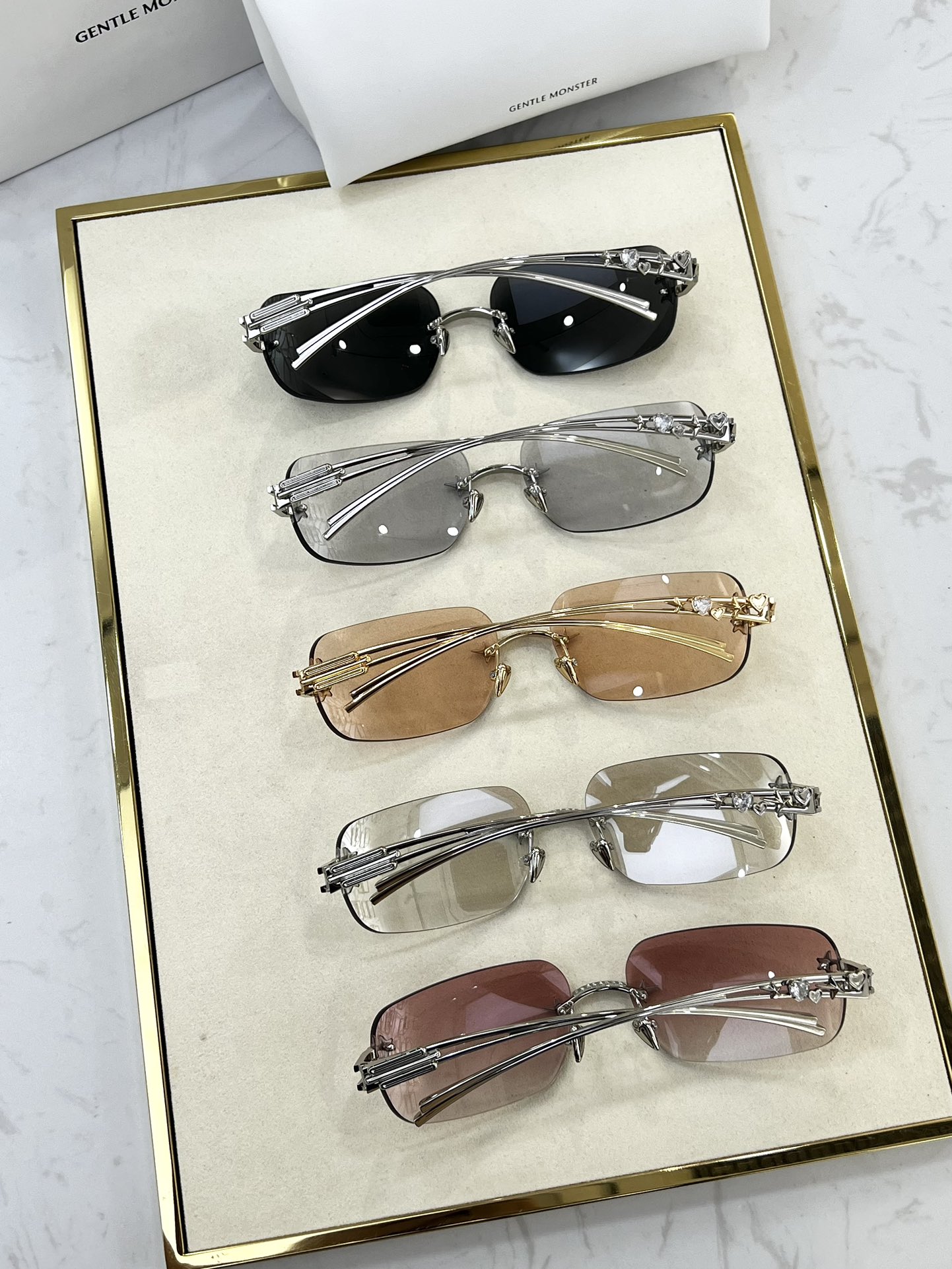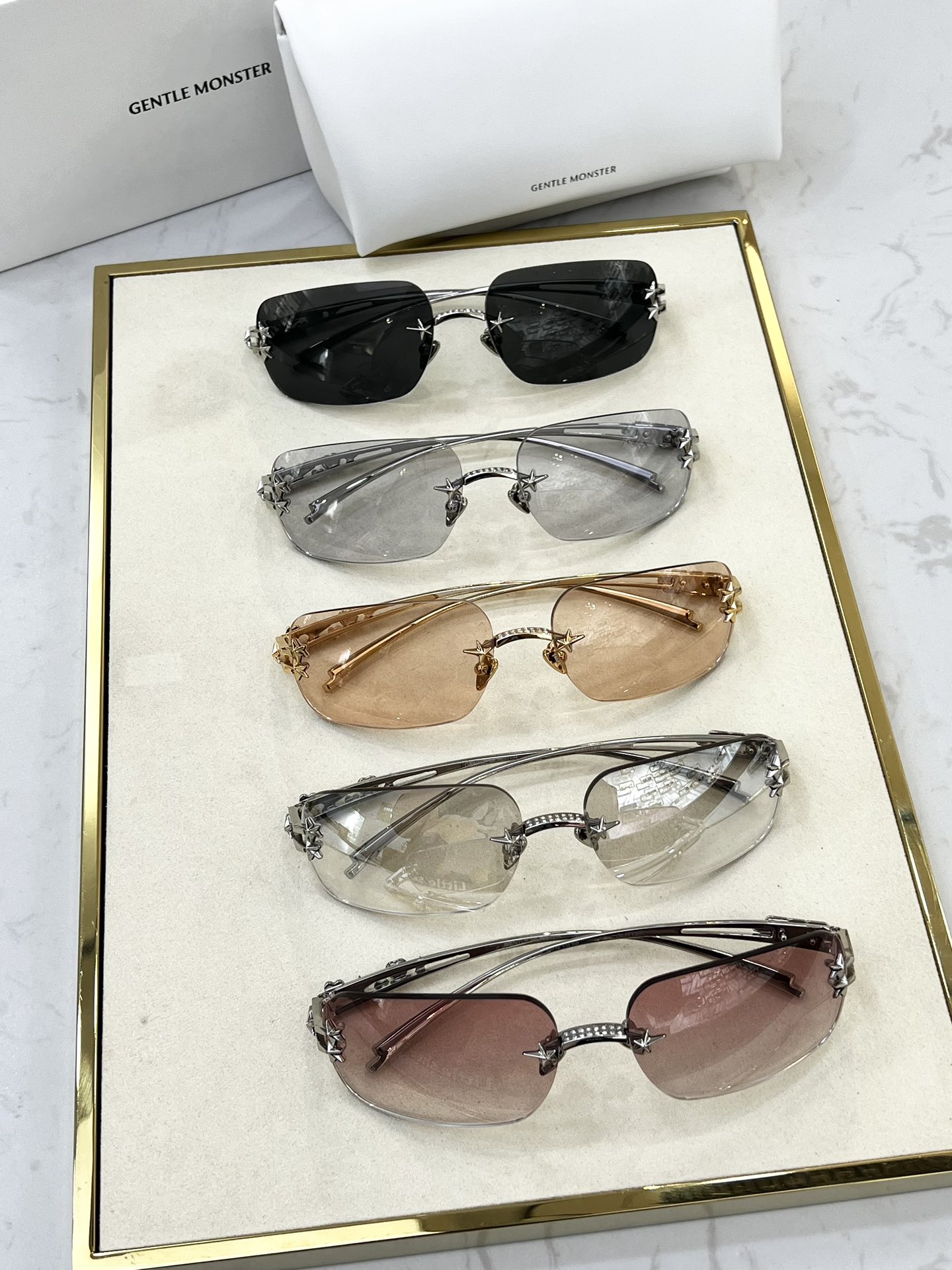 這款太陽眼鏡是AAAAA 1:1 質量(非常棒). 使用了和原版一模一樣的材料. 商標部分也保持了和Gentle Monster一樣. 圖片拍攝是實物太陽眼鏡拍攝, 您所收到的實物保證和我們圖片一模一樣.