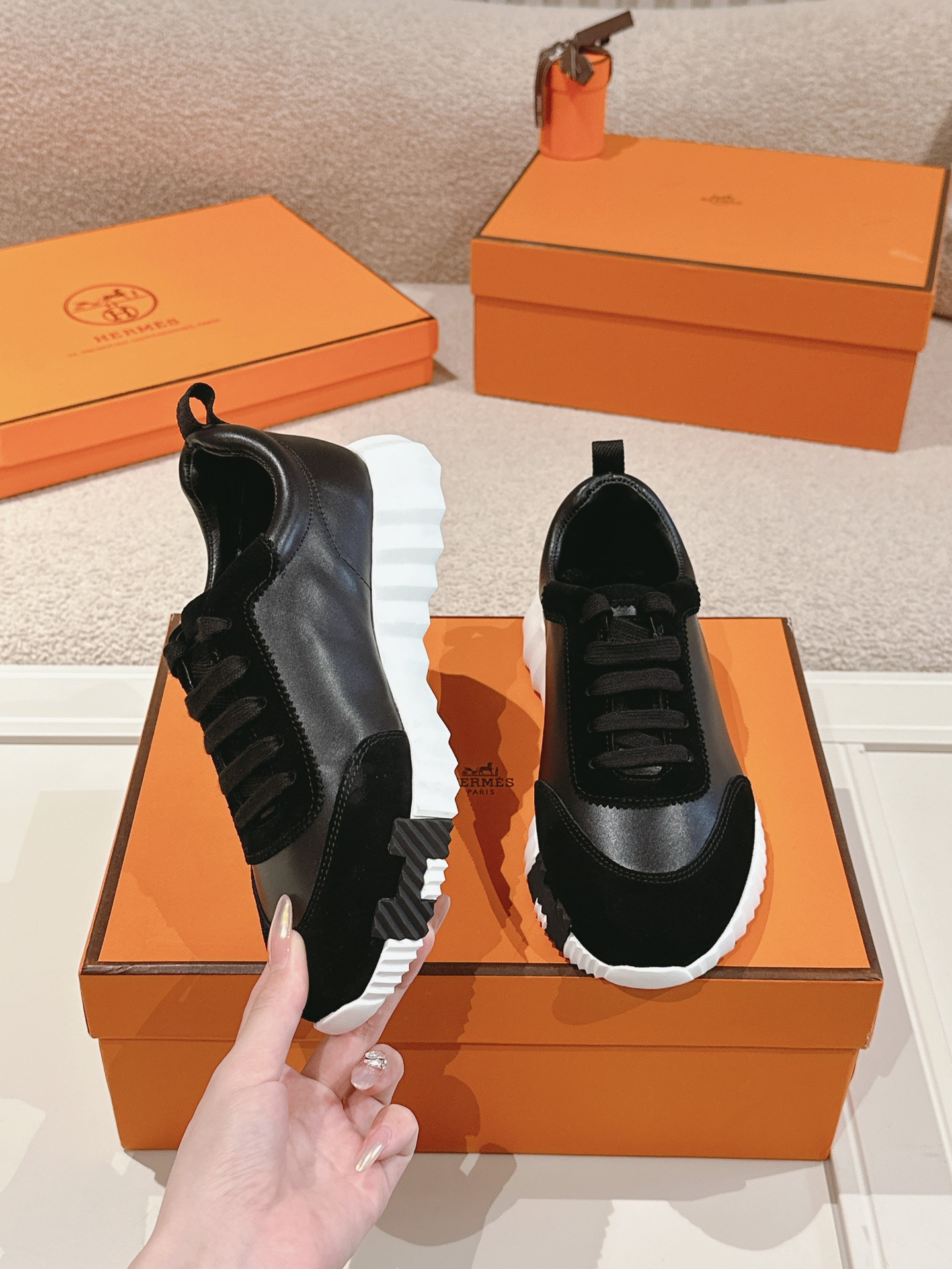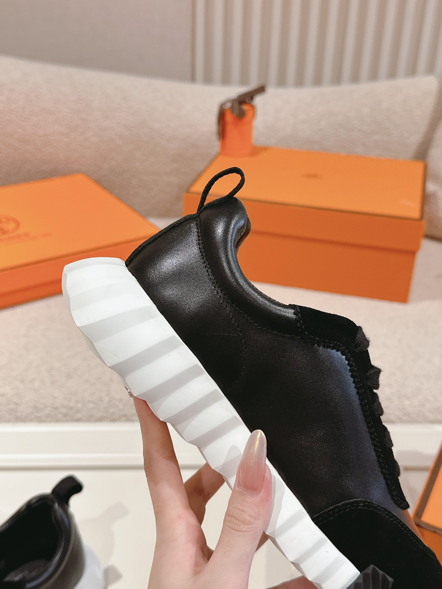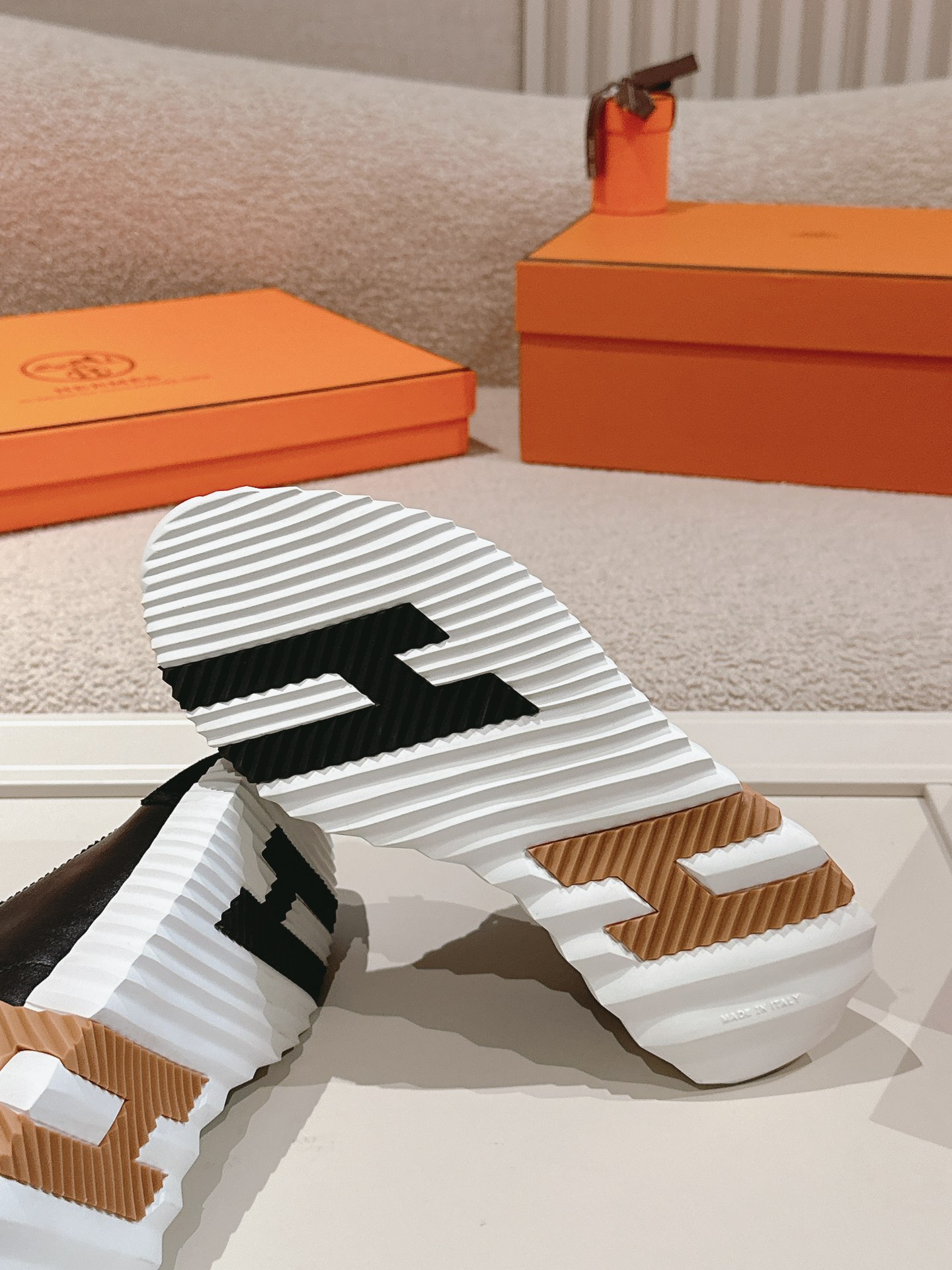 這款鞋子是AAAAA 1:1 質量(非常棒). 使用了和原版一模一樣的材料. 商標部分也保持了和愛馬仕/Hermes一樣. 圖片拍攝是實物鞋子拍攝, 您所收到的實物保證和我們圖片一模一樣.