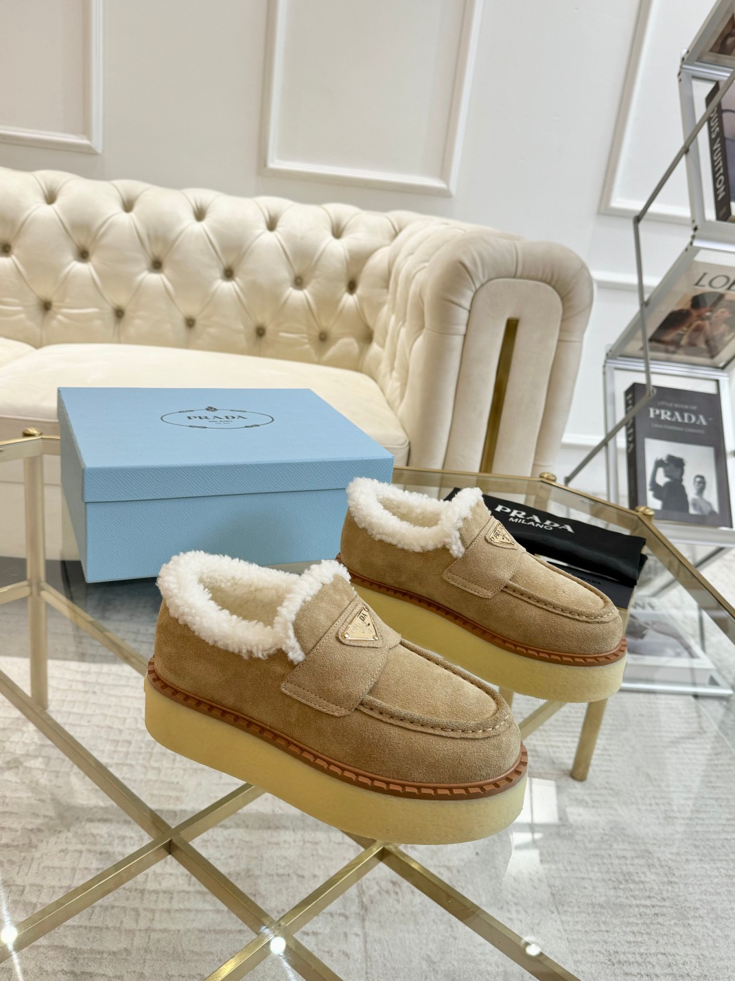 這款鞋子是AAAAA 1:1 質量(非常棒). 使用了和原版一模一樣的材料. 商標部分也保持了和普拉達/Prada一樣. 圖片拍攝是實物鞋子拍攝, 您所收到的實物保證和我們圖片一模一樣.
