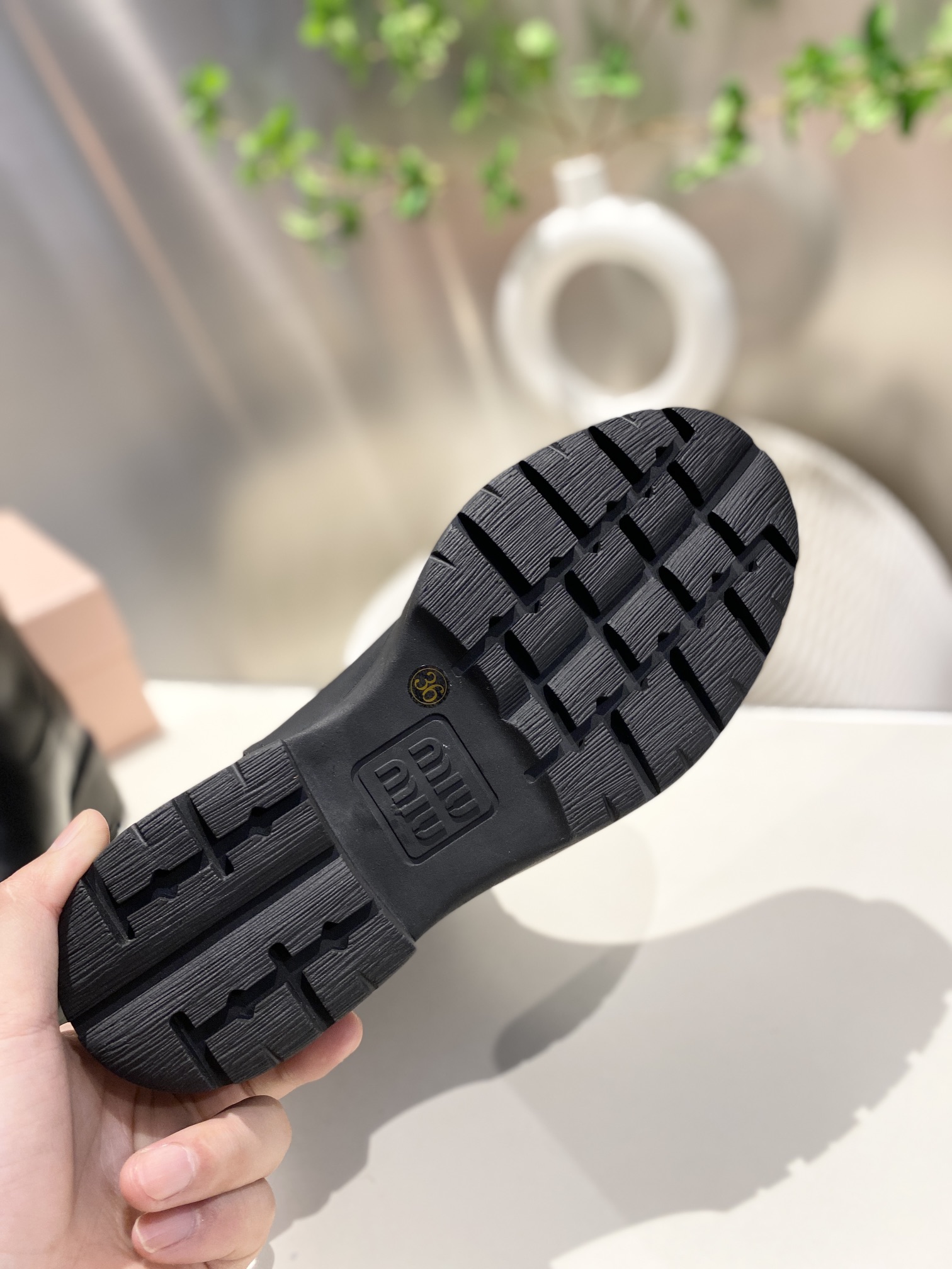 這款鞋子是AAAAA 1:1 質量(非常棒). 使用了和原版一模一樣的材料. 商標部分也保持了和繆繆/Miu Miu一樣. 圖片拍攝是實物鞋子拍攝, 您所收到的實物保證和我們圖片一模一樣.