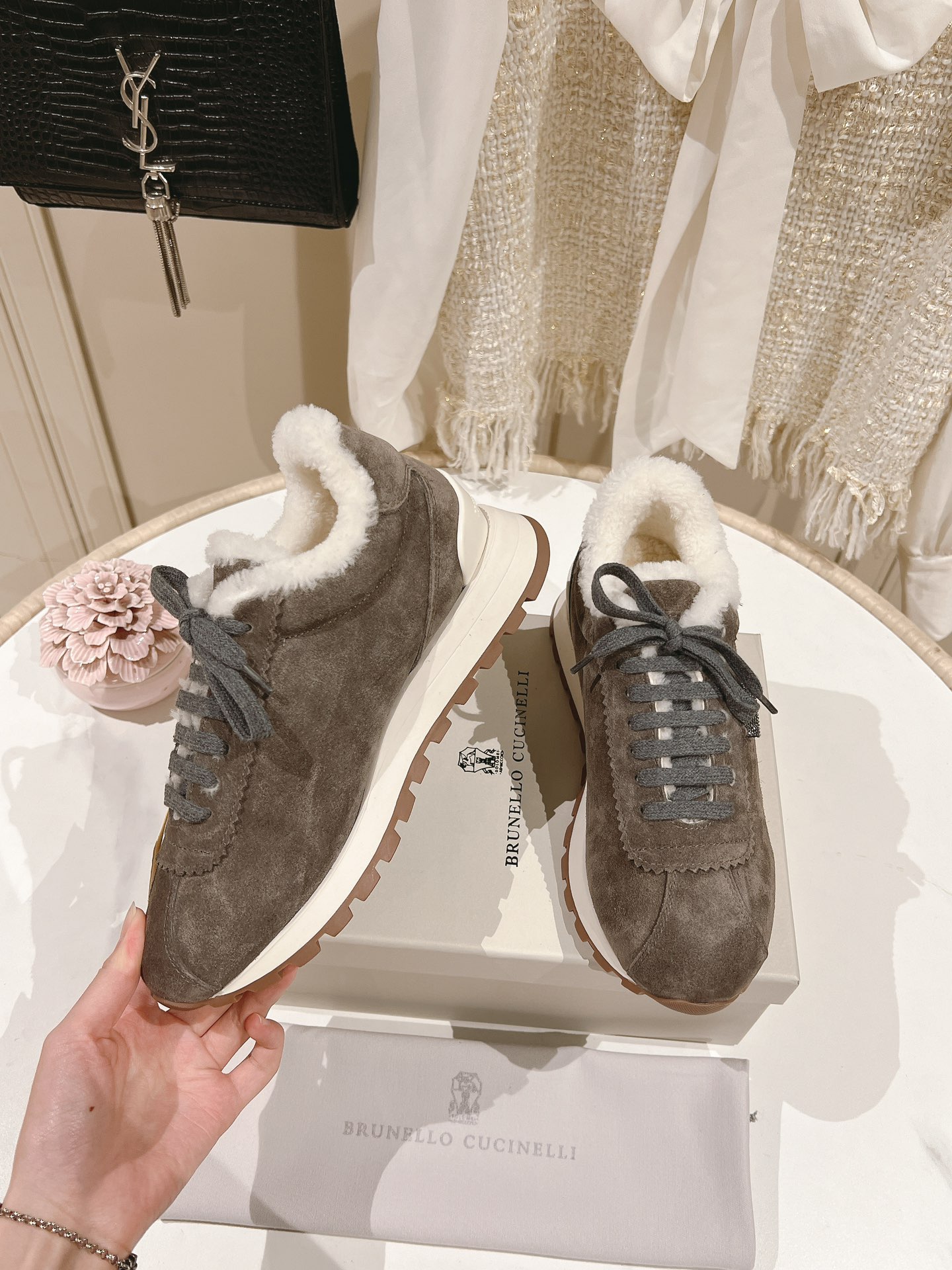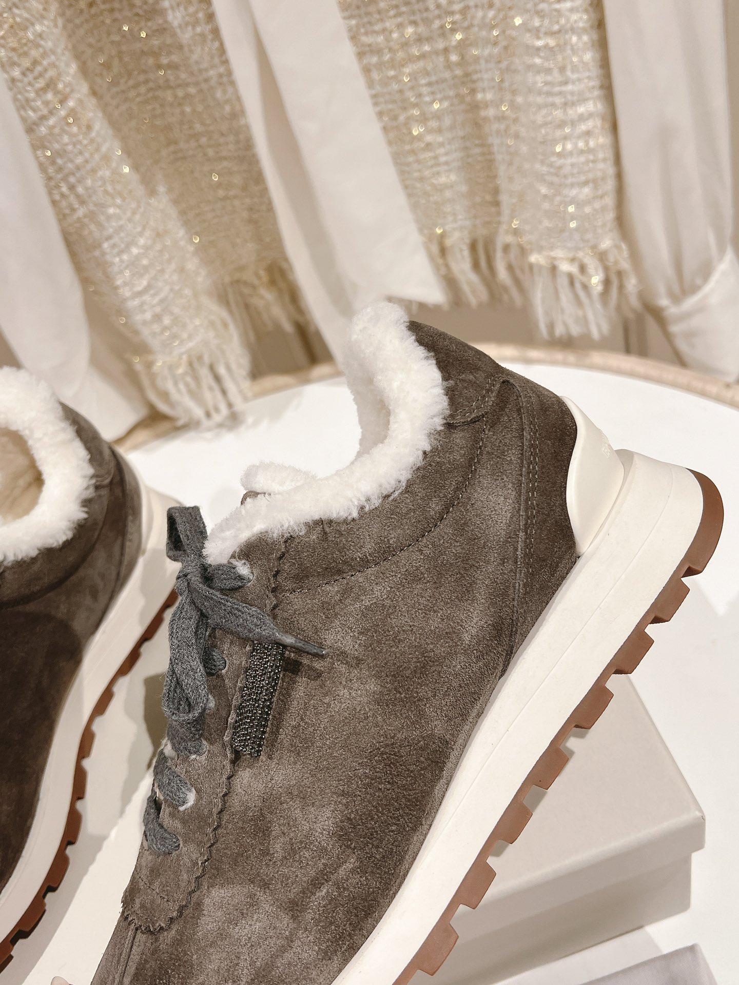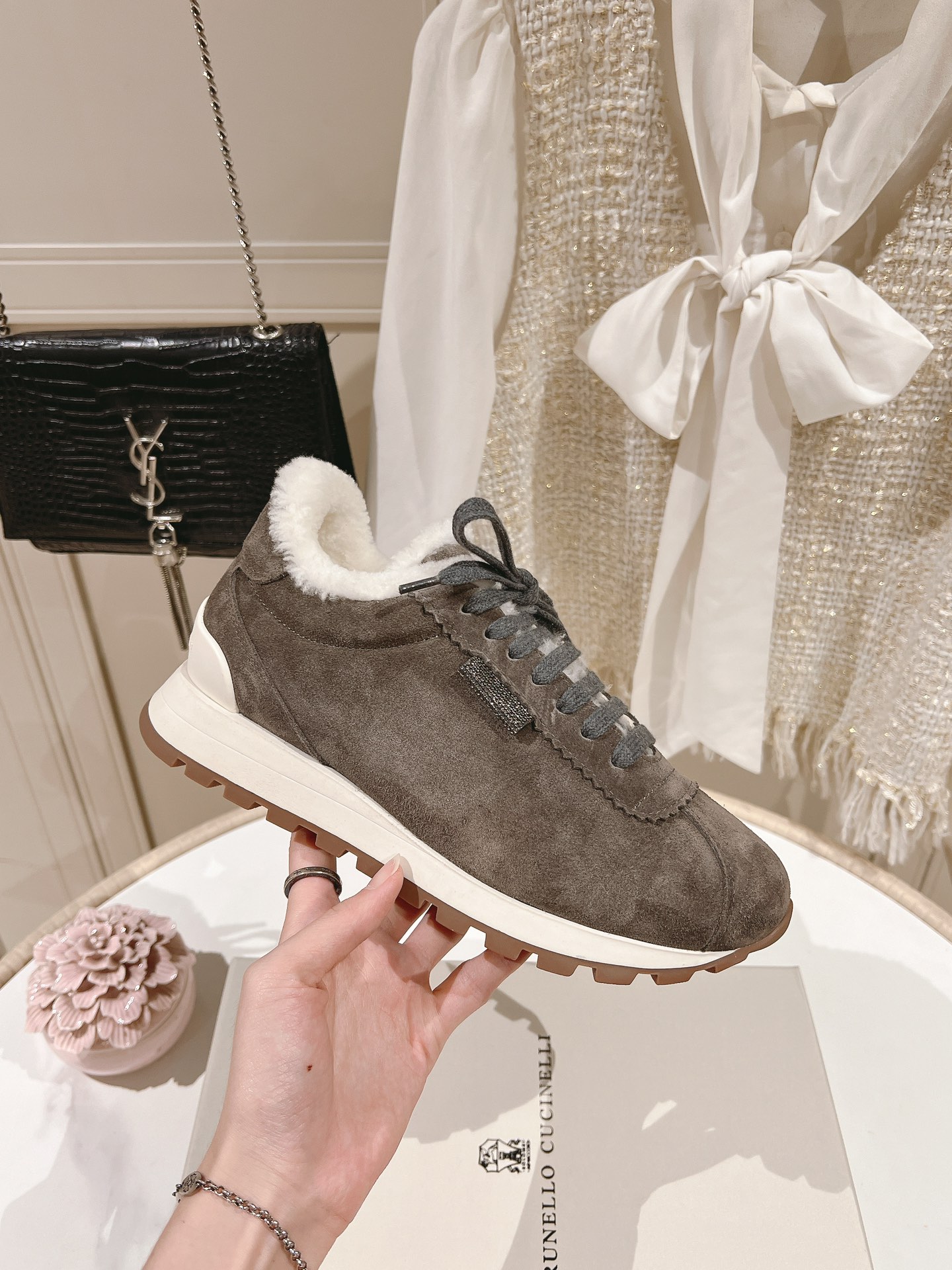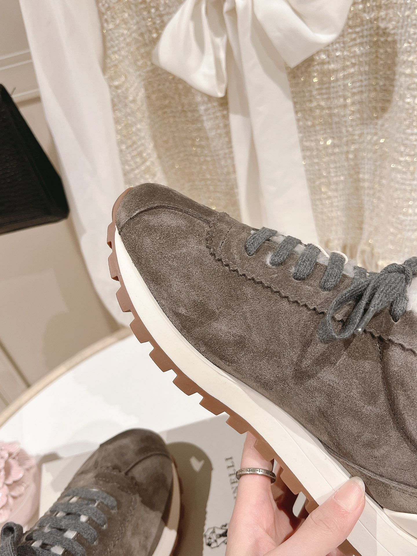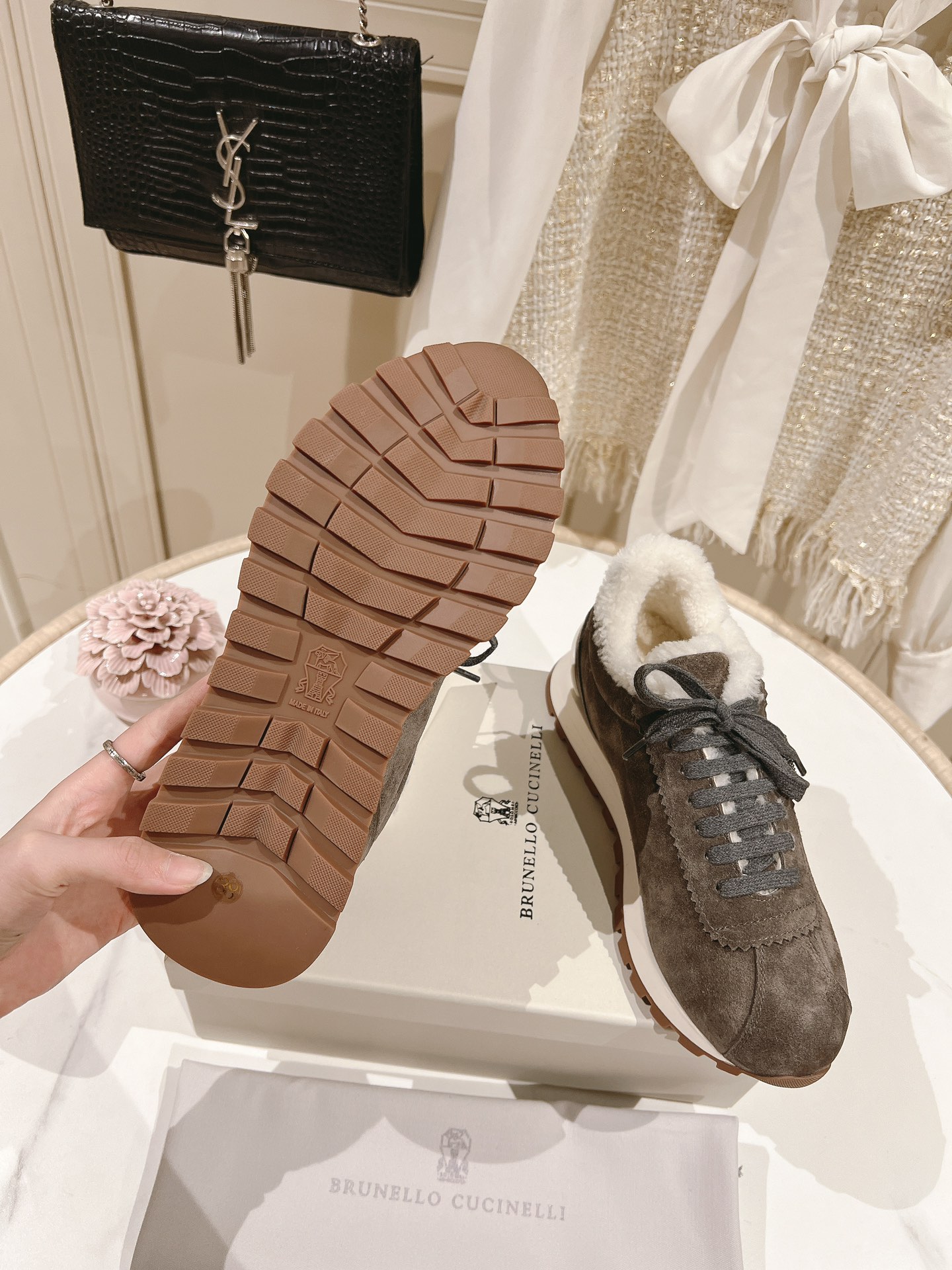 這款鞋子是AAAAA 1:1 質量(非常棒). 使用了和原版一模一樣的材料. 商標部分也保持了和Brunello Cucinelli一樣. 圖片拍攝是實物鞋子拍攝, 您所收到的實物保證和我們圖片一模一樣.
