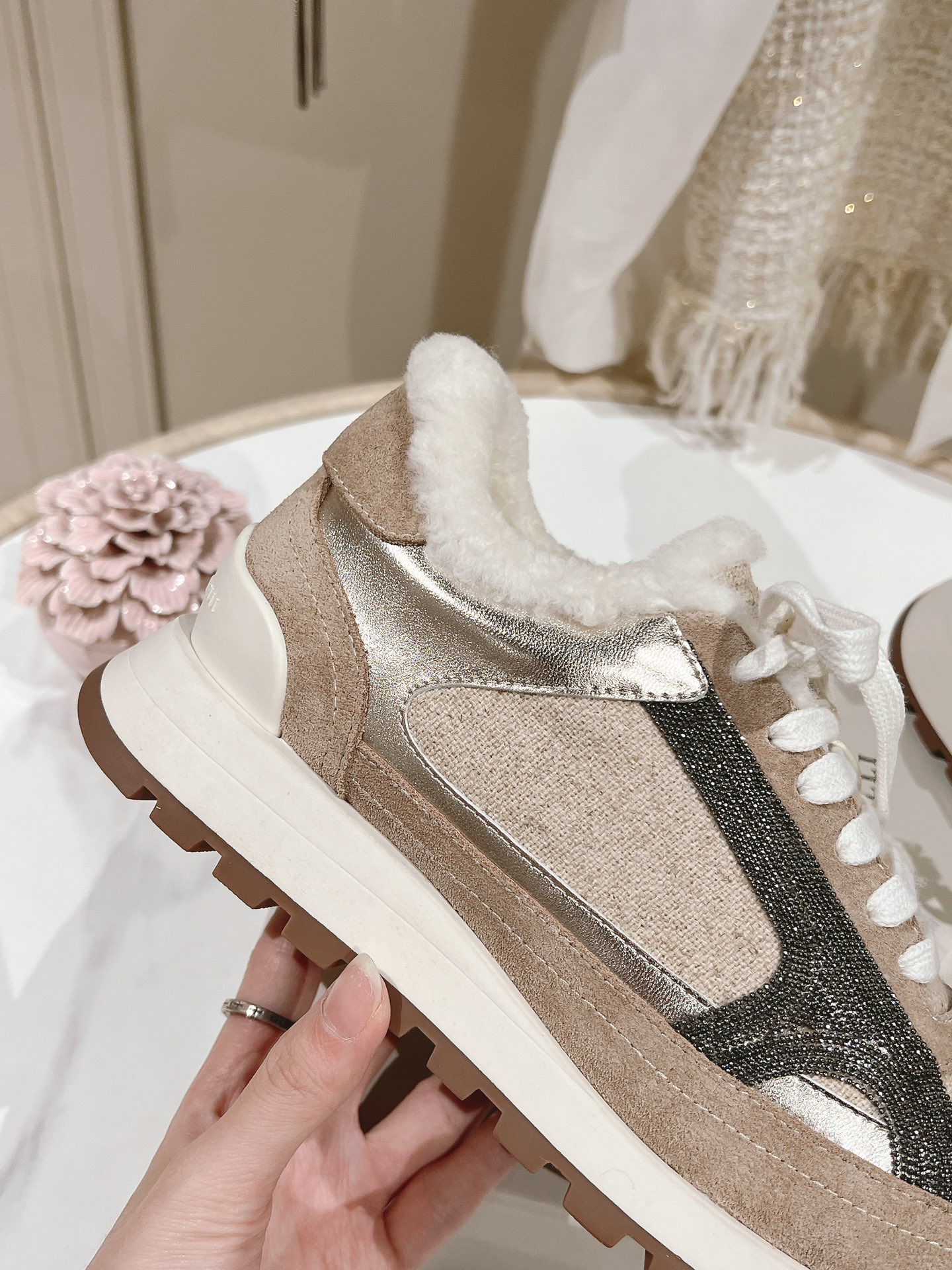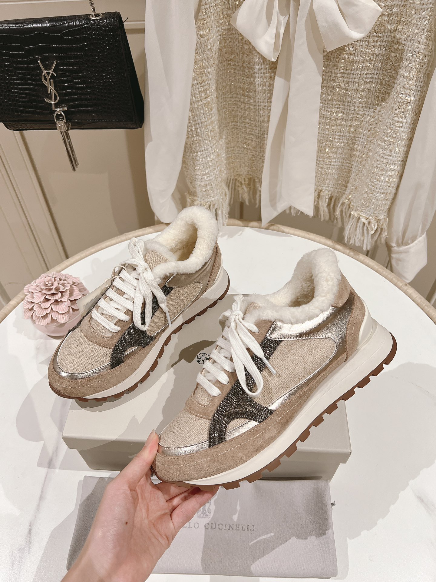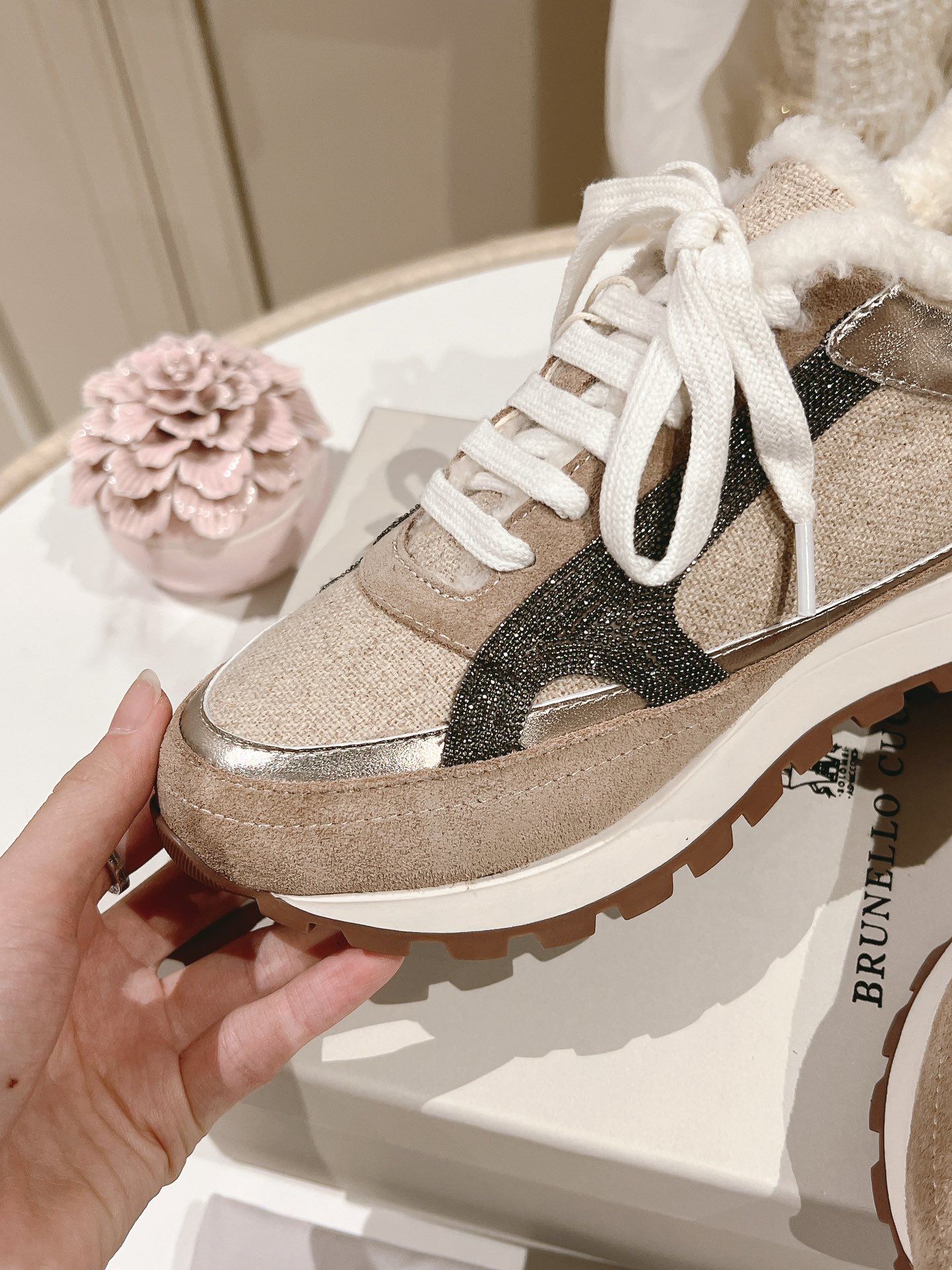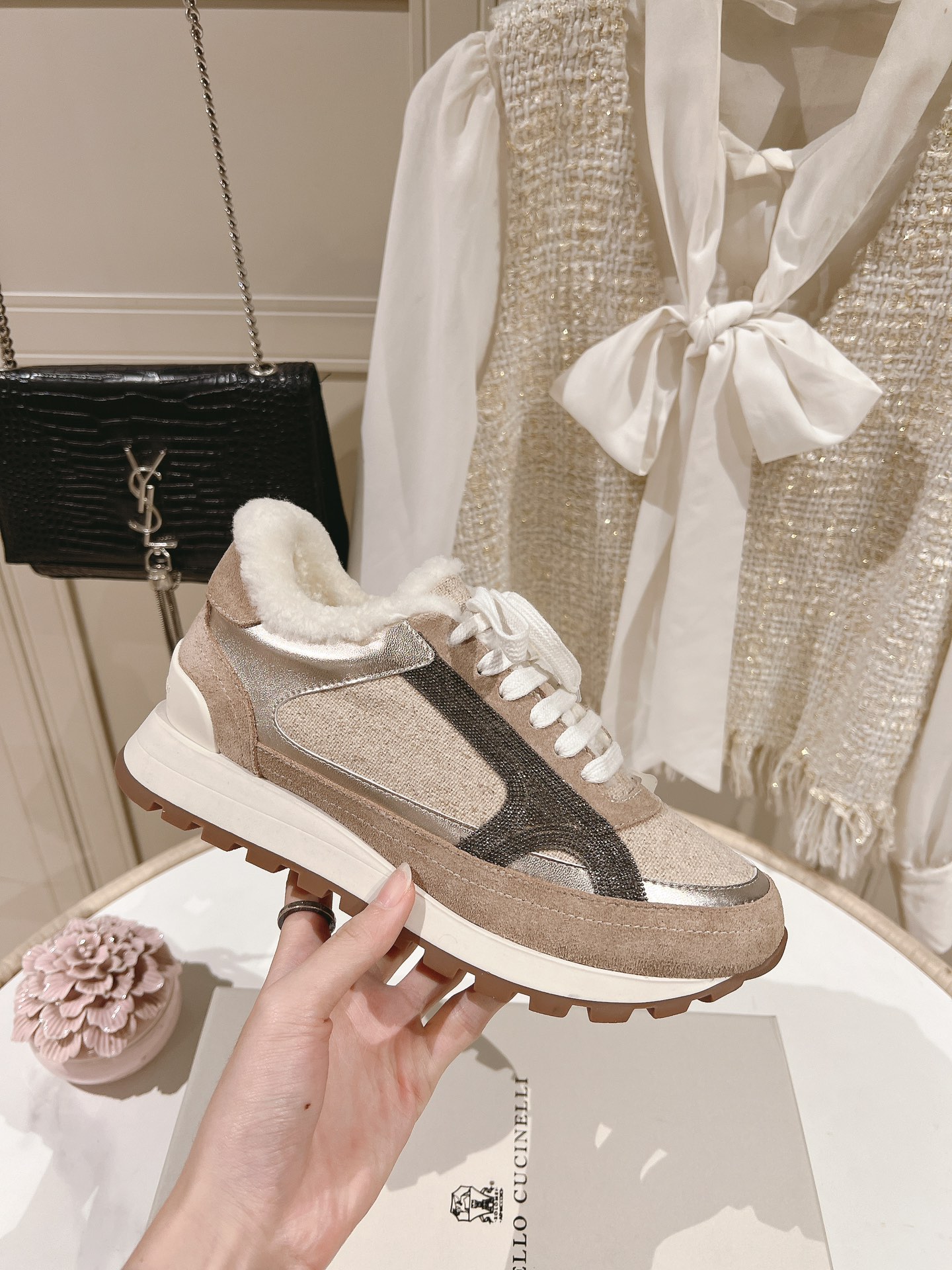 這款鞋子是AAAAA 1:1 質量(非常棒). 使用了和原版一模一樣的材料. 商標部分也保持了和Brunello Cucinelli一樣. 圖片拍攝是實物鞋子拍攝, 您所收到的實物保證和我們圖片一模一樣.