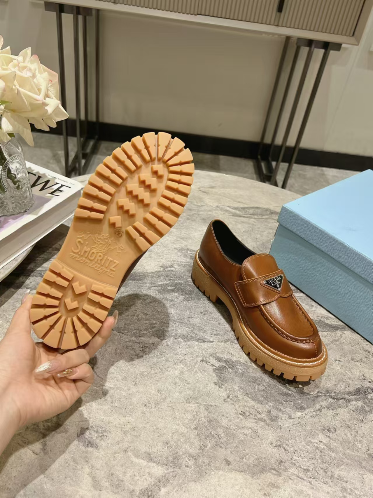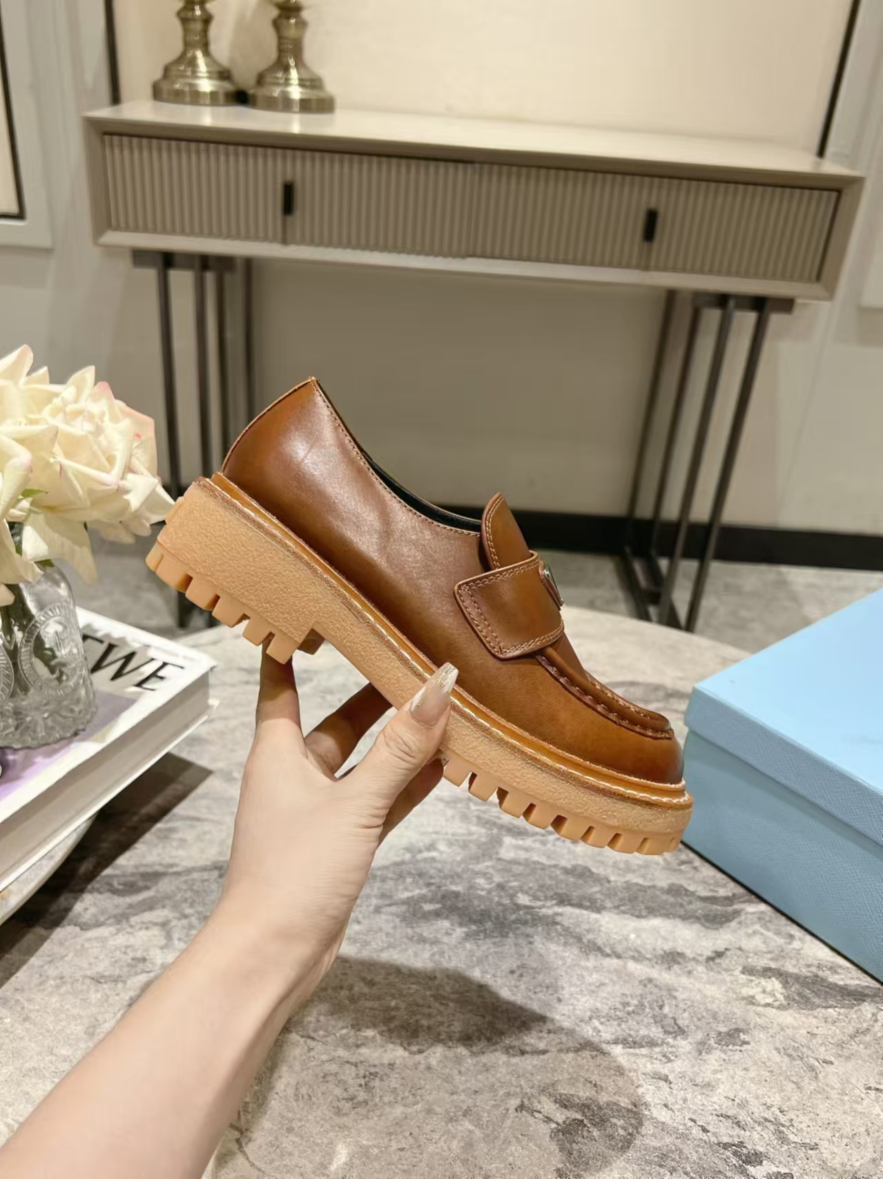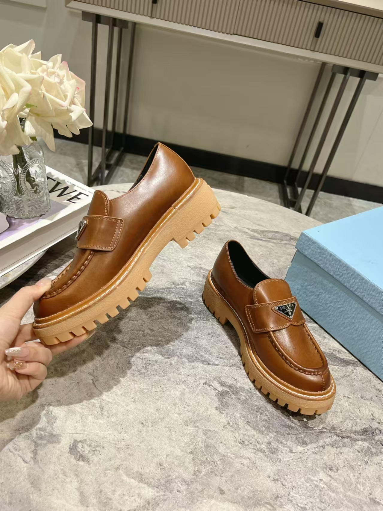 這款鞋子是AAAAA 1:1 質量(非常棒). 使用了和原版一模一樣的材料. 商標部分也保持了和普拉達/Prada一樣. 圖片拍攝是實物鞋子拍攝, 您所收到的實物保證和我們圖片一模一樣.