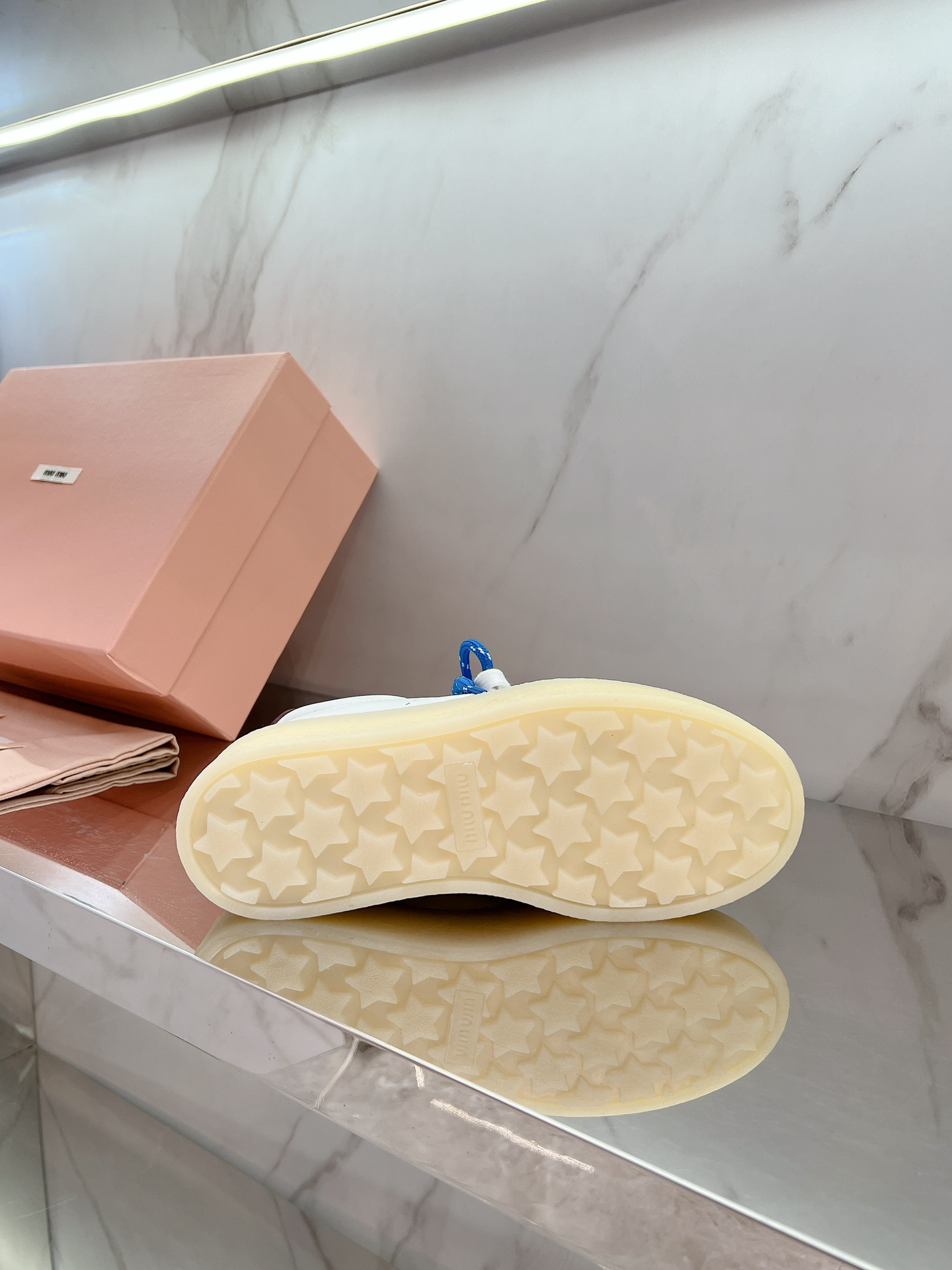 這款鞋子是AAAAA 1:1 質量(非常棒). 使用了和原版一模一樣的材料. 商標部分也保持了和繆繆/Miu Miu一樣. 圖片拍攝是實物鞋子拍攝, 您所收到的實物保證和我們圖片一模一樣.