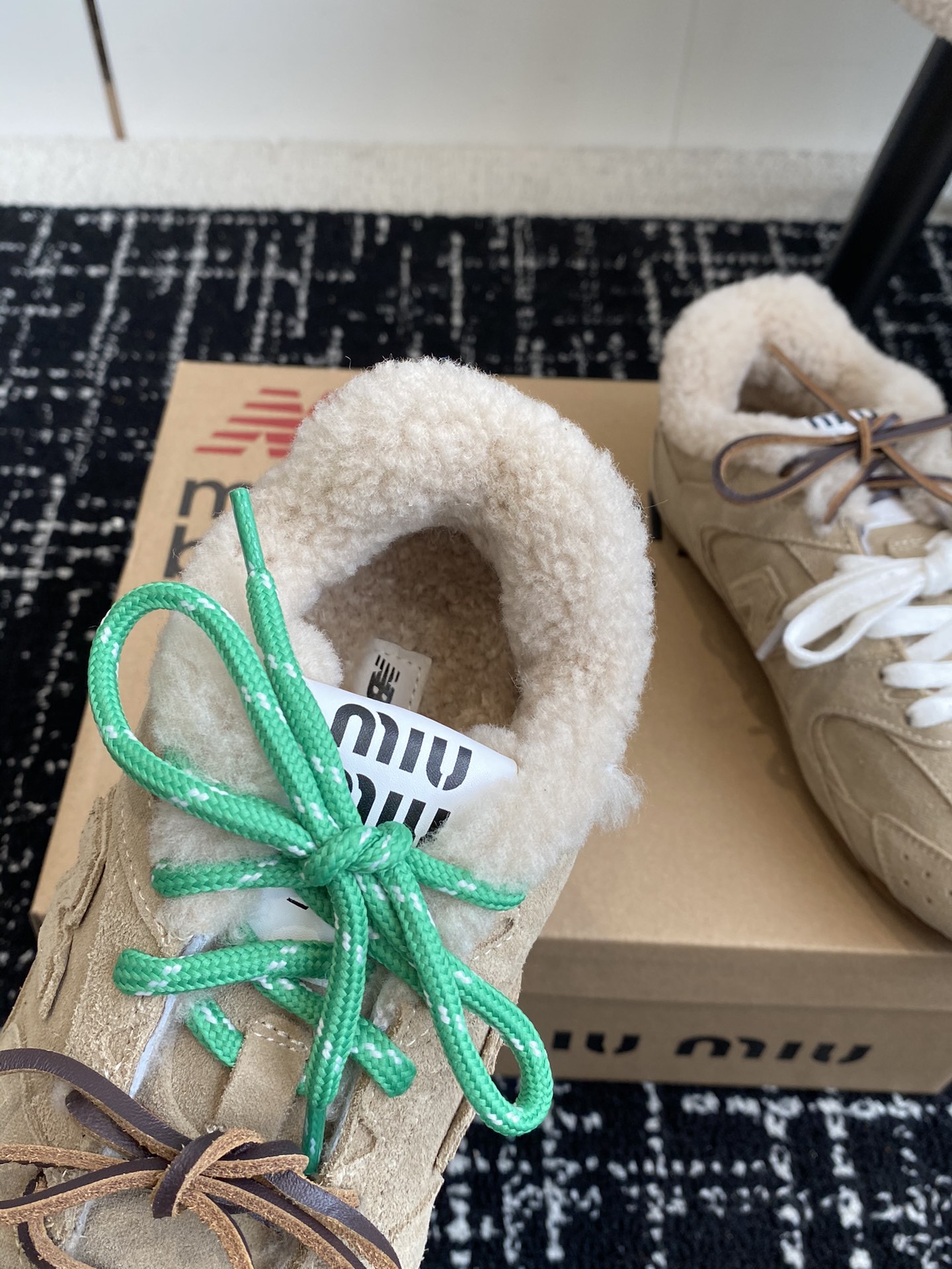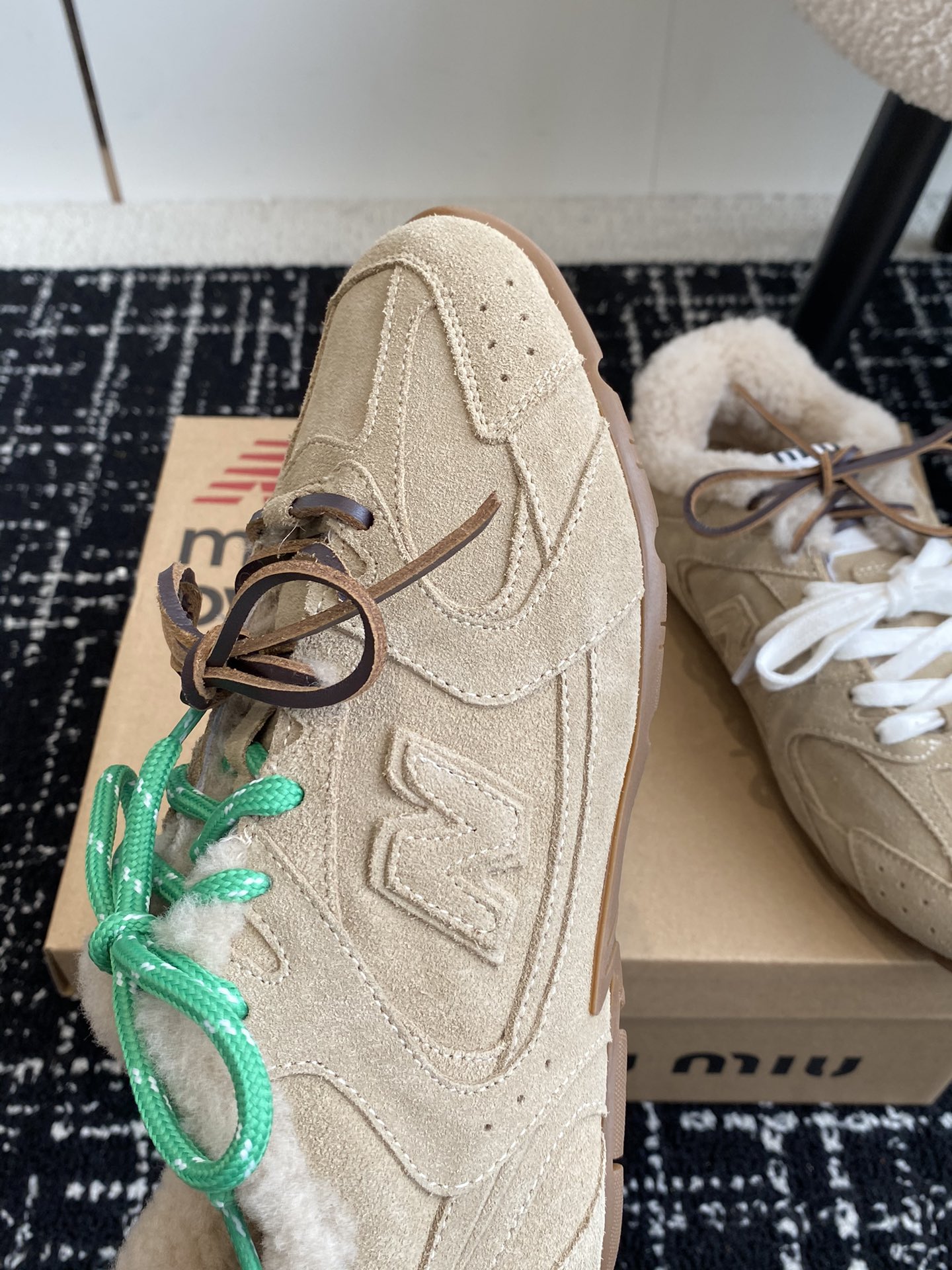 這款鞋子是AAAAA 1:1 質量(非常棒). 使用了和原版一模一樣的材料. 商標部分也保持了和繆繆/Miu Miu一樣. 圖片拍攝是實物鞋子拍攝, 您所收到的實物保證和我們圖片一模一樣.