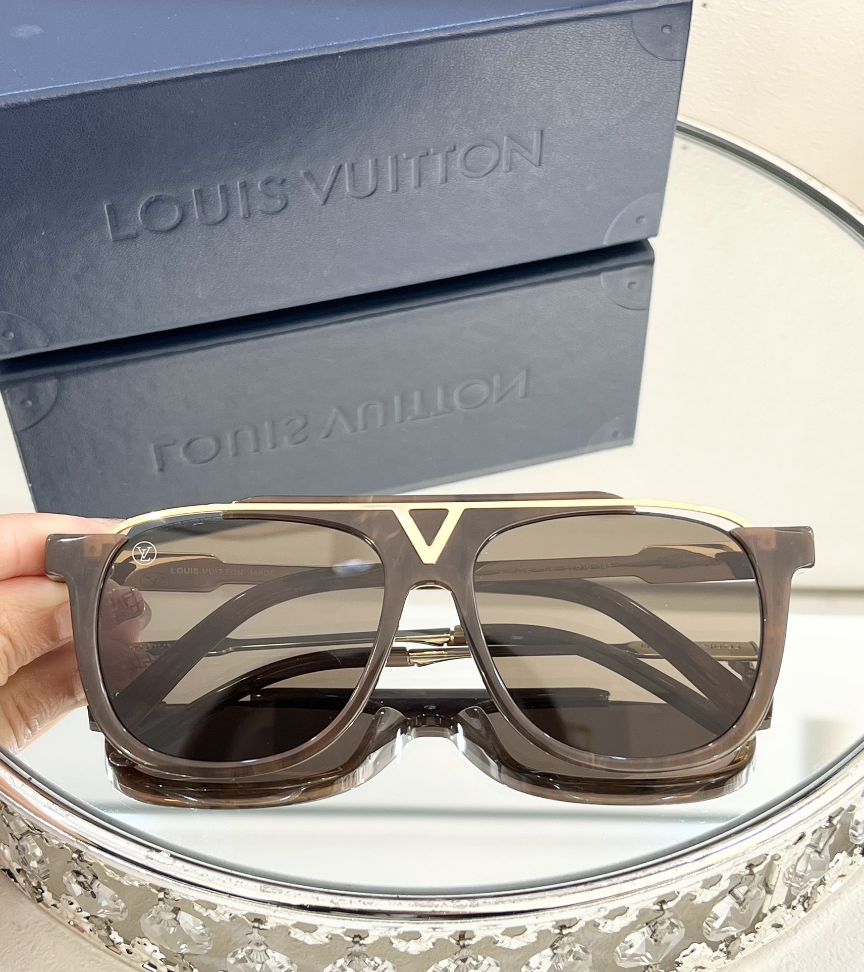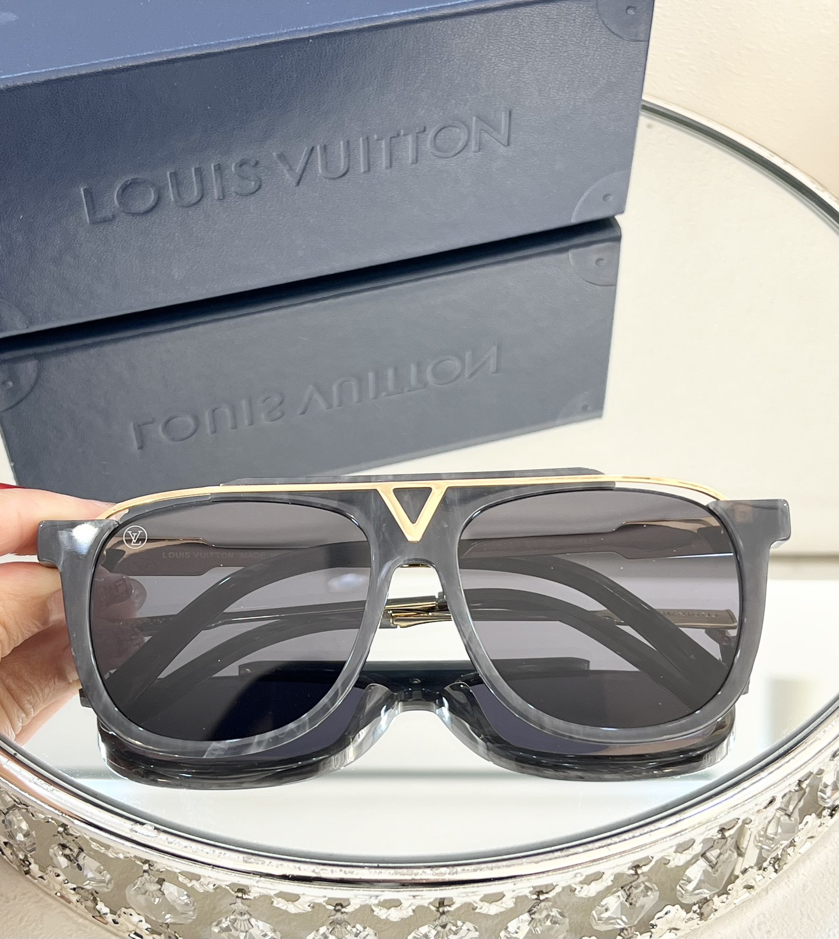 這款太陽眼鏡是AAAAA 1:1 質量(非常棒). 使用了和原版一模一樣的材料. 商標部分也保持了和路易威登/Louis Vuitton一樣. 圖片拍攝是實物太陽眼鏡拍攝, 您所收到的實物保證和我們圖片一模一樣.