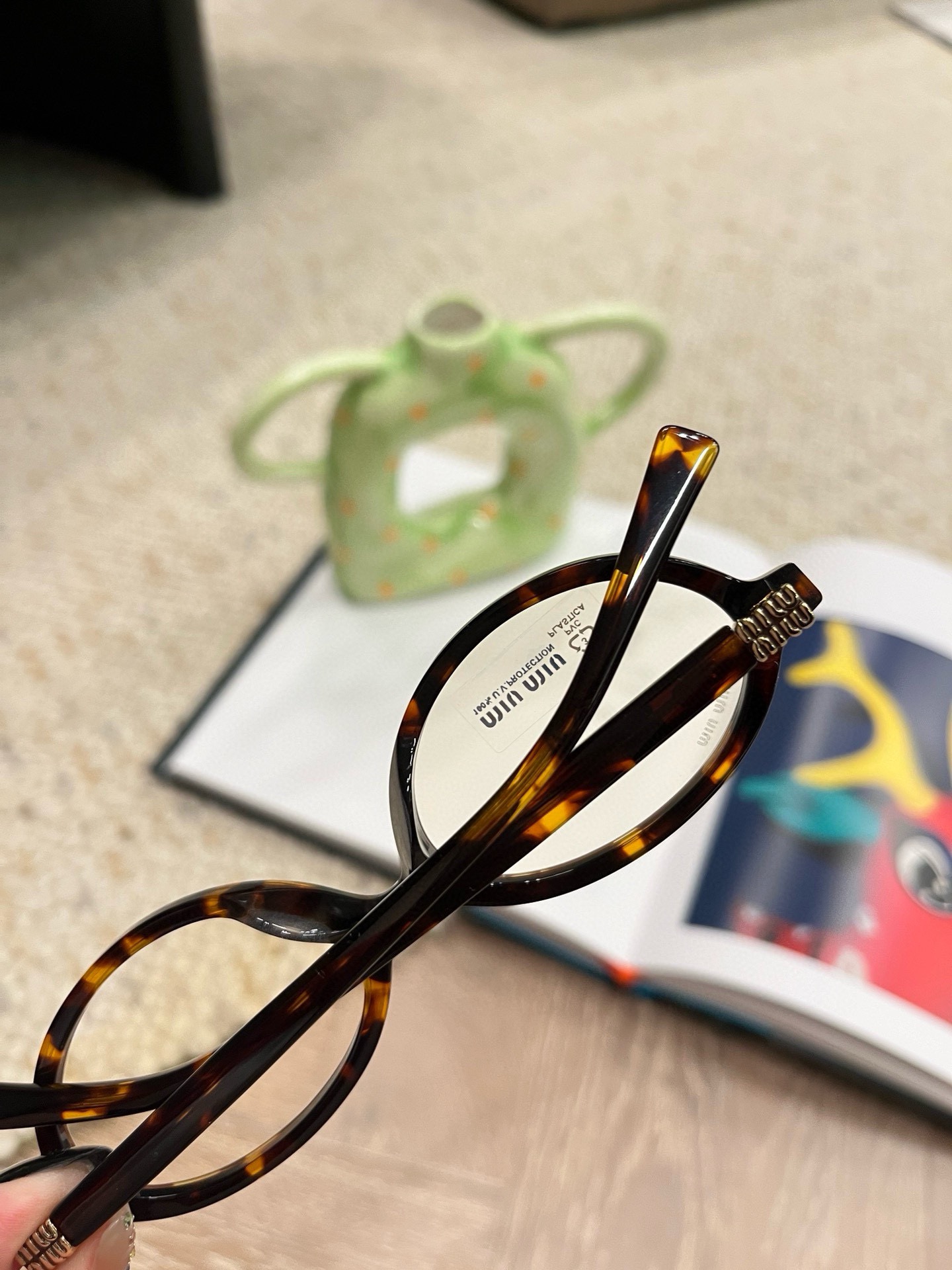 這款太陽眼鏡是AAAAA 1:1 質量(非常棒). 使用了和原版一模一樣的材料. 商標部分也保持了和繆繆/Miu Miu一樣. 圖片拍攝是實物太陽眼鏡拍攝, 您所收到的實物保證和我們圖片一模一樣.