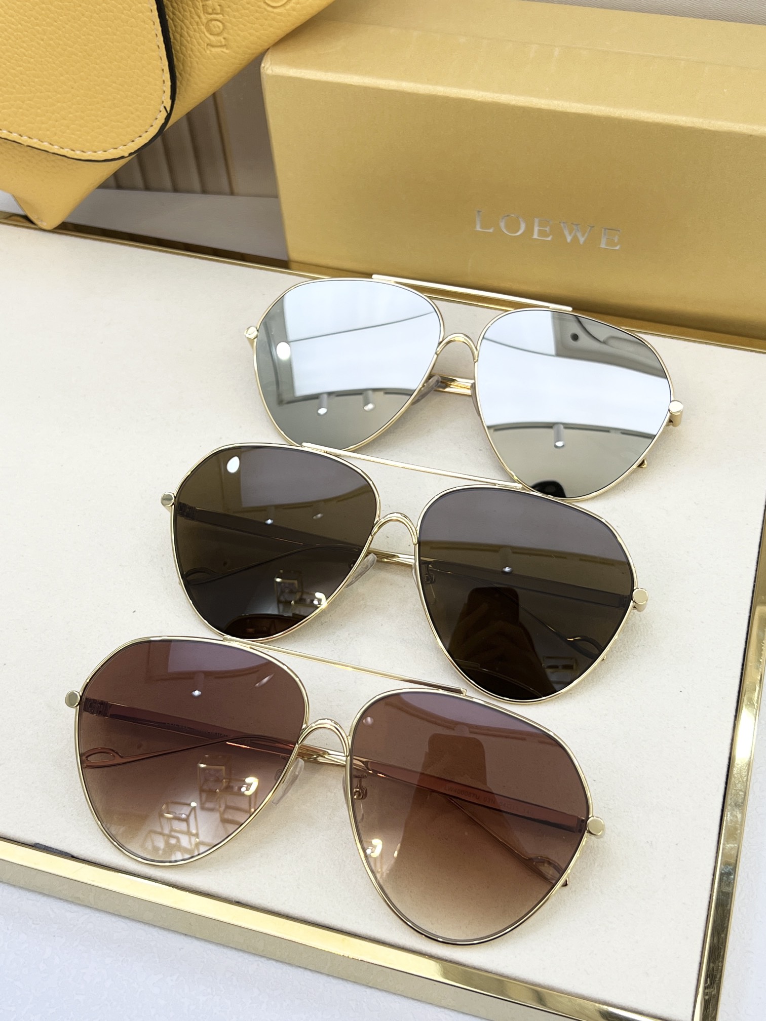 這款太陽眼鏡是AAAAA 1:1 質量(非常棒). 使用了和原版一模一樣的材料. 商標部分也保持了和Loewe一樣. 圖片拍攝是實物太陽眼鏡拍攝, 您所收到的實物保證和我們圖片一模一樣.