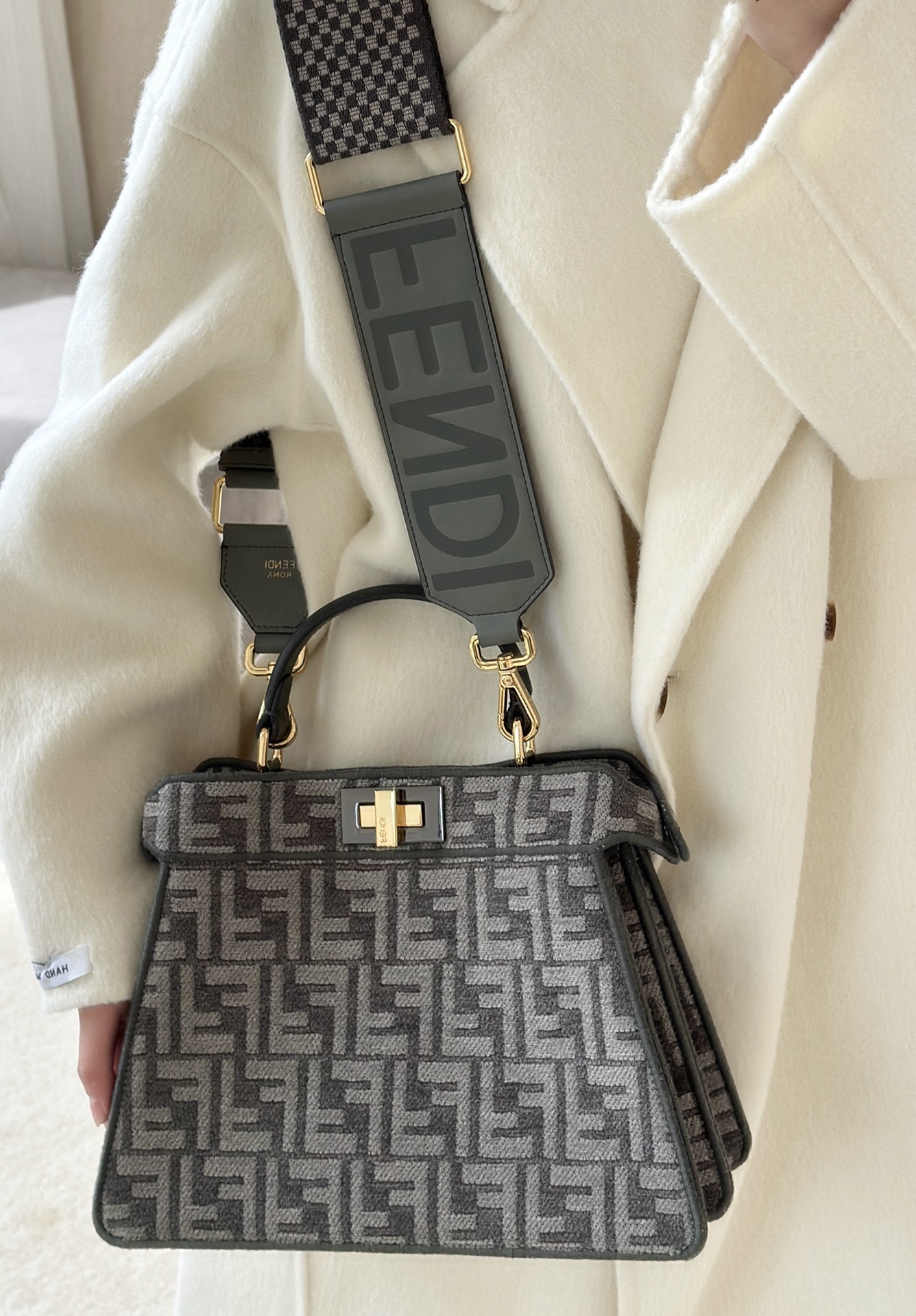 這款包包是AAAAA 1:1 質量(非常棒). 使用了和原版一模一樣的材料. 商標部分也保持了和芬迪/Fendi一樣. 圖片拍攝是實物包包拍攝, 您所收到的實物保證和我們圖片一模一樣.
