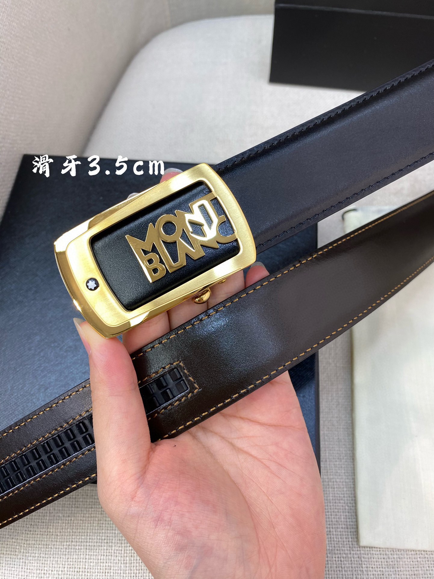 這款皮帶是AAAAA 1:1 質量(非常棒). 使用了和原版一模一樣的材料. 商標部分也保持了和萬寶龍/Montblanc一樣. 圖片拍攝是實物皮帶拍攝, 您所收到的實物保證和我們圖片一模一樣.