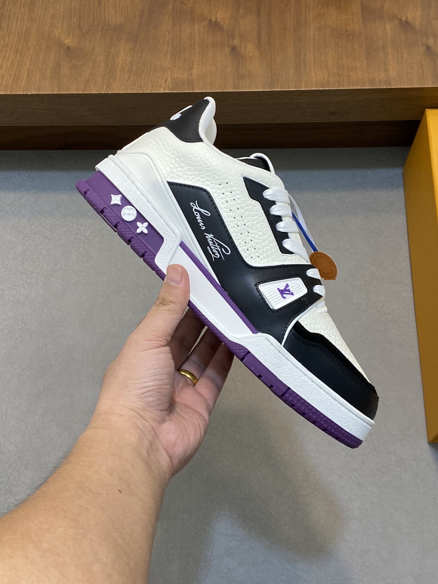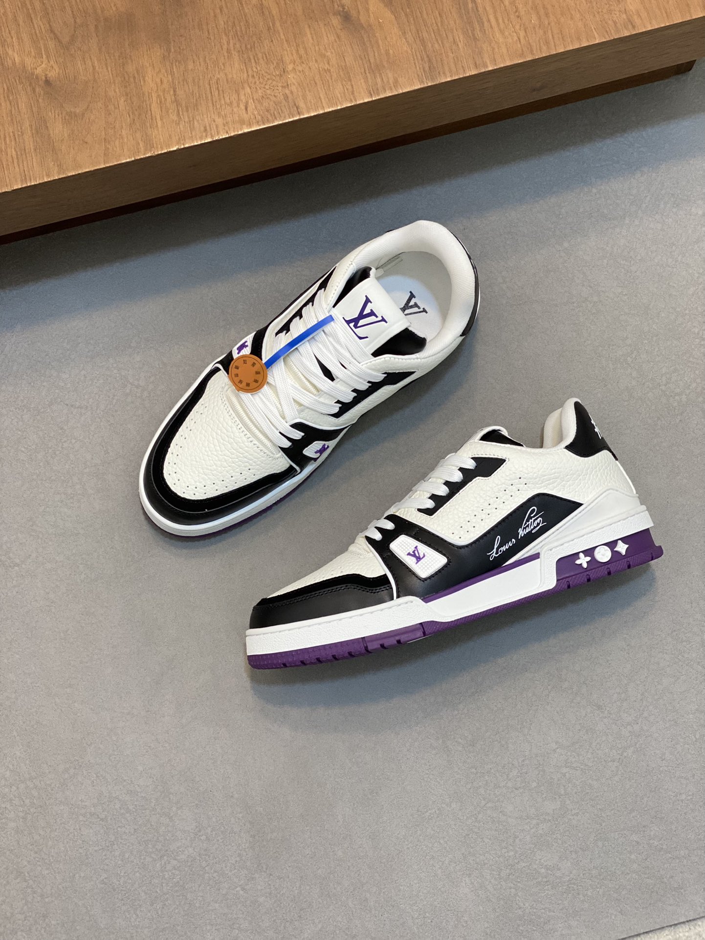這款鞋子是AAAAA 1:1 質量(非常棒). 使用了和原版一模一樣的材料. 商標部分也保持了和路易威登/Louis Vuitton一樣. 圖片拍攝是實物鞋子拍攝, 您所收到的實物保證和我們圖片一模一樣.