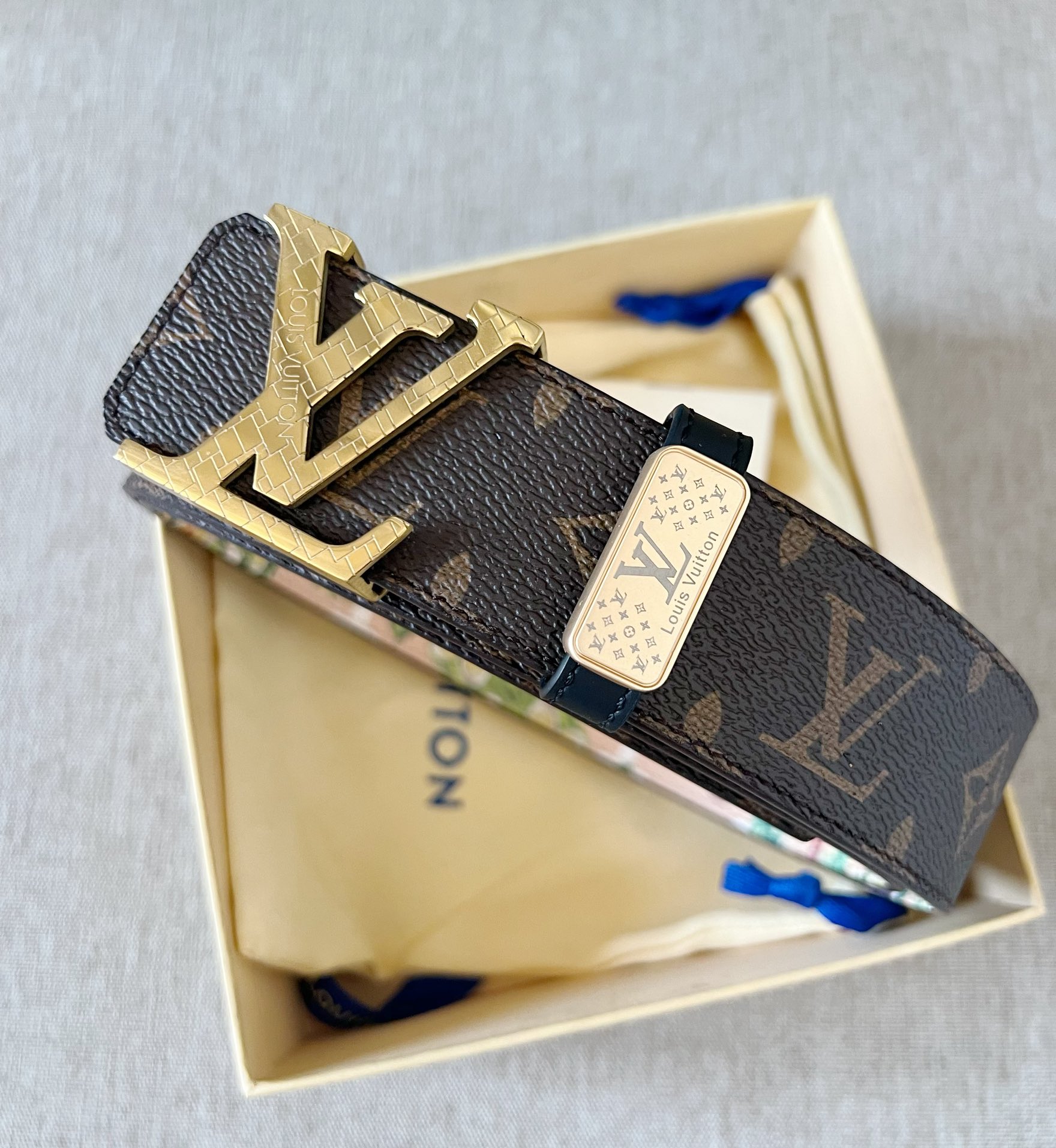 這款皮帶是AAAAA 1:1 質量(非常棒). 使用了和原版一模一樣的材料. 商標部分也保持了和路易威登/Louis Vuitton一樣. 圖片拍攝是實物皮帶拍攝, 您所收到的實物保證和我們圖片一模一樣.