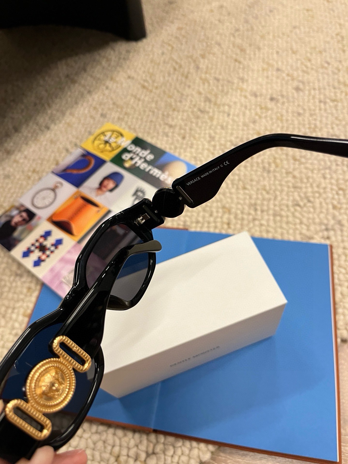 這款太陽眼鏡是AAAAA 1:1 質量(非常棒). 使用了和原版一模一樣的材料. 商標部分也保持了和范思哲/Versace一樣. 圖片拍攝是實物太陽眼鏡拍攝, 您所收到的實物保證和我們圖片一模一樣.