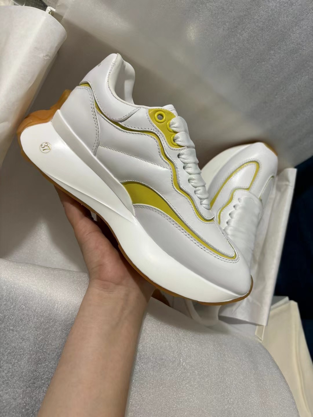 這款鞋子是AAAAA 1:1 質量(非常棒). 使用了和原版一模一樣的材料. 商標部分也保持了和麥奎恩/McQueen一樣. 圖片拍攝是實物鞋子拍攝, 您所收到的實物保證和我們圖片一模一樣.
