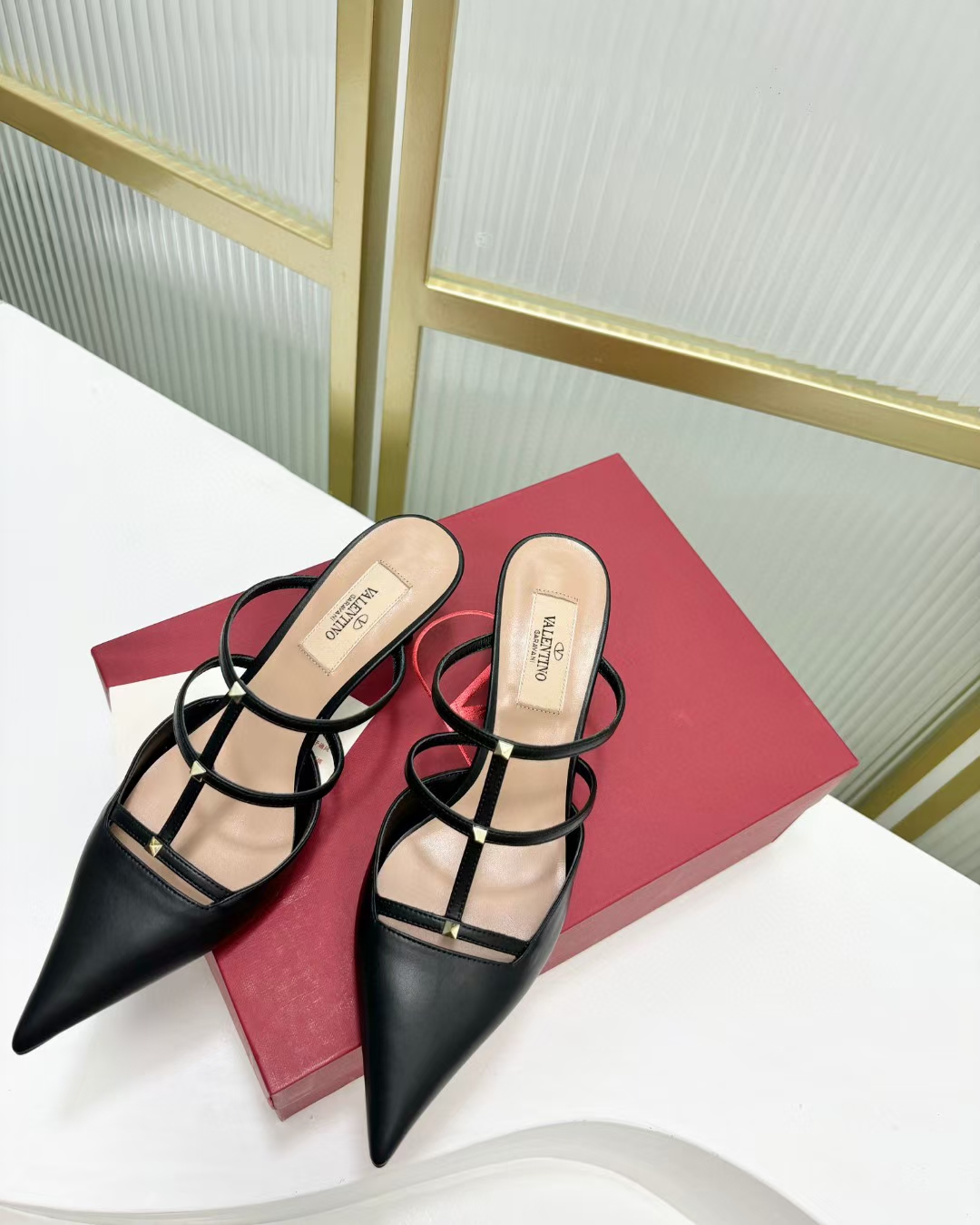 這款鞋子是AAAAA 1:1 質量(非常棒). 使用了和原版一模一樣的材料. 商標部分也保持了和瓦倫蒂諾/Valentino一樣. 圖片拍攝是實物鞋子拍攝, 您所收到的實物保證和我們圖片一模一樣.