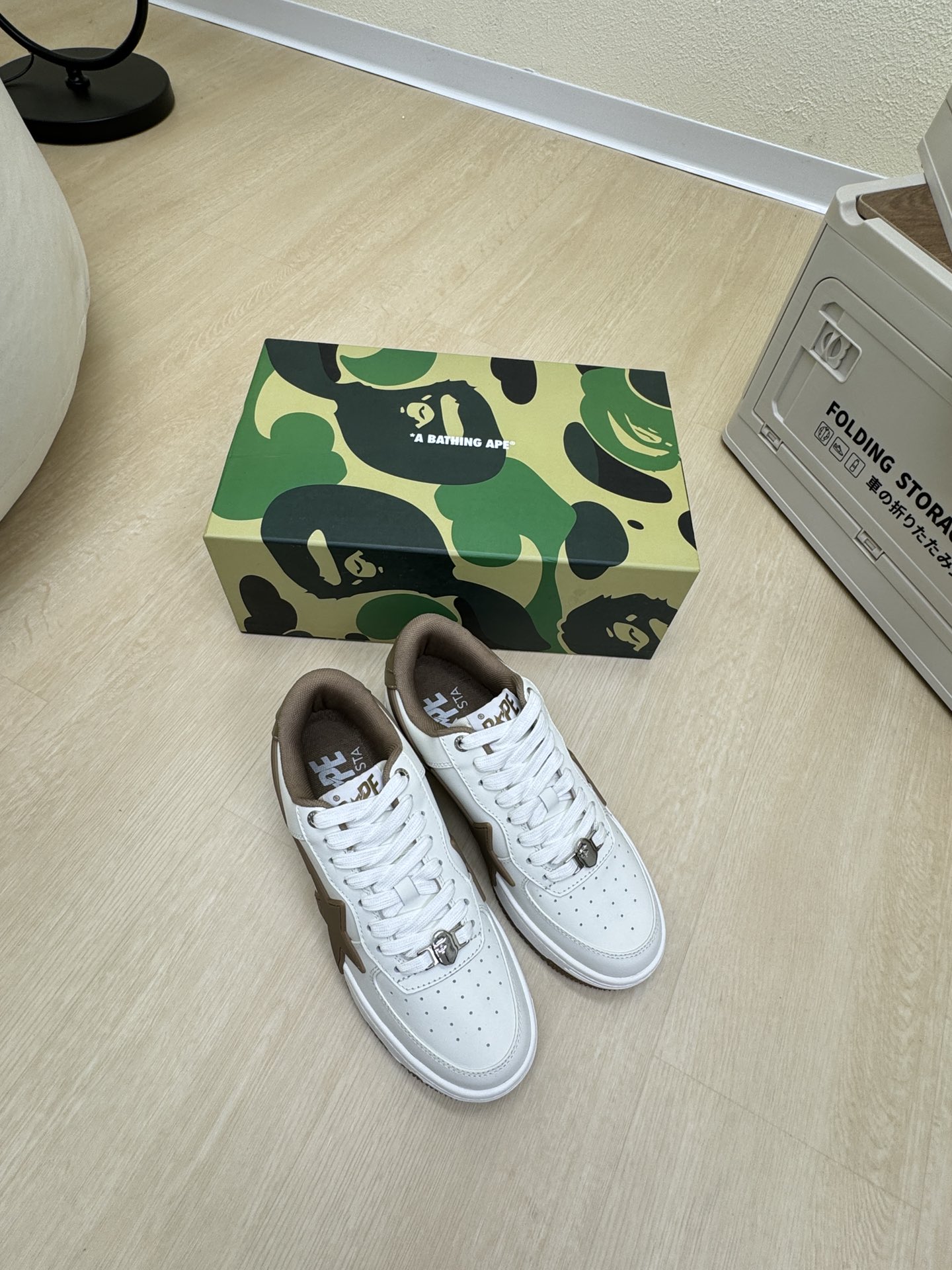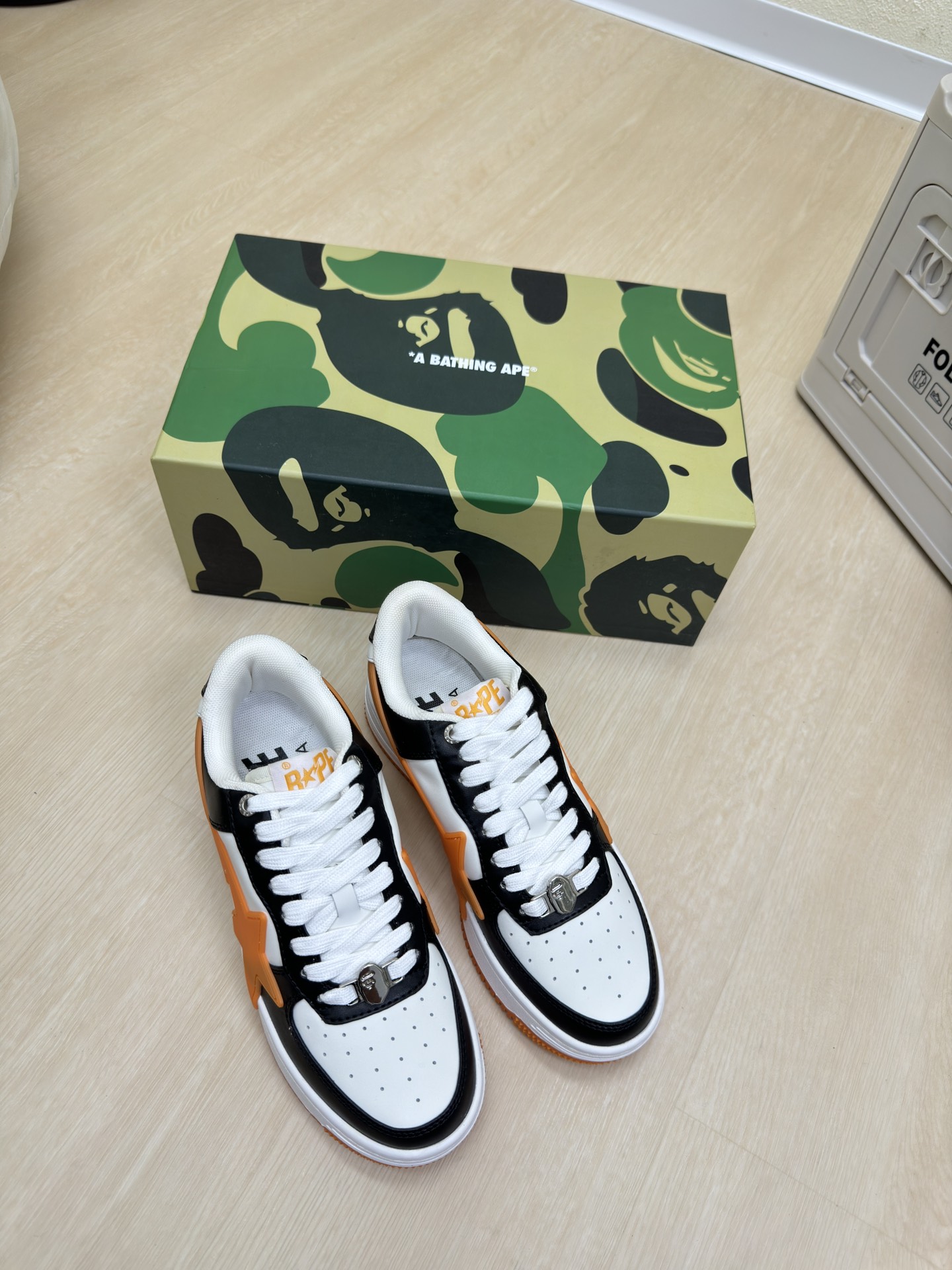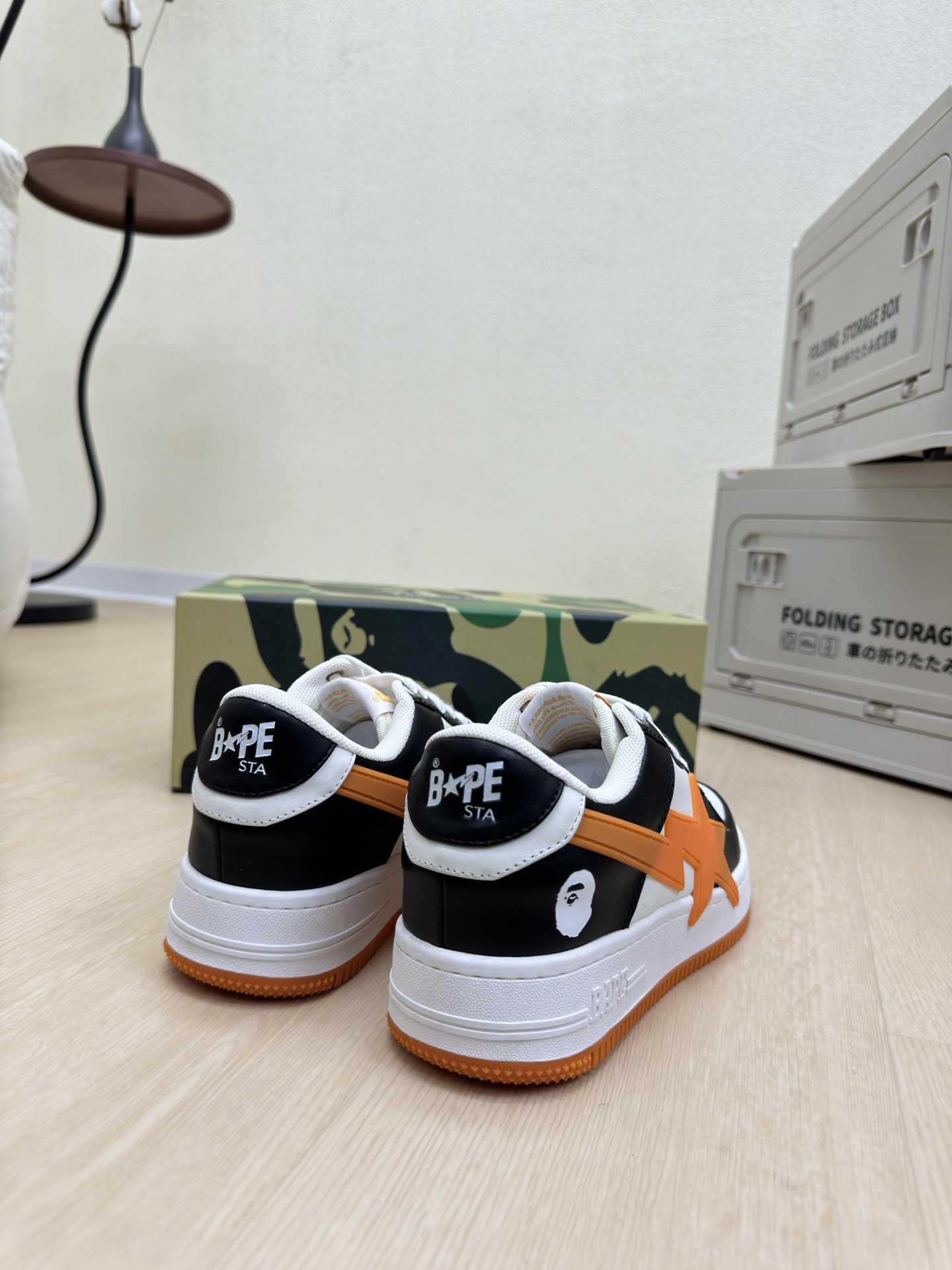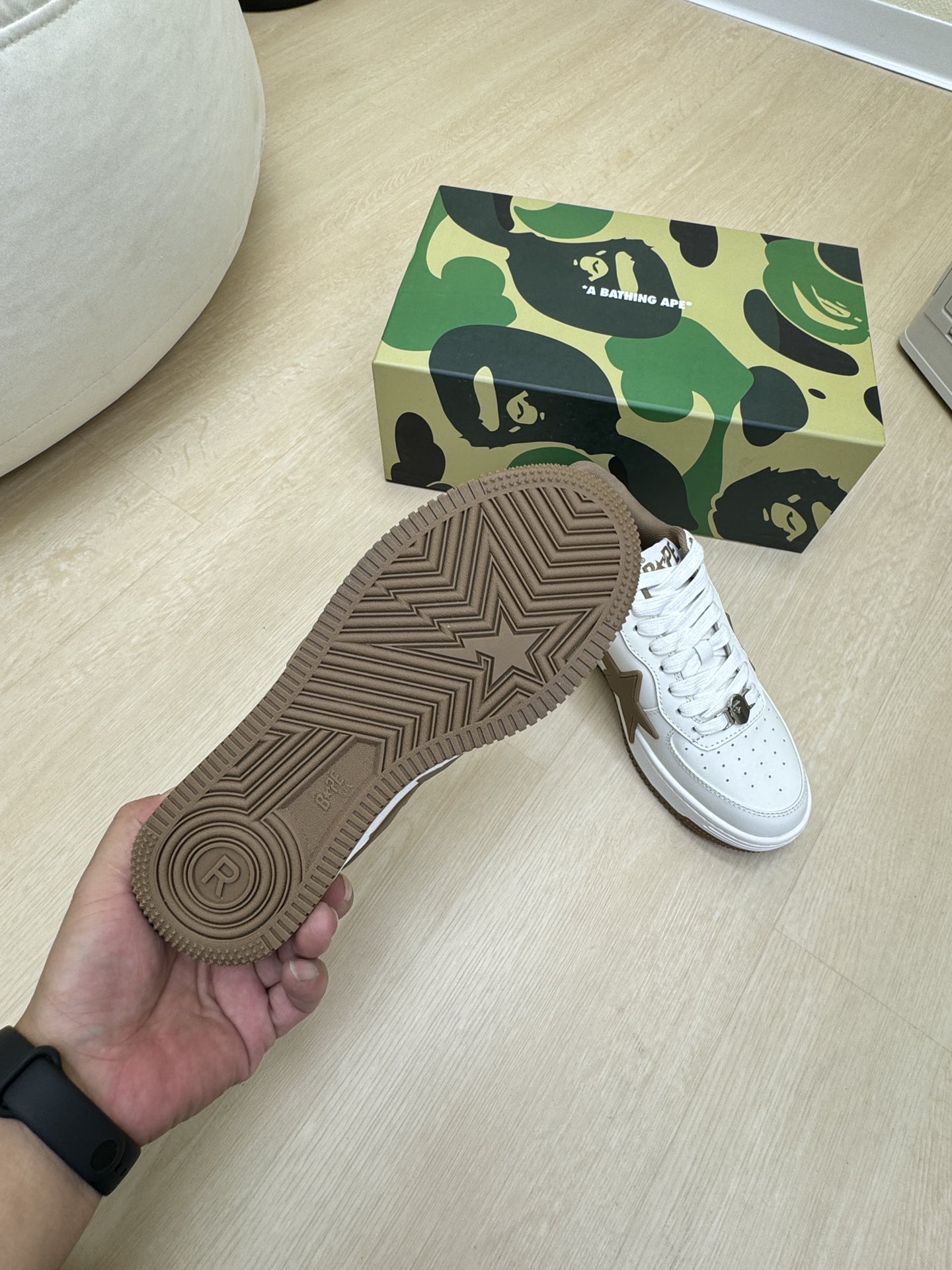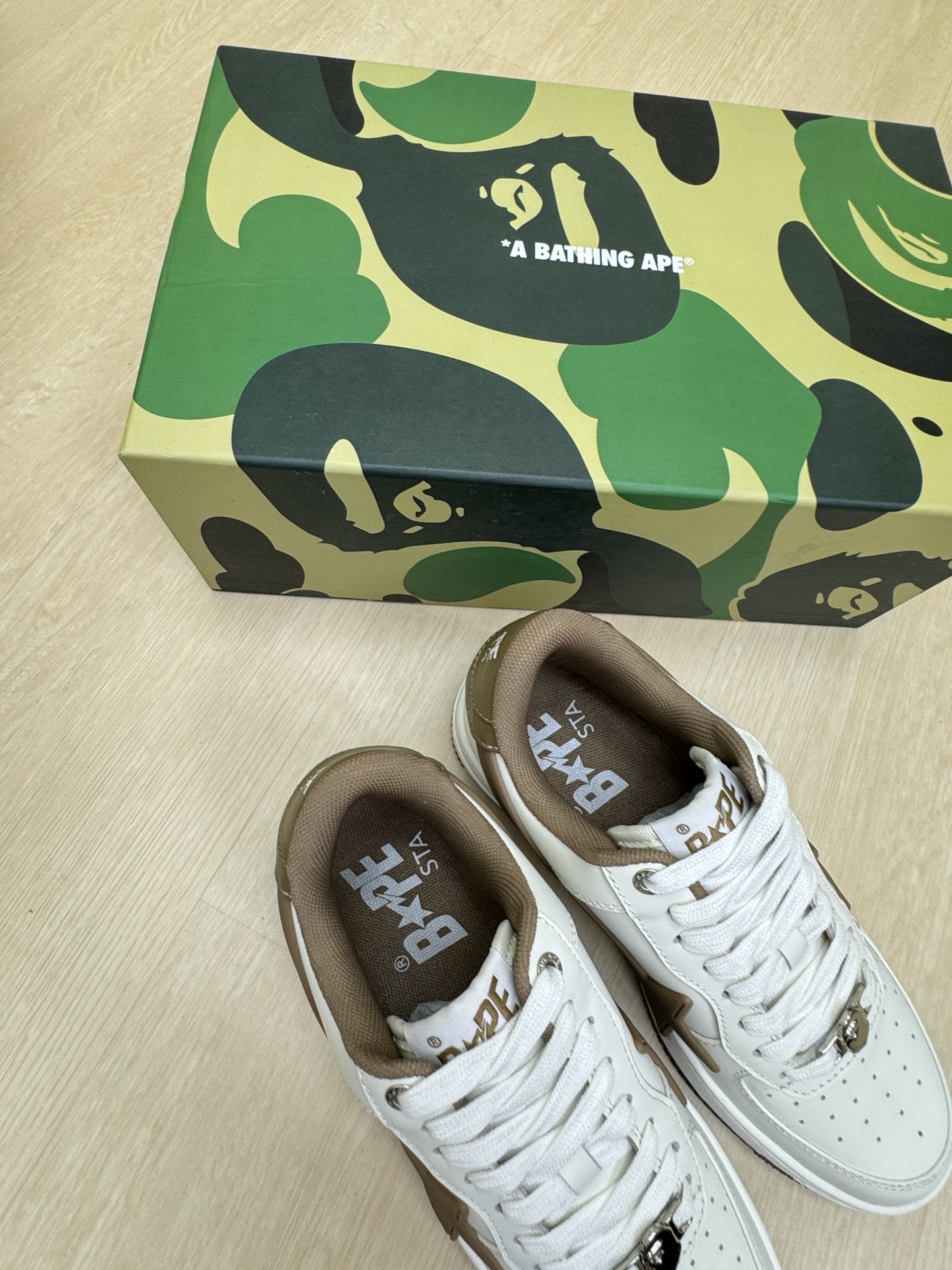 這款鞋子是AAAAA 1:1 質量(非常棒). 使用了和原版一模一樣的材料. 商標部分也保持了和Bape一樣. 圖片拍攝是實物鞋子拍攝, 您所收到的實物保證和我們圖片一模一樣.