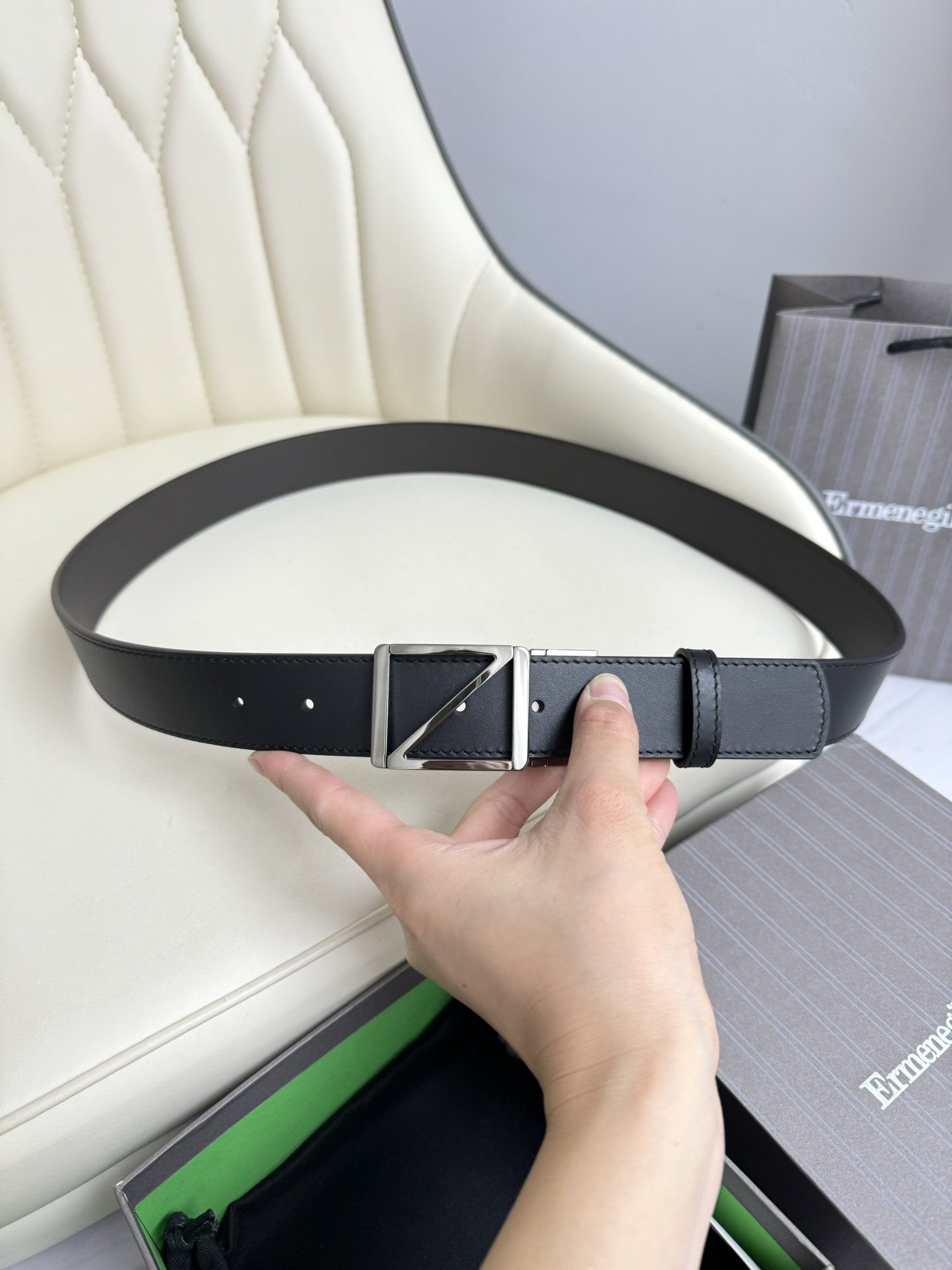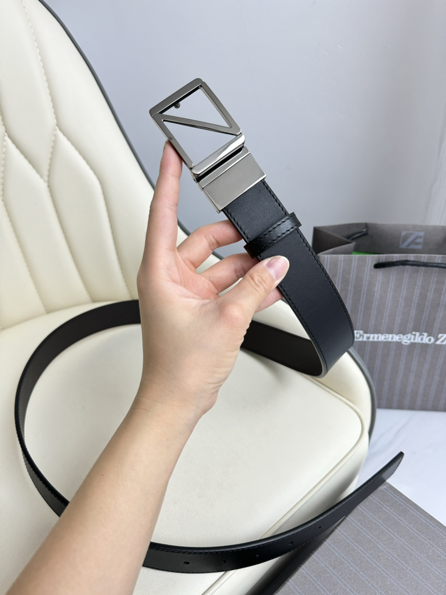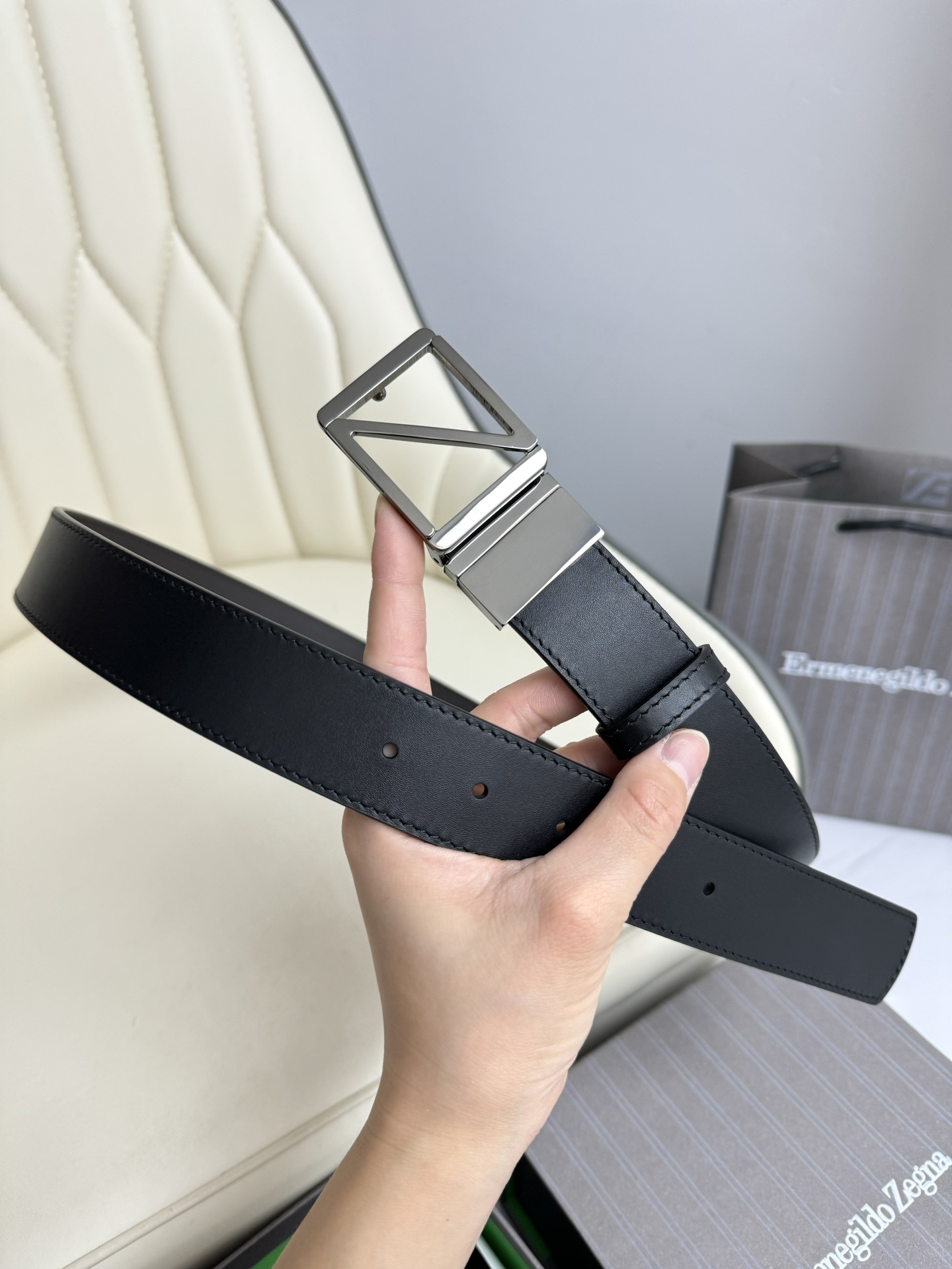 這款皮帶是AAAAA 1:1 質量(非常棒). 使用了和原版一模一樣的材料. 商標部分也保持了和Zegna一樣. 圖片拍攝是實物皮帶拍攝, 您所收到的實物保證和我們圖片一模一樣.