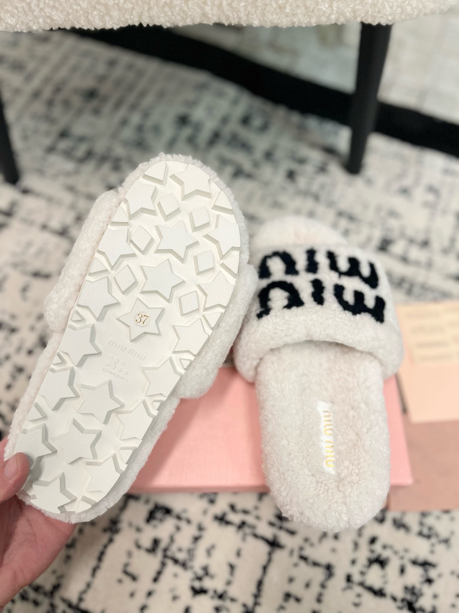 這款鞋子是AAAAA 1:1 質量(非常棒). 使用了和原版一模一樣的材料. 商標部分也保持了和繆繆/Miu Miu一樣. 圖片拍攝是實物鞋子拍攝, 您所收到的實物保證和我們圖片一模一樣.