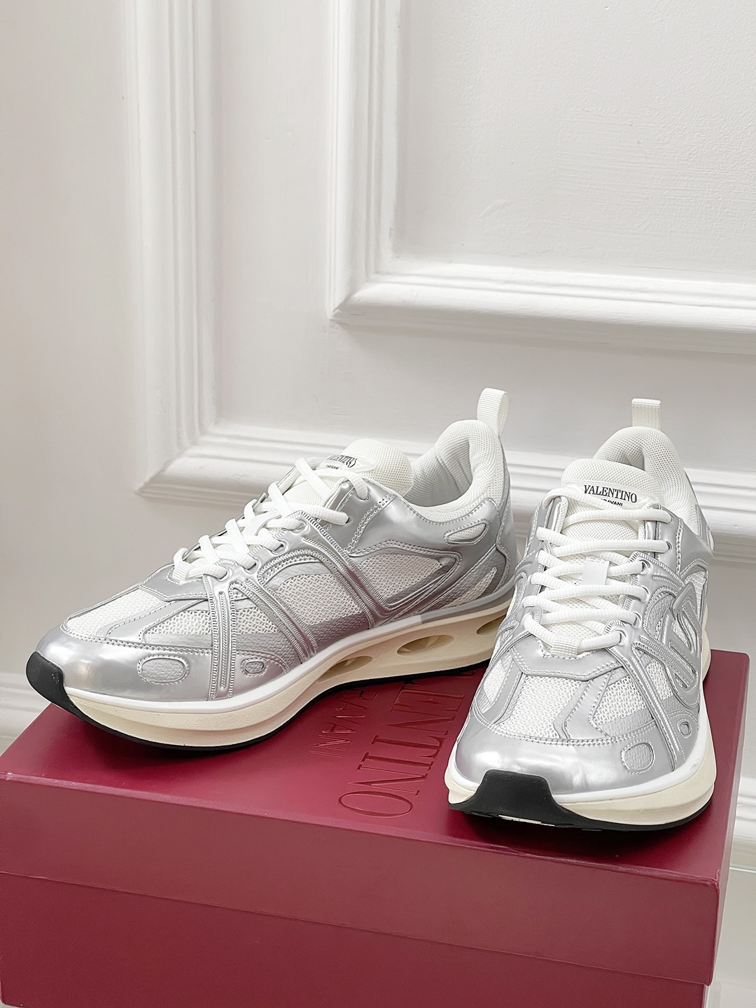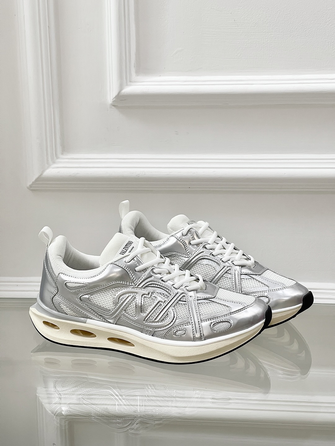 這款鞋子是AAAAA 1:1 質量(非常棒). 使用了和原版一模一樣的材料. 商標部分也保持了和瓦倫蒂諾/Valentino一樣. 圖片拍攝是實物鞋子拍攝, 您所收到的實物保證和我們圖片一模一樣.