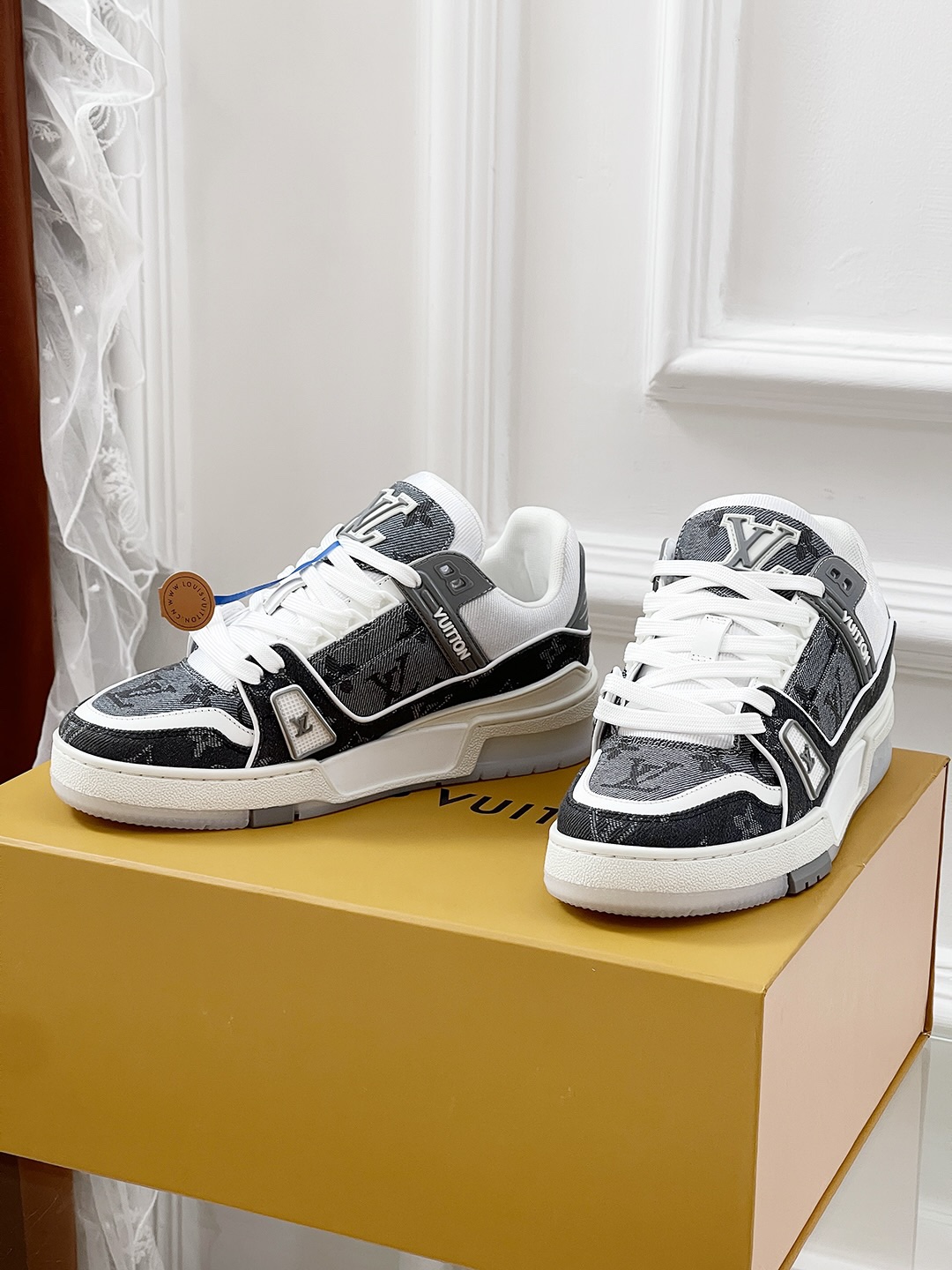 這款鞋子是AAAAA 1:1 質量(非常棒). 使用了和原版一模一樣的材料. 商標部分也保持了和路易威登/Louis Vuitton一樣. 圖片拍攝是實物鞋子拍攝, 您所收到的實物保證和我們圖片一模一樣.