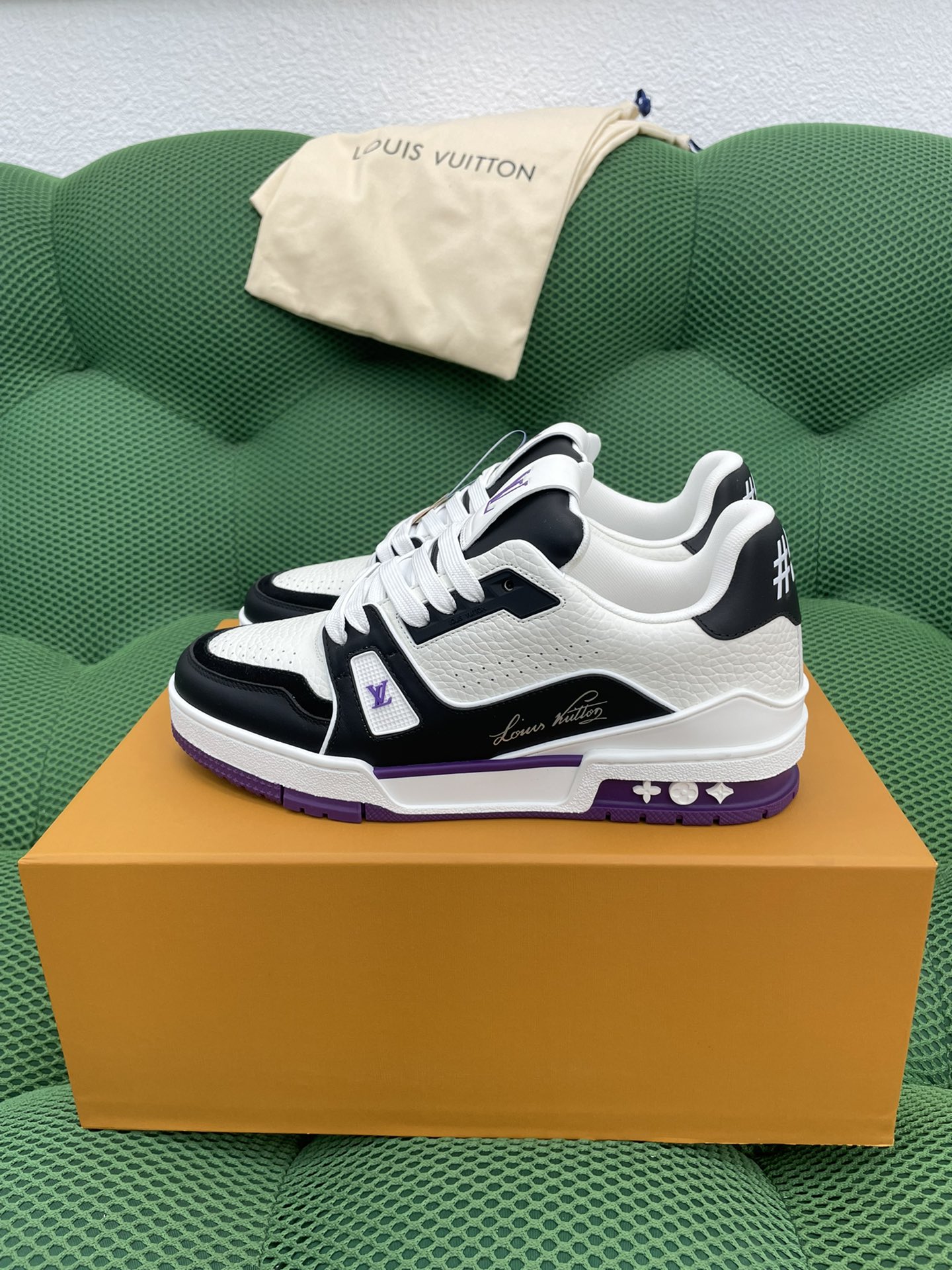 這款鞋子是AAAAA 1:1 質量(非常棒). 使用了和原版一模一樣的材料. 商標部分也保持了和路易威登/Louis Vuitton一樣. 圖片拍攝是實物鞋子拍攝, 您所收到的實物保證和我們圖片一模一樣.