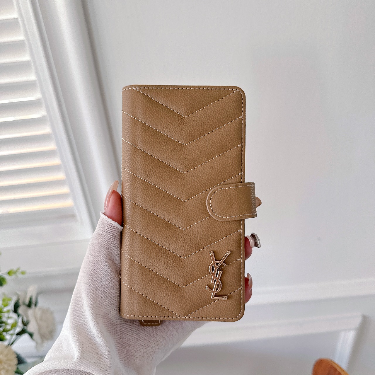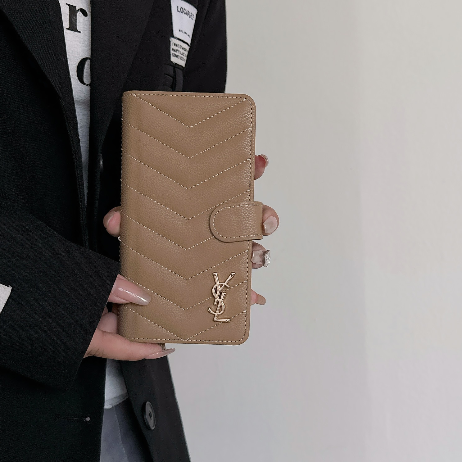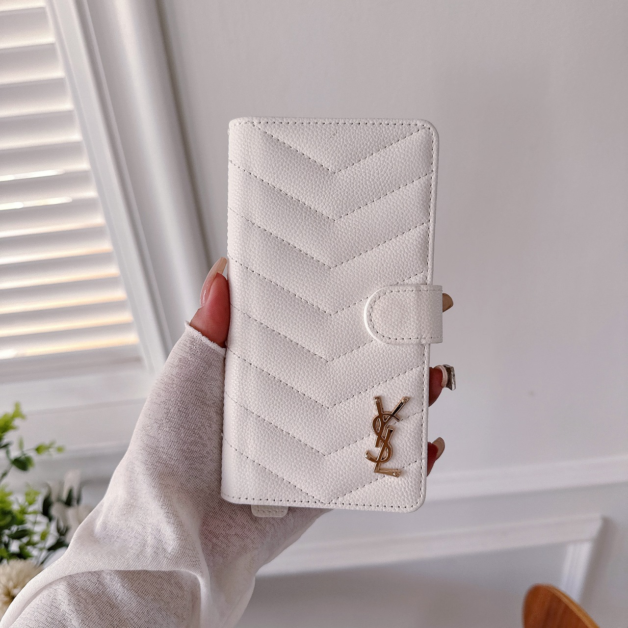 這款手機外殼是AAAAA 1:1 質量(非常棒). 使用了和原版一模一樣的材料. 商標部分也保持了和聖羅蘭/Saint Laurent一樣. 圖片拍攝是實物手機外殼拍攝, 您所收到的實物保證和我們圖片一模一樣.