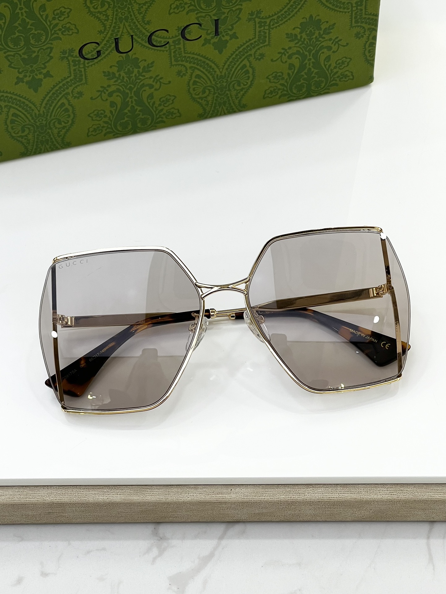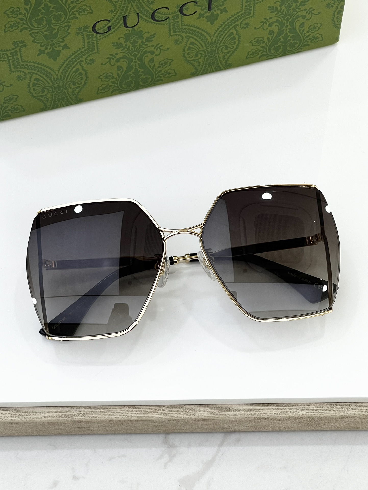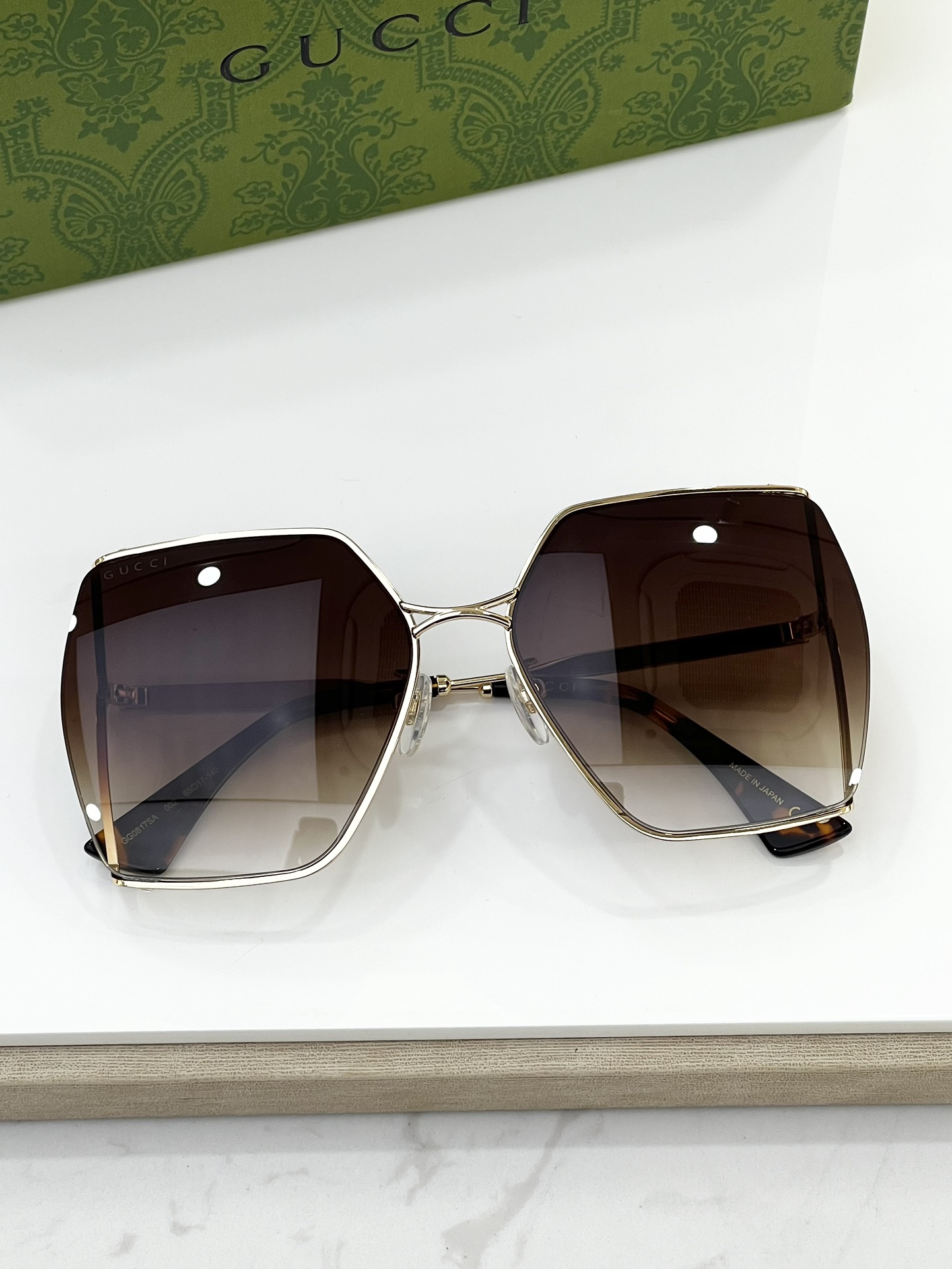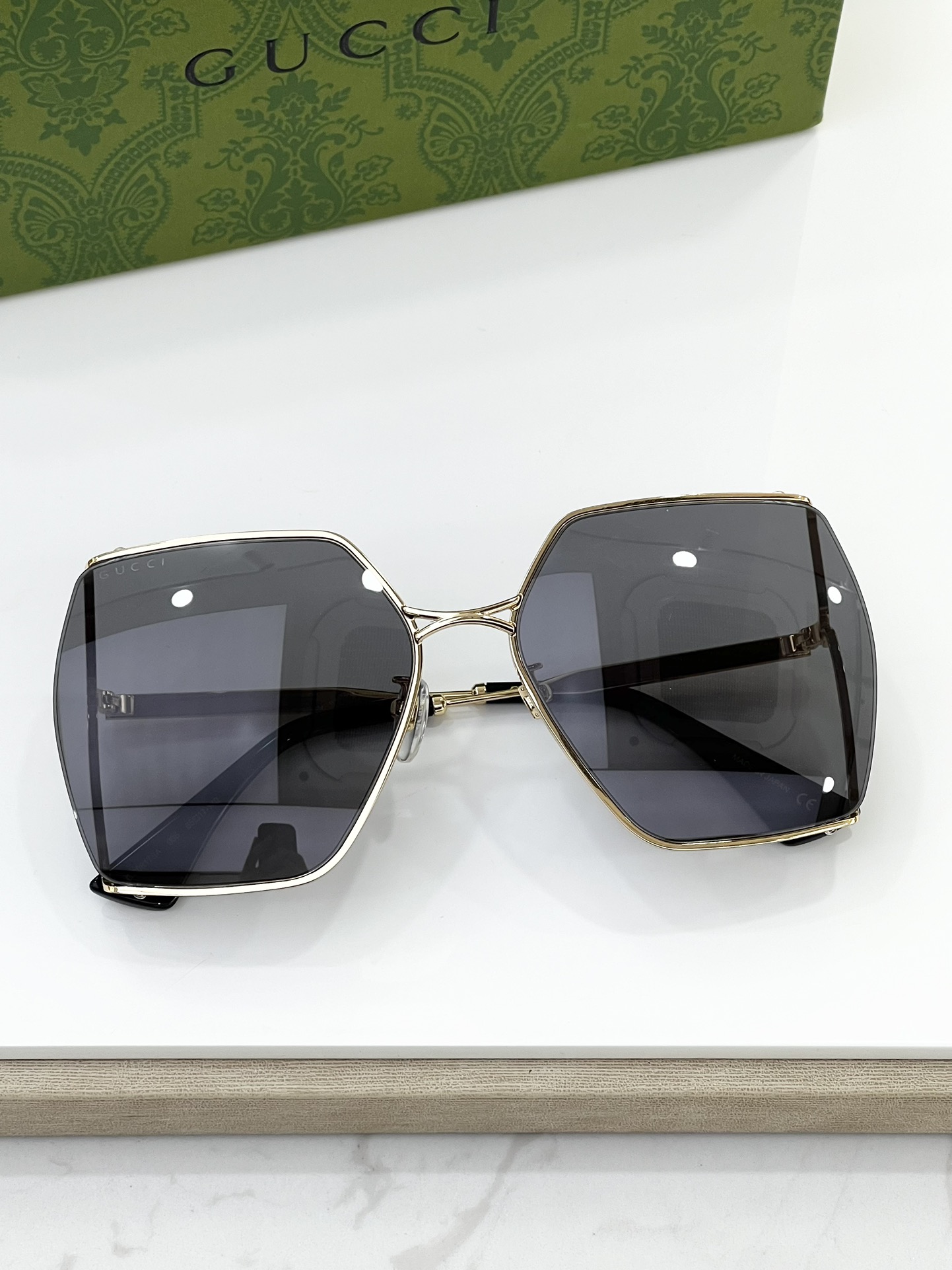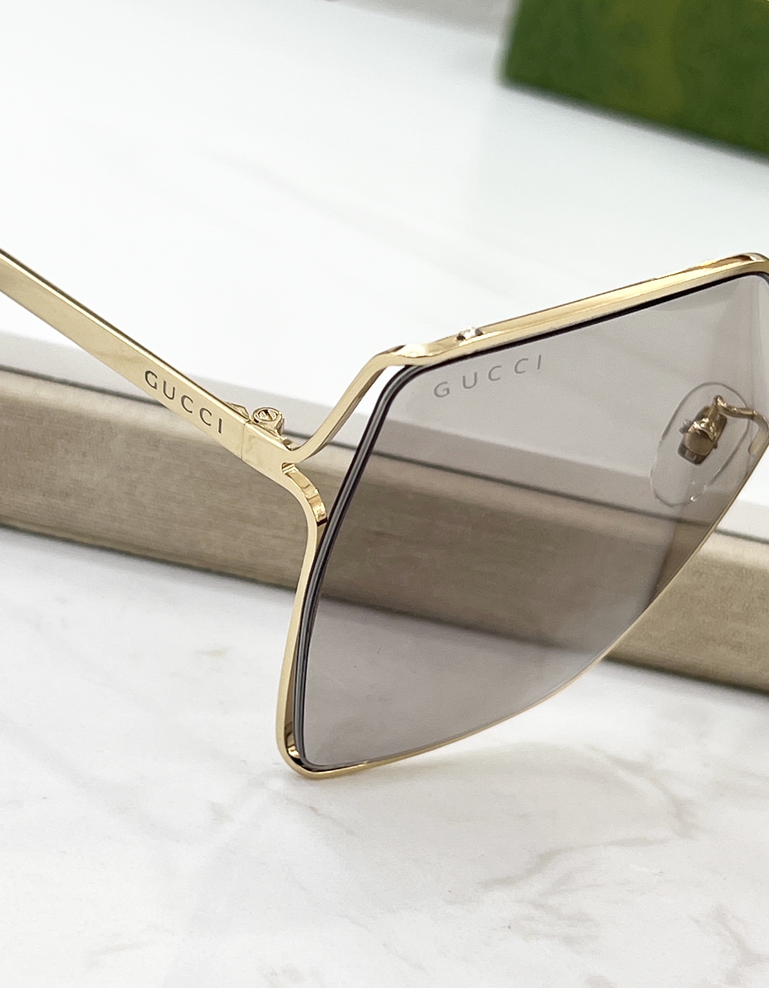 這款太陽眼鏡是AAAAA 1:1 質量(非常棒). 使用了和原版一模一樣的材料. 商標部分也保持了和古奇/Gucci一樣. 圖片拍攝是實物太陽眼鏡拍攝, 您所收到的實物保證和我們圖片一模一樣.