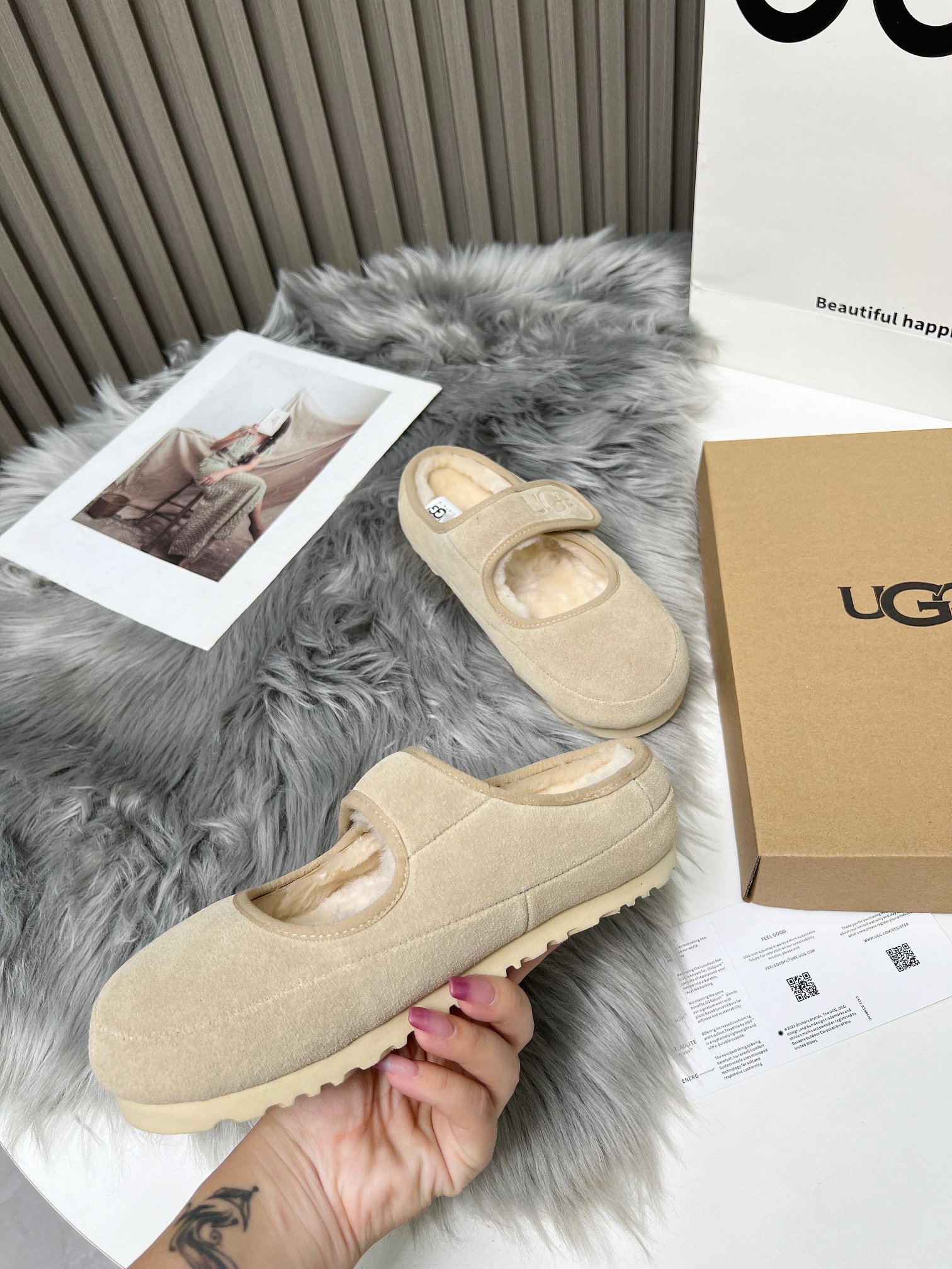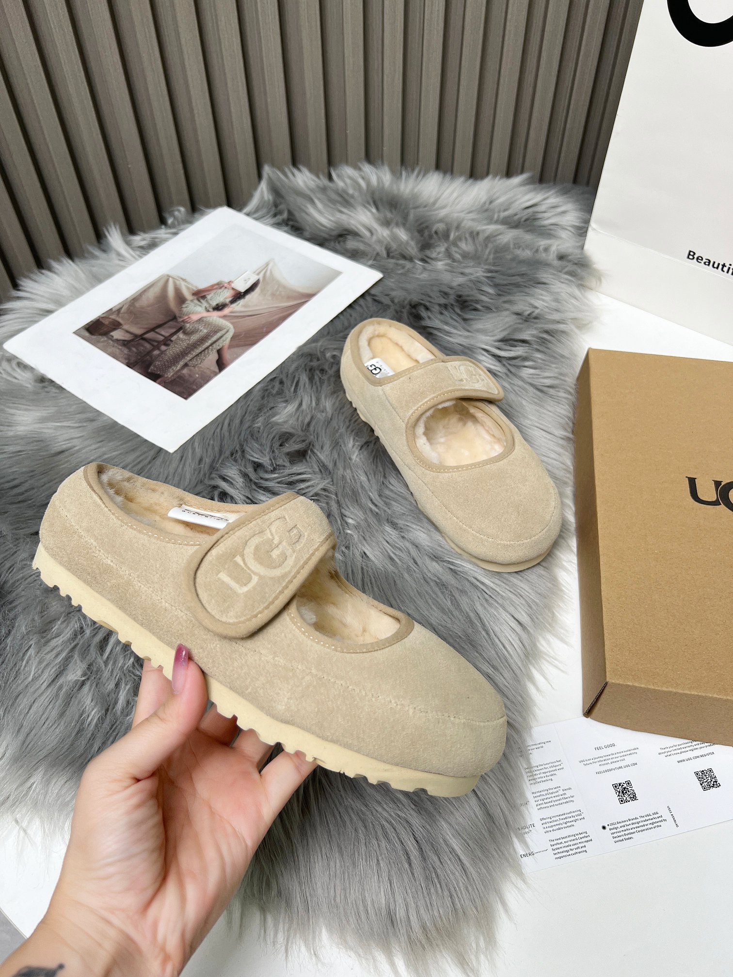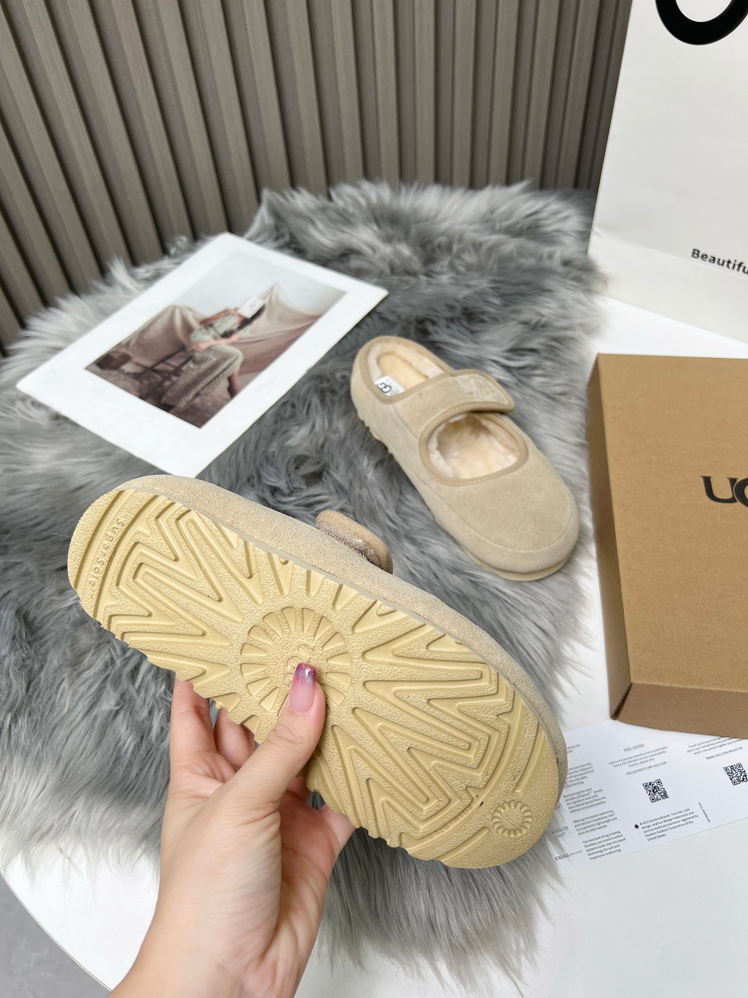 這款鞋子是AAAAA 1:1 質量(非常棒). 使用了和原版一模一樣的材料. 商標部分也保持了和UGG一樣. 圖片拍攝是實物鞋子拍攝, 您所收到的實物保證和我們圖片一模一樣.